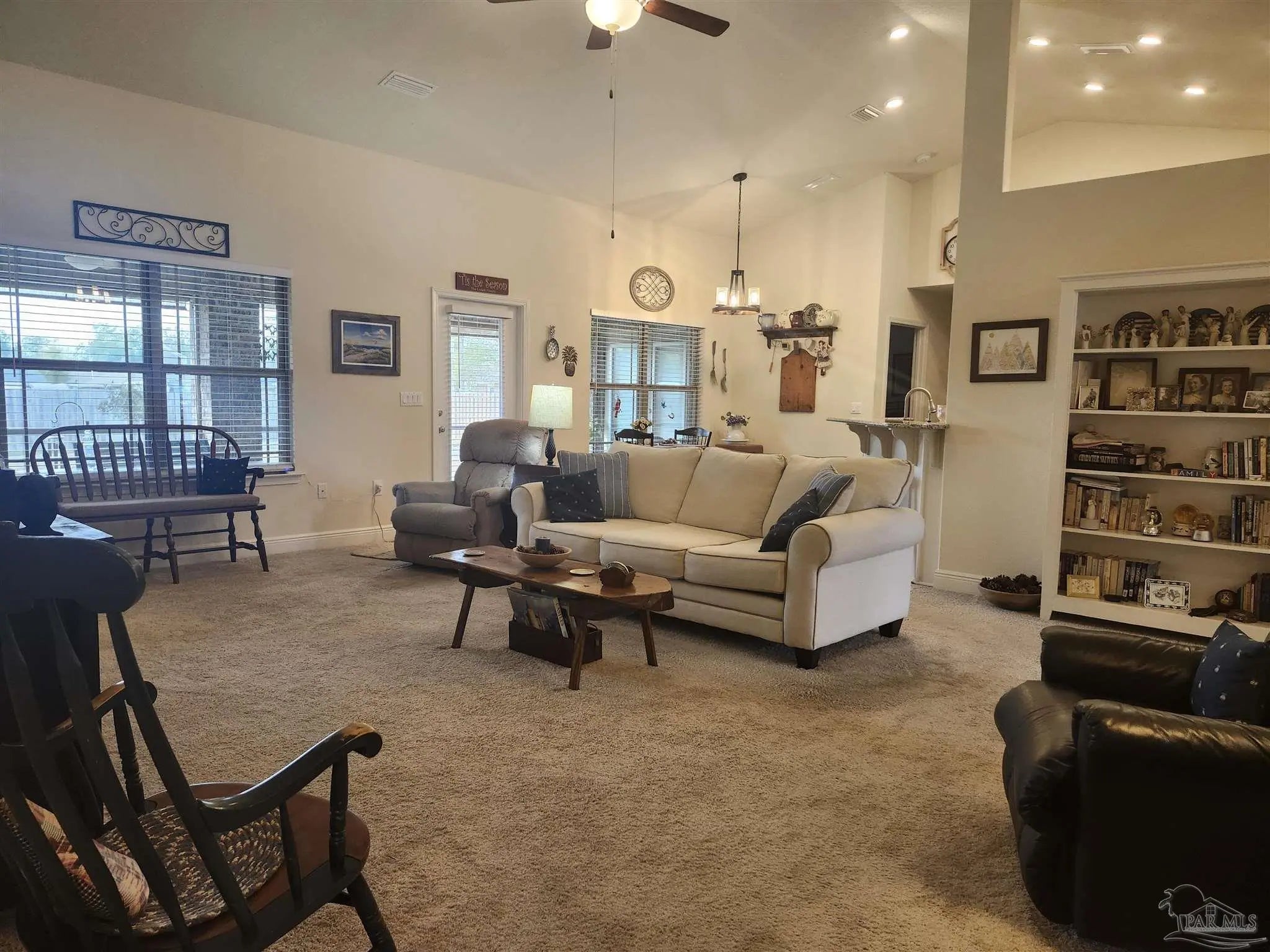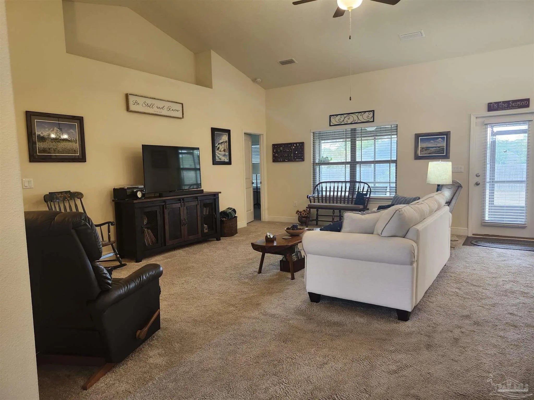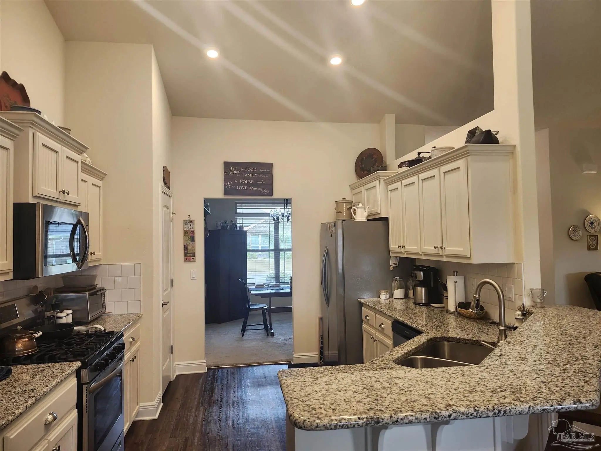 ENERGY-EFFICIENT NEWER HOME with SOLAR PANELS! (A great Savings at approx $30.00 a month energy bill) Welcome to Makenna Estates. Conveniently located to Interstate 10, Shopping, Hospitals, NAS Base, Corry Station Base, and within 25 minutes to Pensacola Beaches. This beautiful home features 2200 sq feet living area, .25 Acre, 4 bedrooms, 2 bathrooms, Laminate Floors, Spacious Kitchen with Granite Countertops, Custom Cabinets, Tile Backsplash, SS Appliances, Gas Stove, Formal Living, Formal Dining, Spacious Great room, Split floorplan, Large Primary Suite with Access to Screen lanai. Home also includes Irrigation System, Rain gutters, Storage building. It is all here, not much else to do but move in. A HOME THAT IS BETTER THAN NEW!