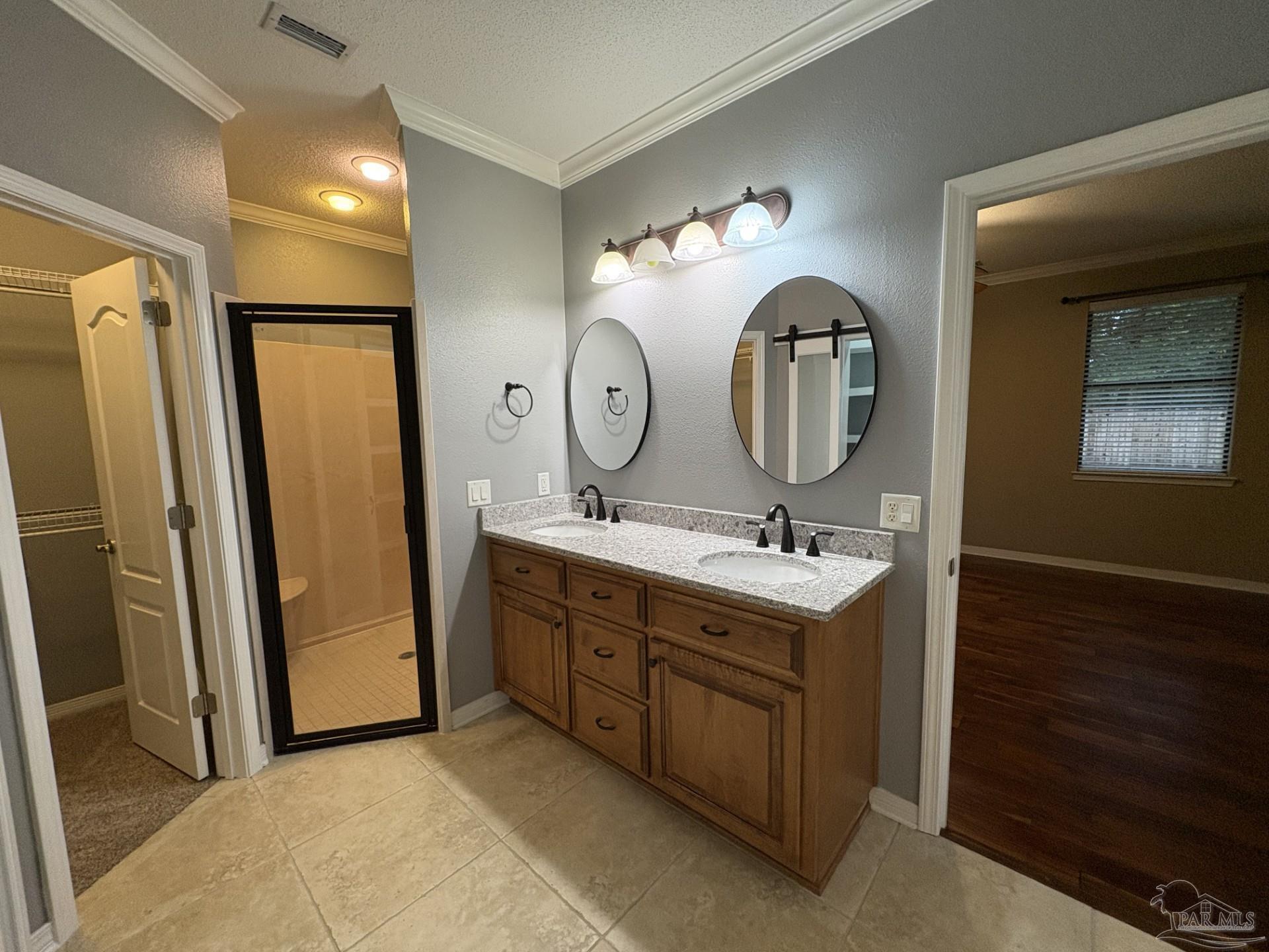 This custom Sandy Wyatt home is available in highly desirable Heather Oaks, with only 19 homes, no HOA, 1 year old roof & HVAC, and no rent restrictions. The quiet cul-de-sac location is convenient, and the two-car side entry garage is oversized and easy to access. The spacious kitchen is the heart of this home; it has all the right amenities, a Butler’s pantry, beautiful wood cabinetry with drawers, lazy Susan and Cambria countertops. Crown molding throughout the kitchen, dining and living areas is balanced by tall baseboards abutting travertine and wood flooring in rich hues. Enjoy a view of the back yard and casual seating area over the breakfast bar, it features an electric fireplace with hearth and mantle for added ambiance and your holiday decorations. The split floorplan is ideal for peace and quiet. The Main Suite has three spacious closets, tasteful updates include floating shelves and space-saving barn doors, custom shower, quartz counters, stylish double vanity and separate water closet. An office adjacent to the main suite can be accessed from the exterior screen porch and has generous custom cabinets and counterspace. The formal dining area in front of the home for your showcase pieces and the Den in back is a perfectly relaxed space. Three large bedrooms have custom shelving solutions in each closet, one with a large walk-in. Roof 1 year old (12/24), sprinkler system on well, automatic garage door openers, Fabric Shield hurricane protection, ergonomic lever door handles, extra water faucets on exterior, pull-down attic stairs and upgraded brick package. Every detail was important in the design and building of this exceptional home; come see for yourself and make this your home!