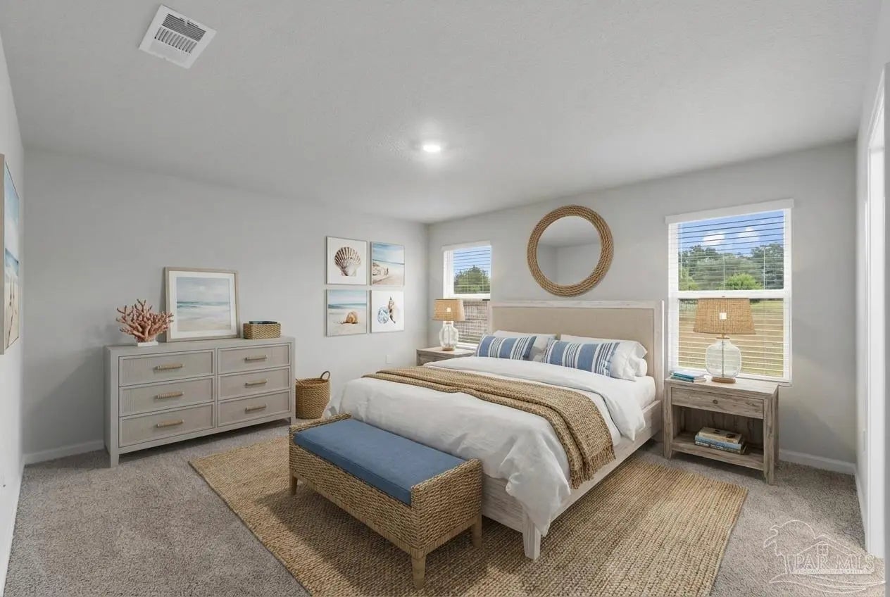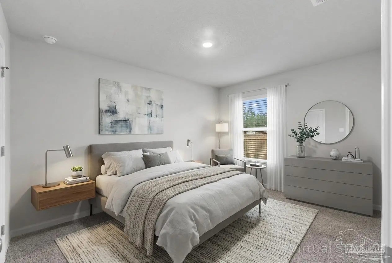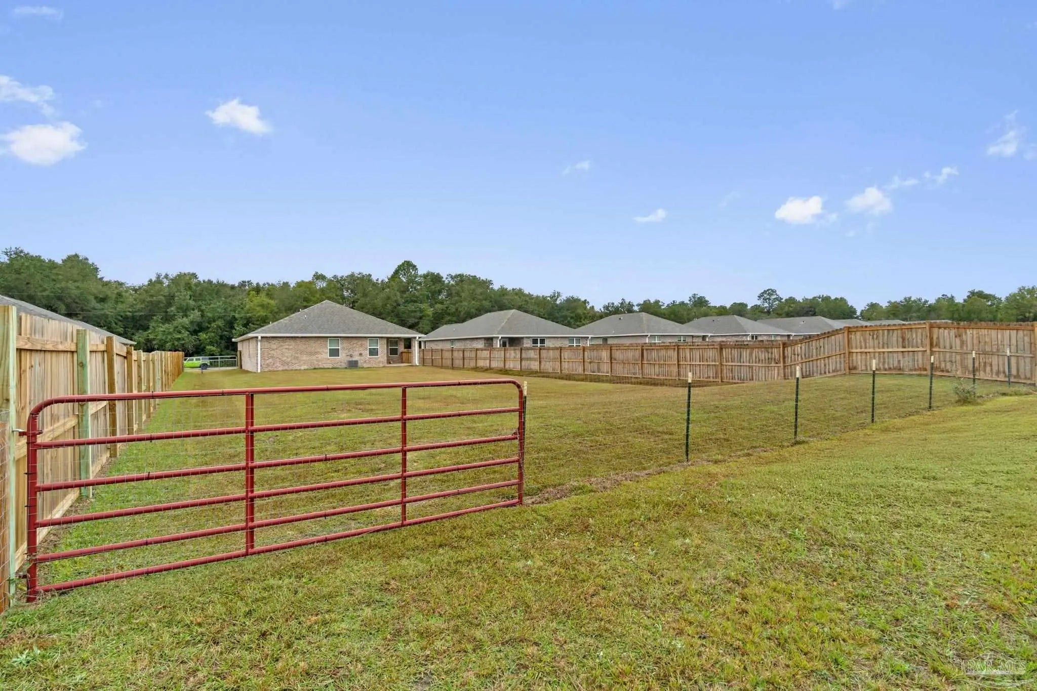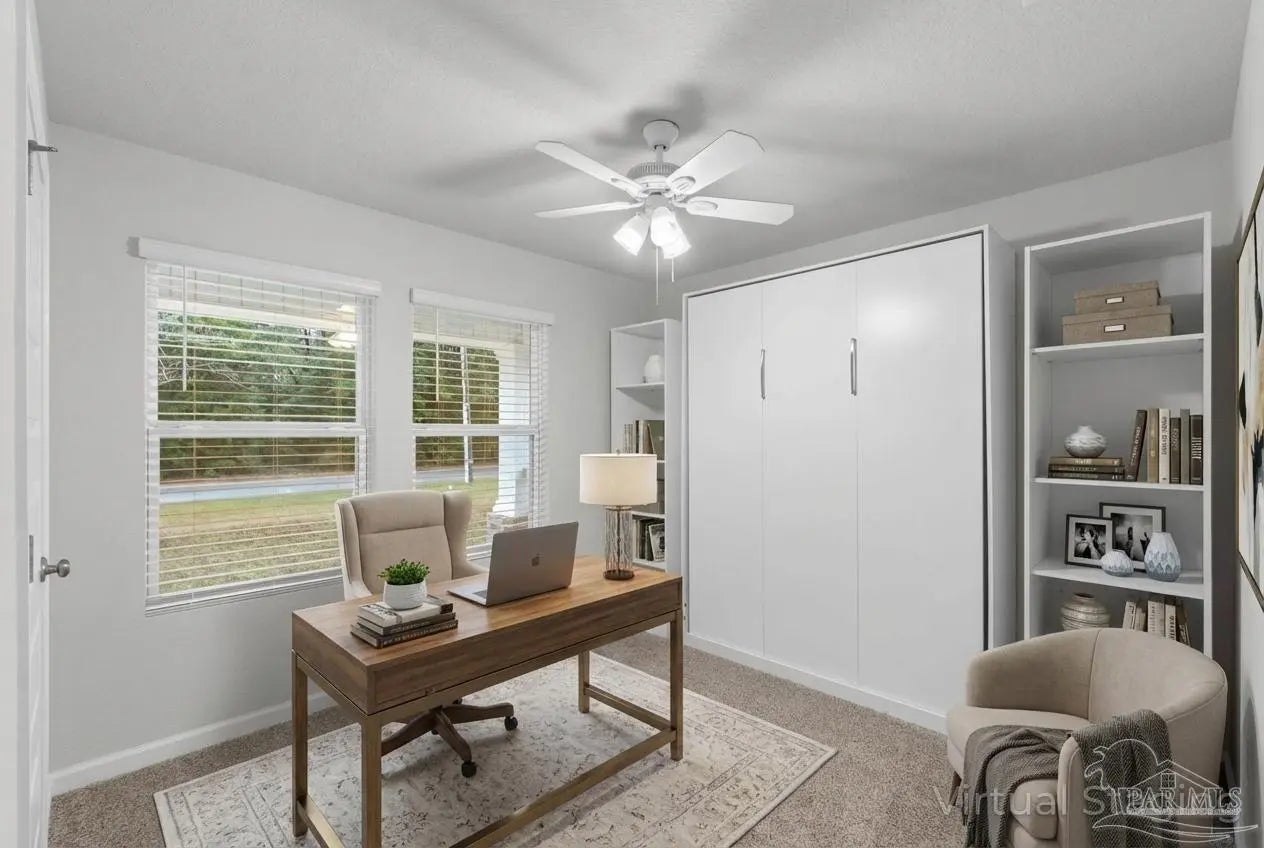 Welcome home to this beautiful, 5-bedroom, 3-full-bath home, perfectly positioned on 1.03 acres of peaceful, usable land. Only one year old and exceptionally maintained, this property offers the luxury of new construction with thoughtful enhancements already in place. Step inside to an open, airy floor plan filled with natural light. The modern kitchen features sleek quartz countertops, stylish cabinetry, and a seamless flow into the dining and living areas—perfect for hosting or enjoying everyday comfort. With five spacious bedrooms, there is room for everyone. A versatile spare bedroom doubles as a home office and comes equipped with a custom Murphy bed, allowing the space to transition effortlessly between work and guest accommodations. Out back, enjoy a 12' x 9' covered patio overlooking your expansive, fully fenced backyard, with more than an acre of space to relax, play, or create your dream outdoor retreat. Additional upgrades include a smart home connect system (installed but not currently activated), hurricane shields for all windows and doors, and a roomy 2-car garage. Conveniently located near I-10 and Hwy 87, this home offers quick access for commuting, travel, and the beautiful Gulf beaches of Navarre. Truly better than brand new, this move-in-ready home combines modern comfort with exceptional functionality. Schedule your private showing today!