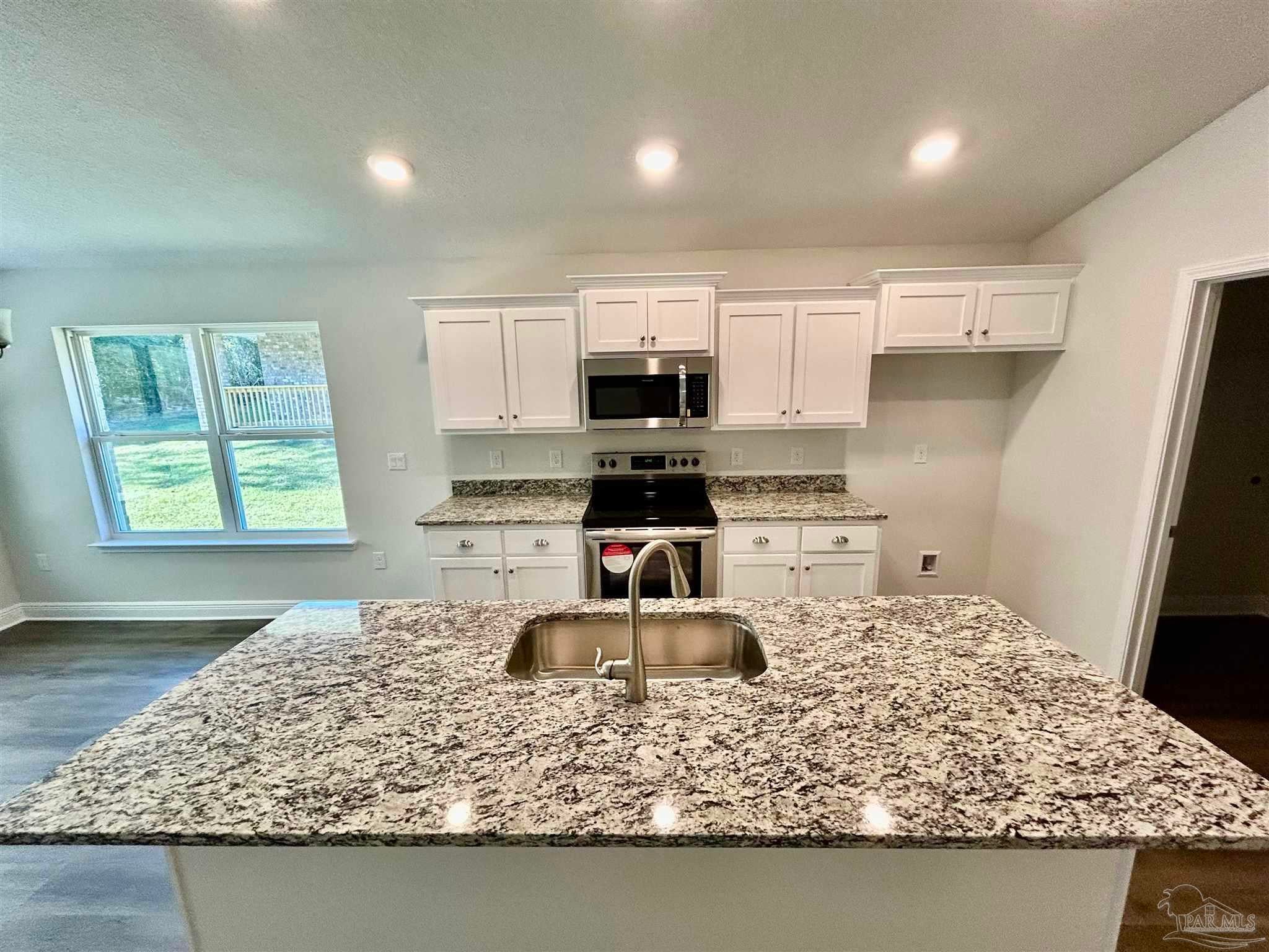 UNDER CONSTRUCTION, Estimated Completion March 2026. This well laid out home design features 3 bedrooms and 2 bathrooms including a large master suite with crown mold and a walk-in closet. This popular open concept plan also includes a granite counter kitchen showcasing an island and direct access to the expansive 15X14 covered porch. Other features sure to please are durable, cortec vinyl plank flooring in all common spaces, 2 car garage, stainless steel appliances and much more. In this All Electric neighborhood, you will find our newest floor plans of brick patio homes with architectural shingles, hurricane storm panels, double pane low E windows, and sodded yards to 120" from front property line. Other standards are: quality bump and stagger upper cabinets with hidden hinges and crown molding, stainless Frigidaire appliances (stove, microwave, dishwasher), Moen faucets, knockdown ceilings and orange peel textured walls, 5 14" baseboards, LED lighting in kitchen and over tubs & showers, 50 gallon water heater, and much, much more. * PICTURES ARE NOT A TRUE REPRESENTATION.