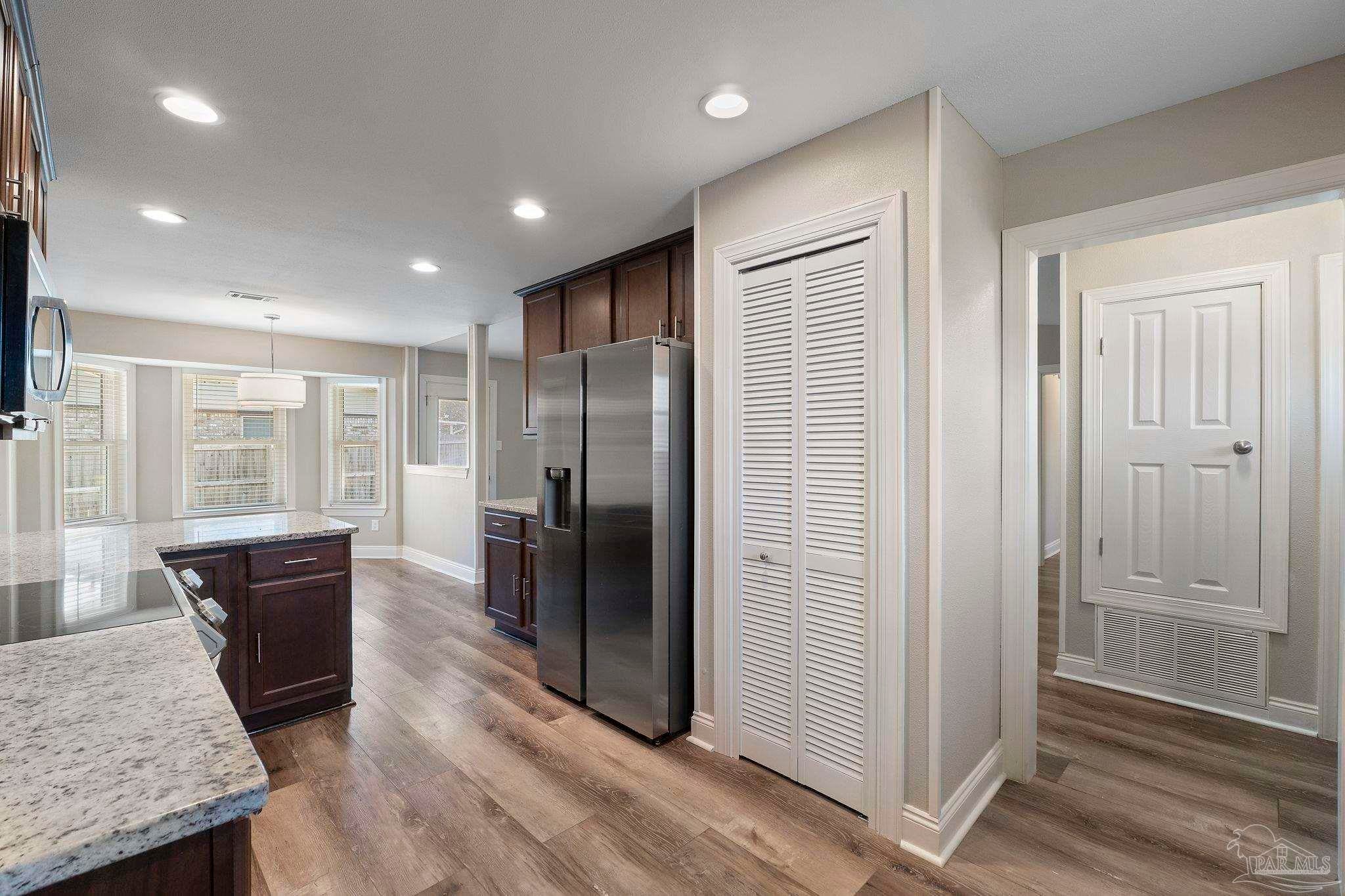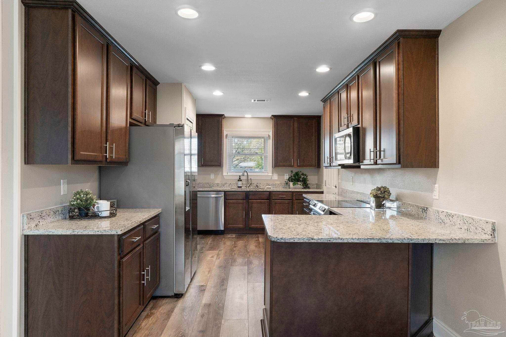 Beautifully updated and truly move-in ready, this 3-bedroom, 2-bath home in Pine Lake Estates offers modern style and worry-free living. Enjoy luxury vinyl flooring throughout, designer lighting, and granite in the kitchen and both baths. The kitchen features new cabinets, new granite countertops, and all-new appliances, including a garbage disposal. Both bathrooms have been refreshed with a reglazed tub, new toilets, and a newly redesigned master shower. Additional upgrades include all-new windows, new entry and storm doors, and a convenient laundry room with backyard access. The exterior has been freshly pressure washed, and the property includes a privacy fence and a 2-car garage with pull-down attic stairs. Located on a corner lot, this home combines quality updates with easy, comfortable living—ready for you on closing day. 2021 Roof, 2024 Tankless Gas Water Heater.