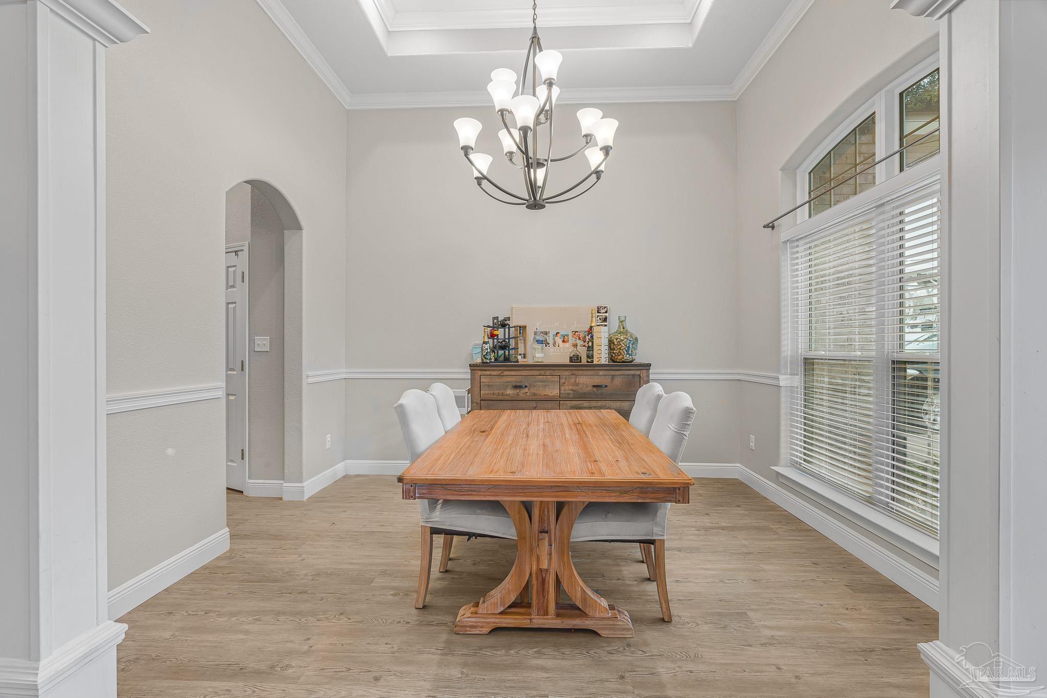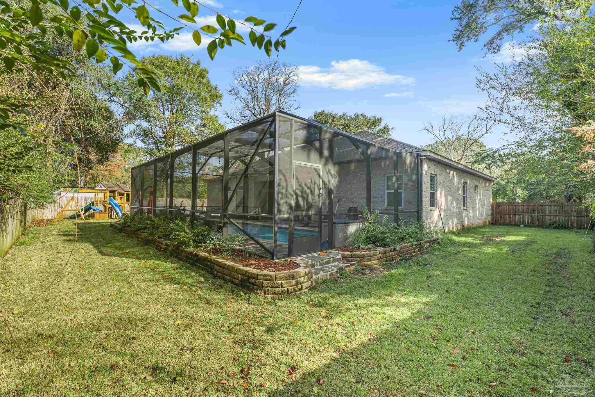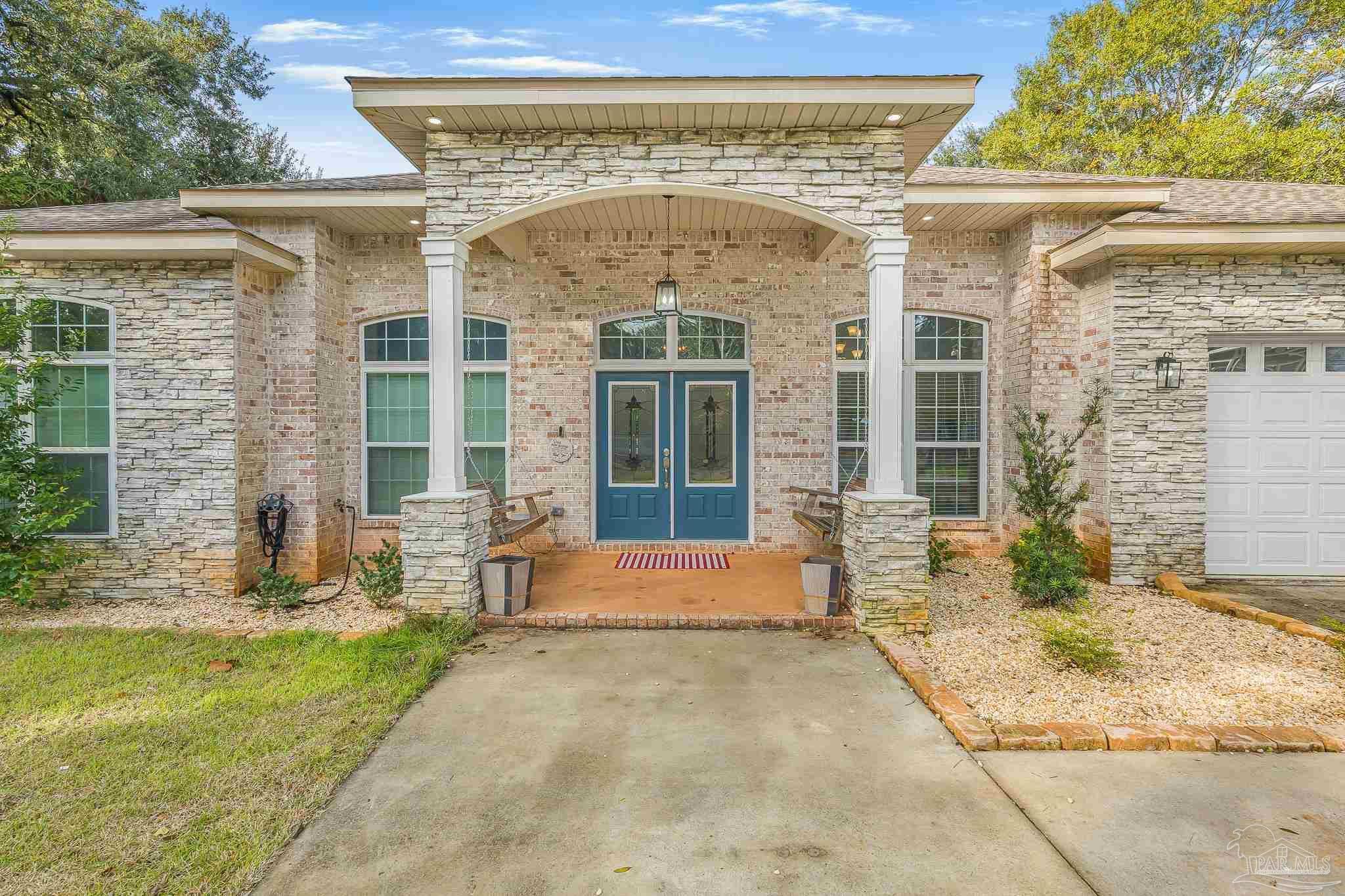 Experience modern Florida living at its finest in this inviting 4-bed, 3-bath home where style, comfort, and functionality come together effortlessly. A charming front porch with classic porch swings welcomes you into a bright interior featuring high ceilings, and elegant arched doorways. From the entryway the home opens up to a formal dining room and a flexible bonus room perfect for a sitting area, playroom, or home office. The open floor plan flows into a contemporary kitchen with a spacious island, stainless steel appliances, and a cozy eating nook—complete with new upgrades including a dishwasher and garbage disposal. The luxurious primary suite offers a serene escape with a custom closet and a spa-inspired bathroom featuring a tall tiled shower with glass-door entry, a separate soaking tub, and a built-in dual-sink vanity. Thoughtful modern enhancements—like custom blinds and a tankless hot water heater—elevate the home’s efficiency and comfort. Step outside to enjoy true Florida living with a covered back patio, screened-in pool, and a large fenced backyard enhanced by new sod and a full sprinkler system for easy lawn care. Within minutes you’ll find grocery stores, shopping, and a variety of dining options with a quick drive to downtown Pensacola, FL. For recreation, the surrounding area offers parks, golf courses and access to natural getaways: enjoy a quick ride to the white-sand beaches of Perdido Key State Park or the coastal wetlands and trails at Big Lagoon State Park, perfect for beach days, boating, hiking, or quiet weekend escapes. Don't miss your chance to experience all this home has to offer!