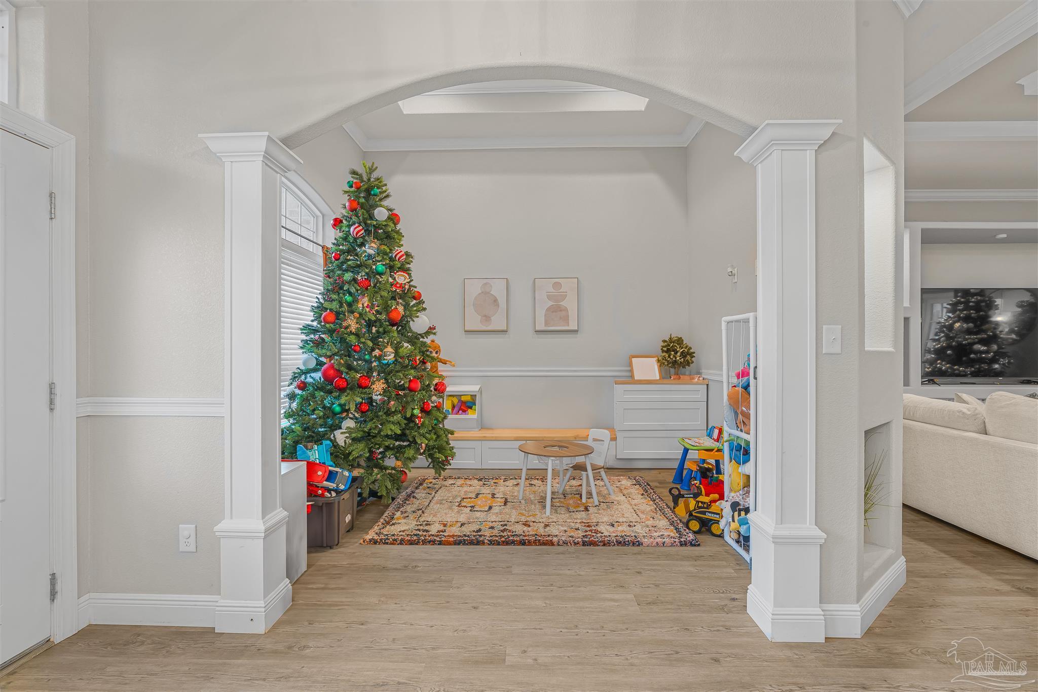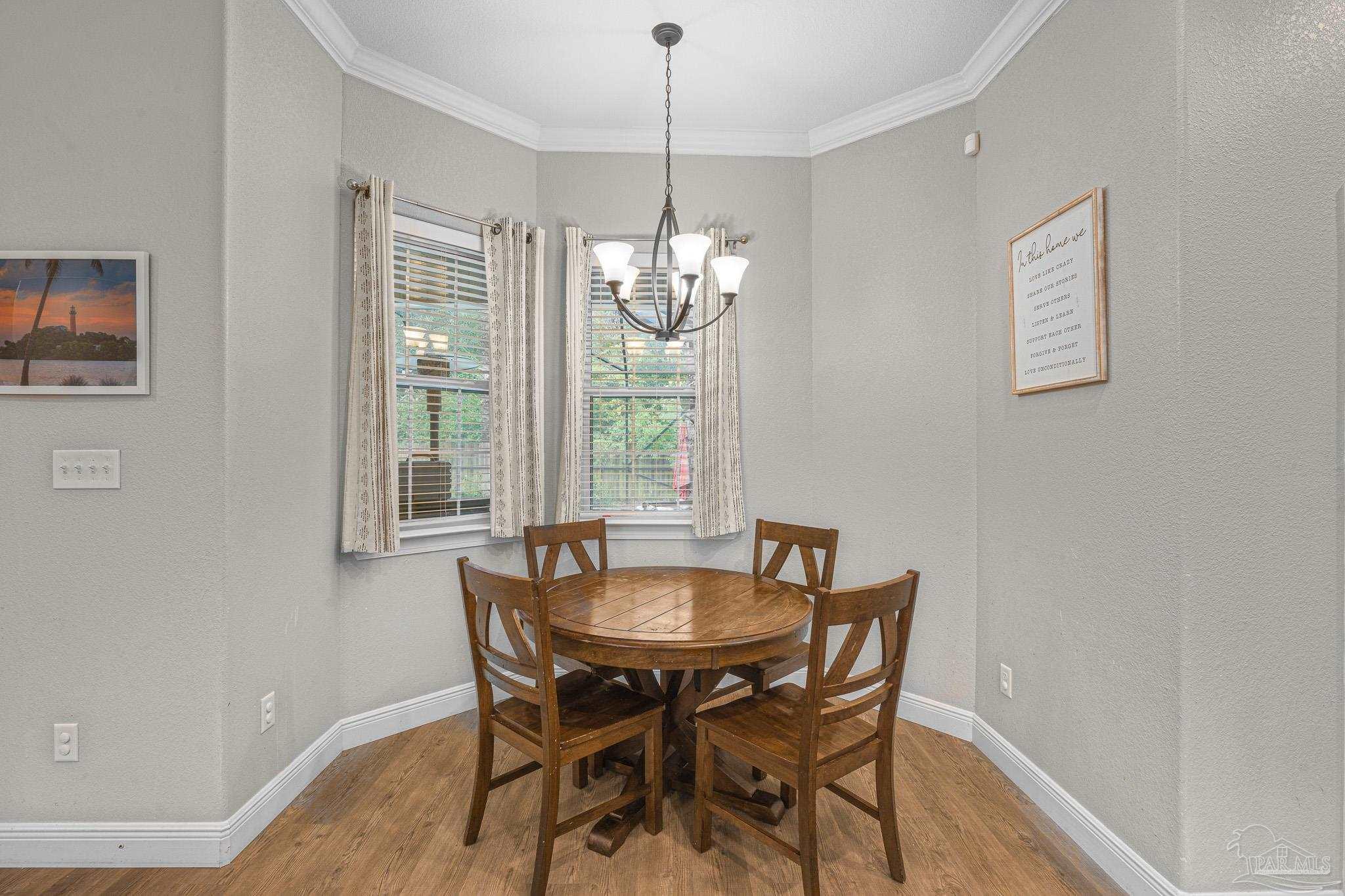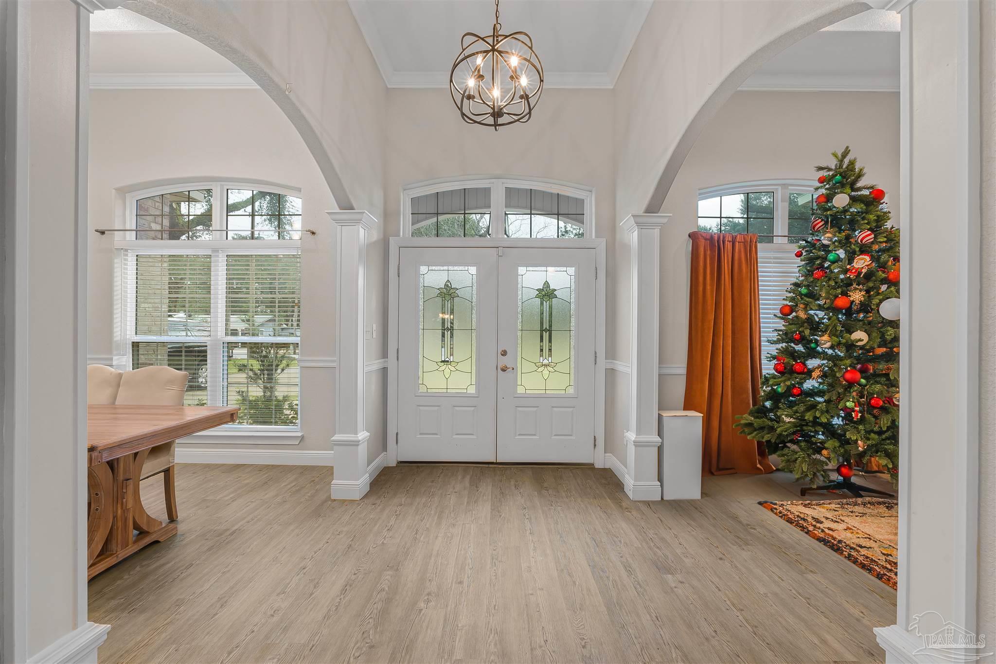 Experience modern Florida living at its finest in this inviting 4-bed, 3-bath home where style, comfort, and functionality come together effortlessly. A charming front porch with classic porch swings welcomes you into a bright interior featuring high ceilings, and elegant arched doorways. From the entryway the home opens up to a formal dining room and a flexible bonus room perfect for a sitting area, playroom, or home office. The open floor plan flows into a contemporary kitchen with a spacious island, stainless steel appliances, and a cozy eating nook—complete with new upgrades including a dishwasher and garbage disposal. The luxurious primary suite offers a serene escape with a custom closet and a spa-inspired bathroom featuring a tall tiled shower with glass-door entry, a separate soaking tub, and a built-in dual-sink vanity. Thoughtful modern enhancements—like custom blinds and a tankless hot water heater—elevate the home’s efficiency and comfort. Step outside to enjoy true Florida living with a covered back patio, screened-in pool, and a large fenced backyard enhanced by new sod and a full sprinkler system for easy lawn care. Within minutes you’ll find grocery stores, shopping, and a variety of dining options with a quick drive to downtown Pensacola, FL. For recreation, the surrounding area offers parks, golf courses and access to natural getaways: enjoy a quick ride to the white-sand beaches of Perdido Key State Park or the coastal wetlands and trails at Big Lagoon State Park, perfect for beach days, boating, hiking, or quiet weekend escapes. Don't miss your chance to experience all this home has to offer!