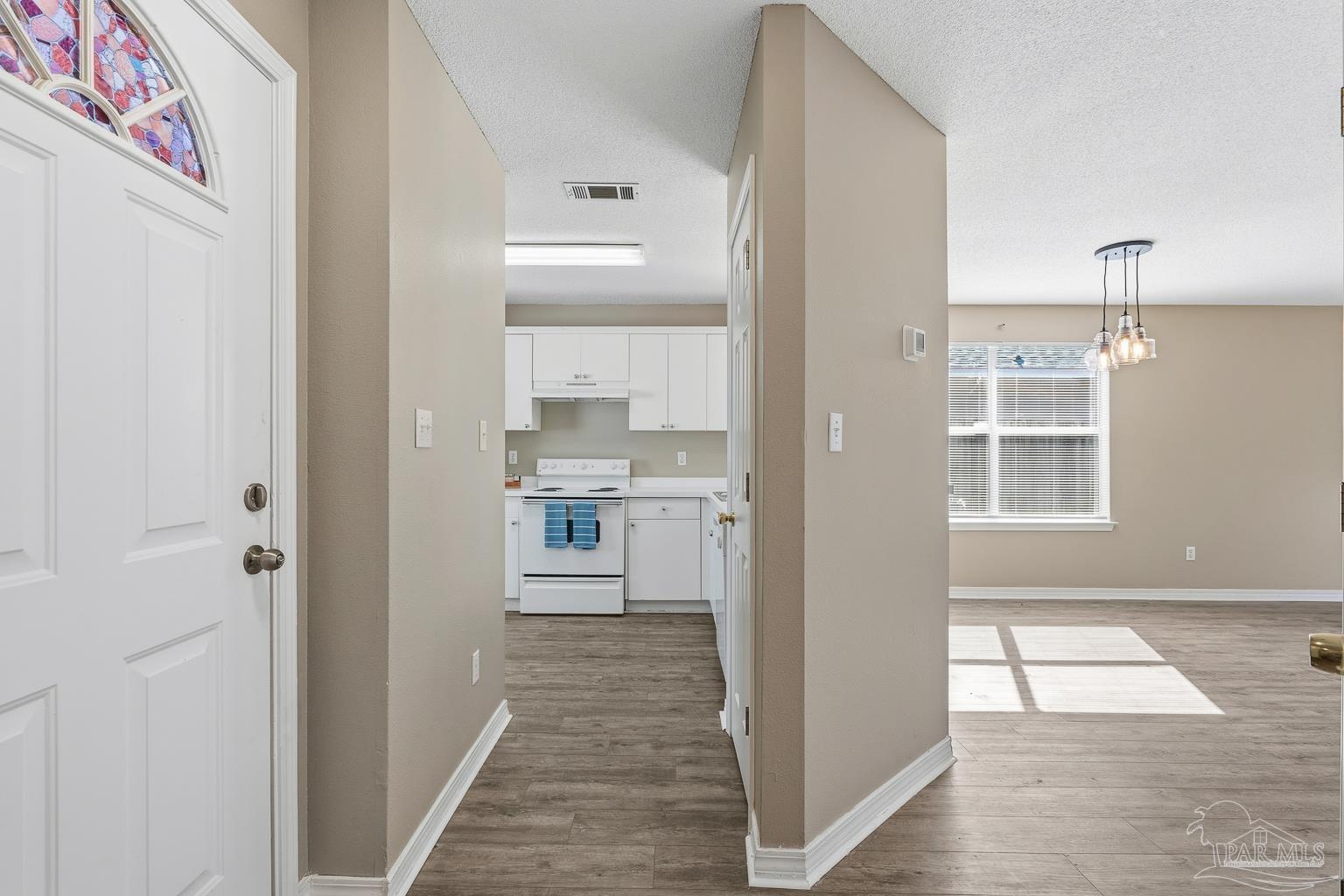 Welcome to this delightfully refreshed three-bedroom, two-bathroom home that's ready to embrace its next chapter. Spanning 1,134 square feet, this residence has been thoughtfully updated with luxury vinyl plank flooring throughout with no carpet! The open floor plan creates a seamless flow between living and dining areas, where natural light dances through windows and highlights the fresh paint adorning every wall. The all-white kitchen serves as the home's bright focal point, complete with a convenient pantry for all your culinary adventures and storage needs. The primary bedroom offers a welcome retreat with its spacious walk-in closet, while new ceiling fans and light fixtures throughout ensure both comfort and ambiance in every room. Indoor laundry facilities add convenience to daily routines, and the attached one-car garage provides secure parking and additional storage space. Outside, a privacy fence creates your own personal sanctuary, perfect for morning coffee or evening relaxation. The location offers the best of both worlds, with easy access to Naval Air Station Pensacola for those with military connections, while nearby Target Grocery and Walmart Supercenter handle everyday necessities. This move-in ready home combines practical updates with thoughtful design, creating a space where memories are waiting to be made. With its blend of modern touches and functional layout, it's ready to welcome new owners who appreciate quality and convenience in equal measure.