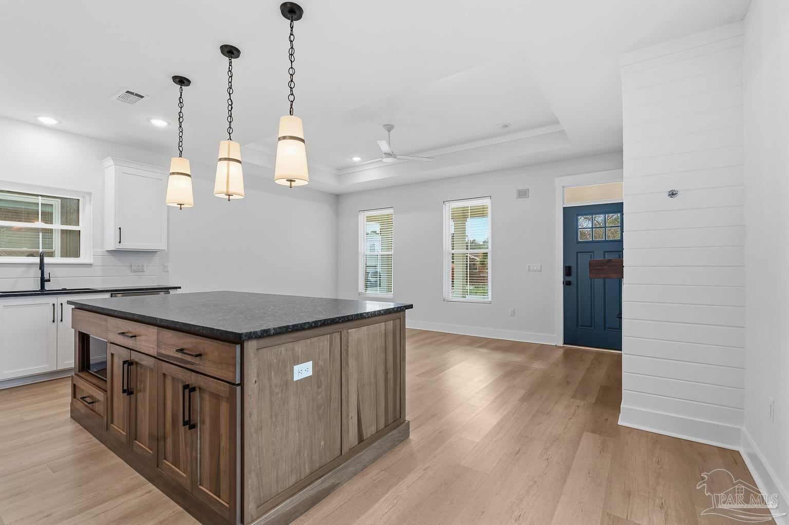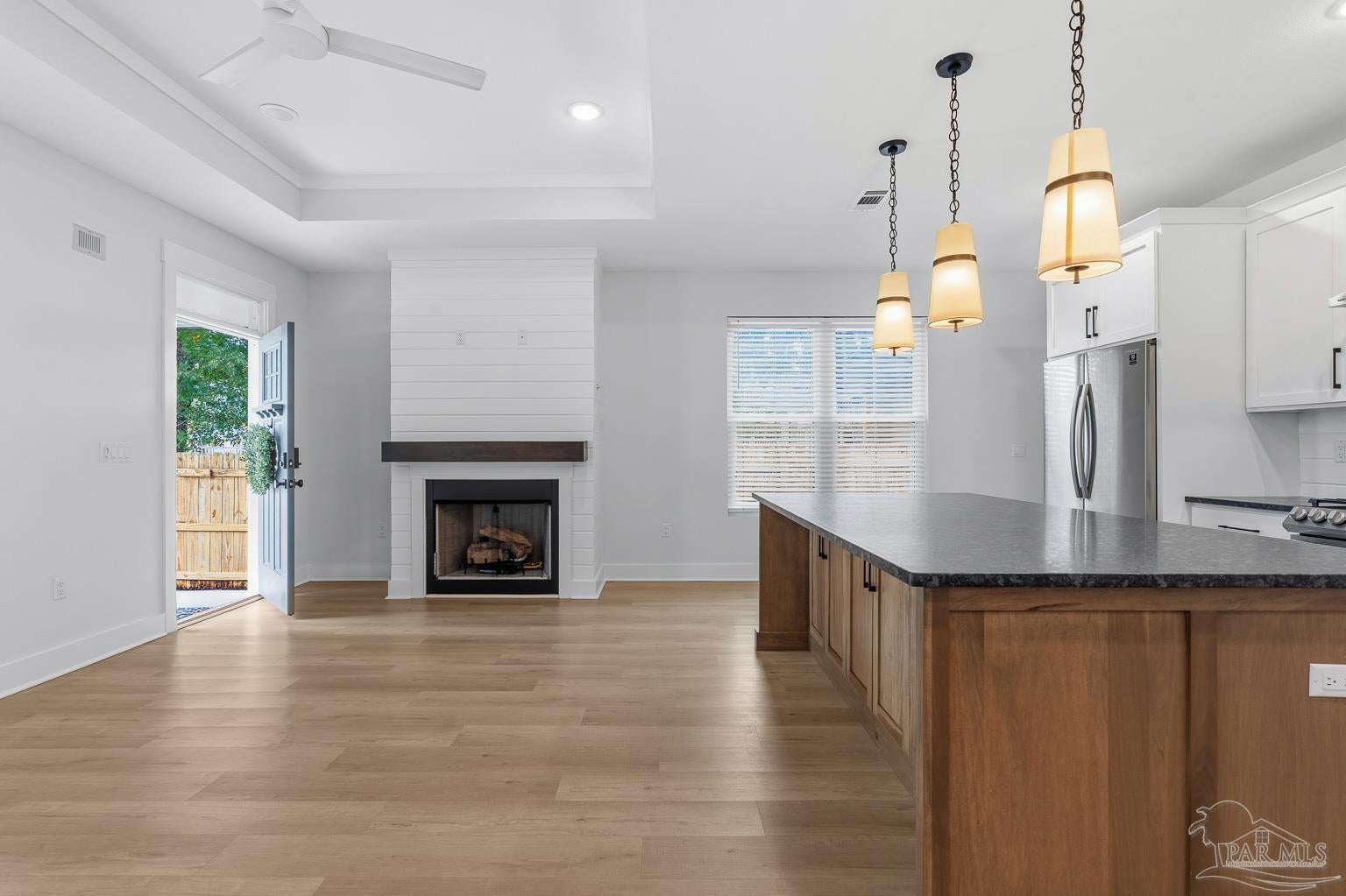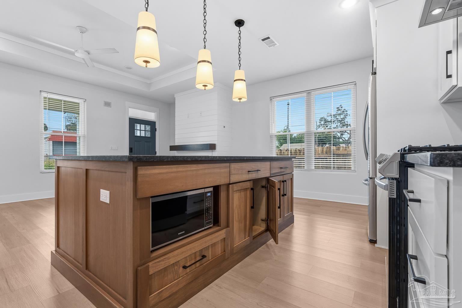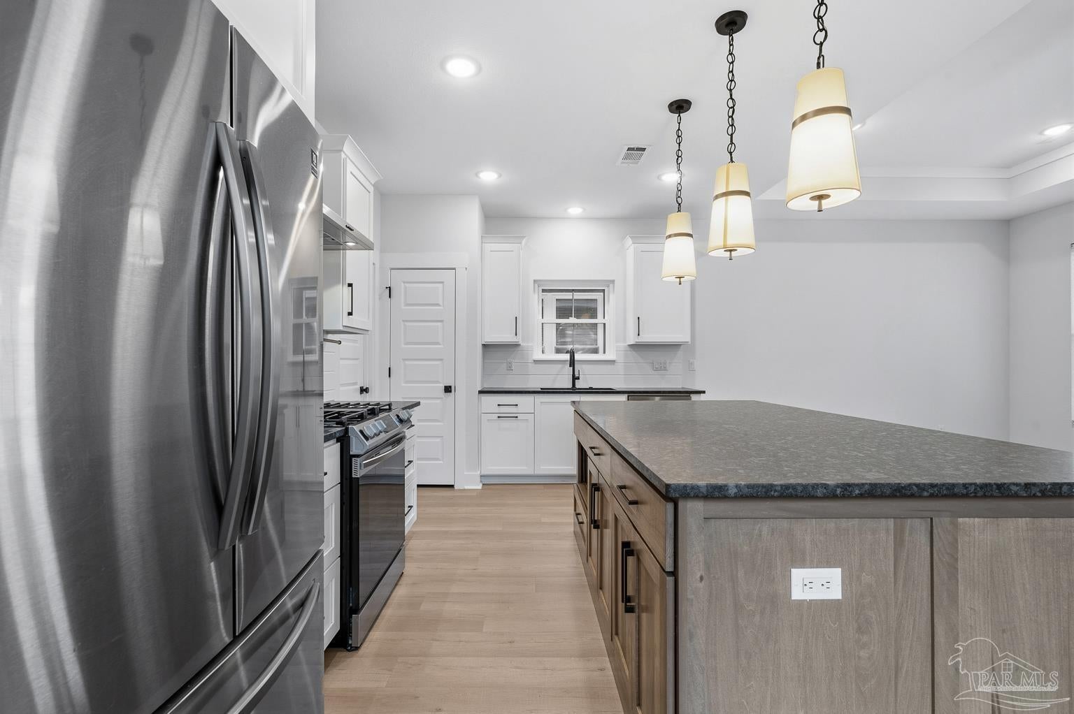 Pristine 2022 construction and priced to sell, This 3-bedroom, 2-bath shotgun-style home is perfectly tucked between North Hill and Downtown Pensacola. This versatile property is ideal as an investment opportunity, primary residence, or first-time home for those seeking easy access to everything Pensacola has to offer. Step inside to a warm and welcoming living space highlighted by a cozy fireplace—perfect for cool winter evenings. The open-concept kitchen features quartz countertops, custom cabinetry, high-end stainless steel Samsung appliances, and stylish designer lighting. Luxury plank vinyl flooring flows throughout the home, complemented by storm impact–resistant windows for peace of mind. The contemporary layout is ideal for entertaining, with thoughtfully chosen finishes that create a cohesive and modern aesthetic. Enjoy the convenience of walking or biking to some of the city’s most beloved attractions, including Blue Wahoos Stadium, Ever’man Cooperative, the Seville Historic District, and the vibrant nightlife of downtown. Plus, you’re just minutes from the sugar-white sands of Pensacola Beach. The living space opens to an inviting lanai and a covered patio overlooking a privacy-fenced backyard—perfect for gatherings, grilling, or simply relaxing outdoors. With exceptional craftsmanship and attention to detail throughout, this immaculate home truly must be seen to be appreciated. Schedule your showing today.