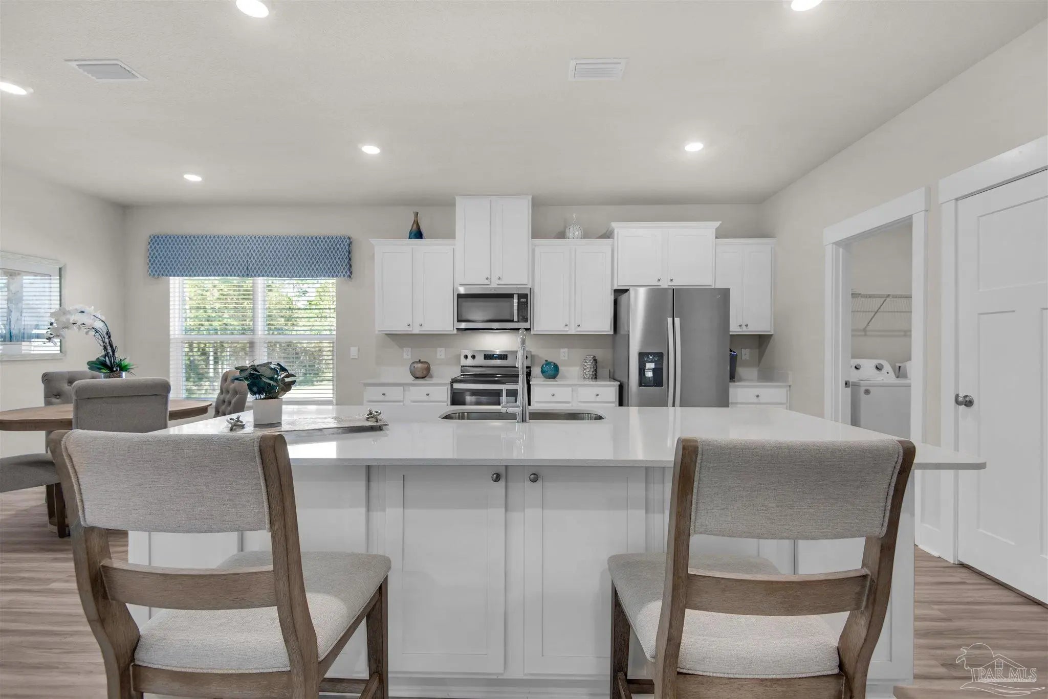 Welcome to 5640 Clarity St at The Grove at Berryhill – in the Heart of Milton! The Destin floor plan offers the perfect combination of open living and thoughtful design with 4 bedrooms, 3 full bathrooms, and just over 2,300 square feet of beautifully finished space. The home features a spacious open-concept layout, ideal for entertaining and everyday living. The kitchen is the centerpiece, with quartz countertops, stainless steel appliances, and a large island that flows seamlessly into the dining and living areas. Tall 9’ ceilings and luxury vinyl plank flooring create a bright, modern feel throughout the main living space. The primary suite is tucked away for privacy and includes a generous walk-in closet, and a luxurious en-suite bath complete with a shower, soaking tub, and dual quartz vanities. Three additional bedrooms and two full baths offer flexible space for family, guests, or a home office. Enjoy outdoor living with a covered back porch, and peace of mind with a built-in Smart Home technology package. Located near top-rated schools, everyday conveniences, and Blackwater River, a natural gem perfect for outdoor activities such as kayaking, canoeing, and fishing. For those who enjoy beach days and coastal living, you are just 30 miles from the sugar-white sands of the Gulf Coast.