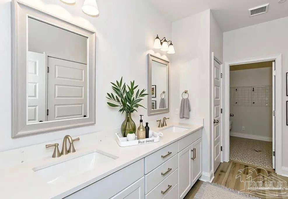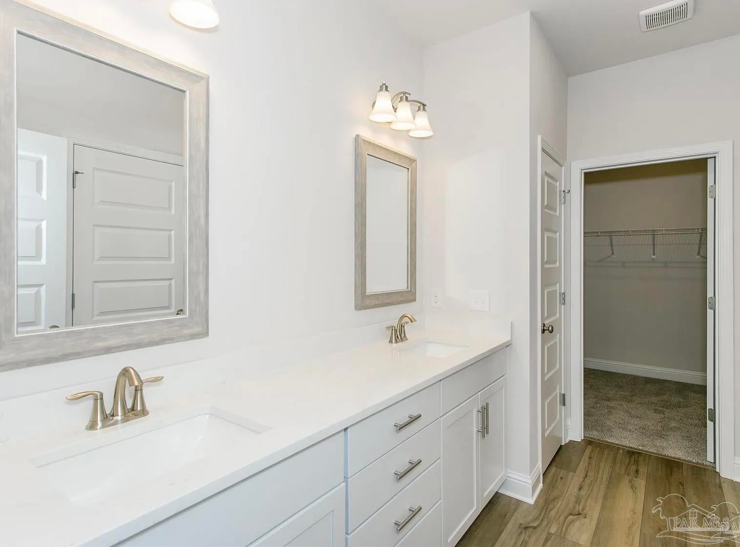 You absolutely must see these homes in person! NEW CONSTRUCTION in the prestigious Bentley Oaks Neighborhood. FOUR SIDES BRICK, 9 ft ceilings. This home is a showstopper! 1706 sq ft in Bentley Oaks. Conveniently located minutes from I-10, easy commute to bases, downtown and to the beach. The Dogwood floor plan has 3 bedrooms, and 2 baths. The design has an open kitchen with large prep island and the popular Shaker Style cabinets. These gorgeous cabinets are real birch wood, full overlay, dovetail tongue and groove with soft close doors and drawers. This home stands out with white quartz, Carrera frost, 3 cm counter tops in kitchen and bath and Stainless appliances are featured in kitchen, as well as brushed nickel bar pulls on cabinets. A built-in microwave is also included. The breakfast room has easy access to a private and spacious, covered lanai, perfect for entertaining, a wonderful pantry and LED lighting makes meal prep a dream. The master suite has trey ceilings and ceiling fan. Deluxe master bathroom has a 5 ft shower, luxury quartz counters, framed mirrors over sinks, LED ceiling lights, and large walk in closet. Shaw, floating, beveled LVP, in all areas except carpet is in bedrooms and bedroom closets. Double garage, 30 year architectural shingles, energy efficient double pane vinyl windows, storm shutter window protection, and covered by StrucSure, a 10year limited warranty. Call today to view this gorgeous home. Photos are representative of same floor plan. We have move in ready homes.