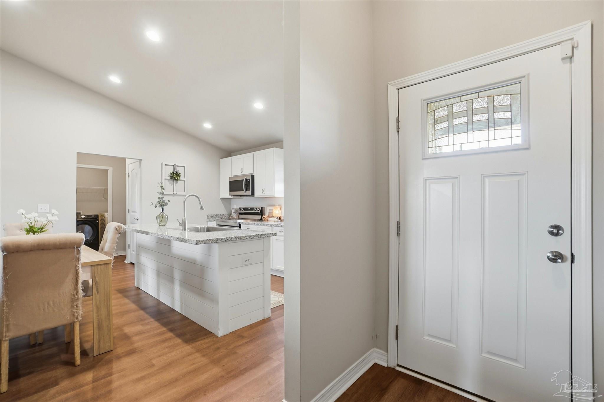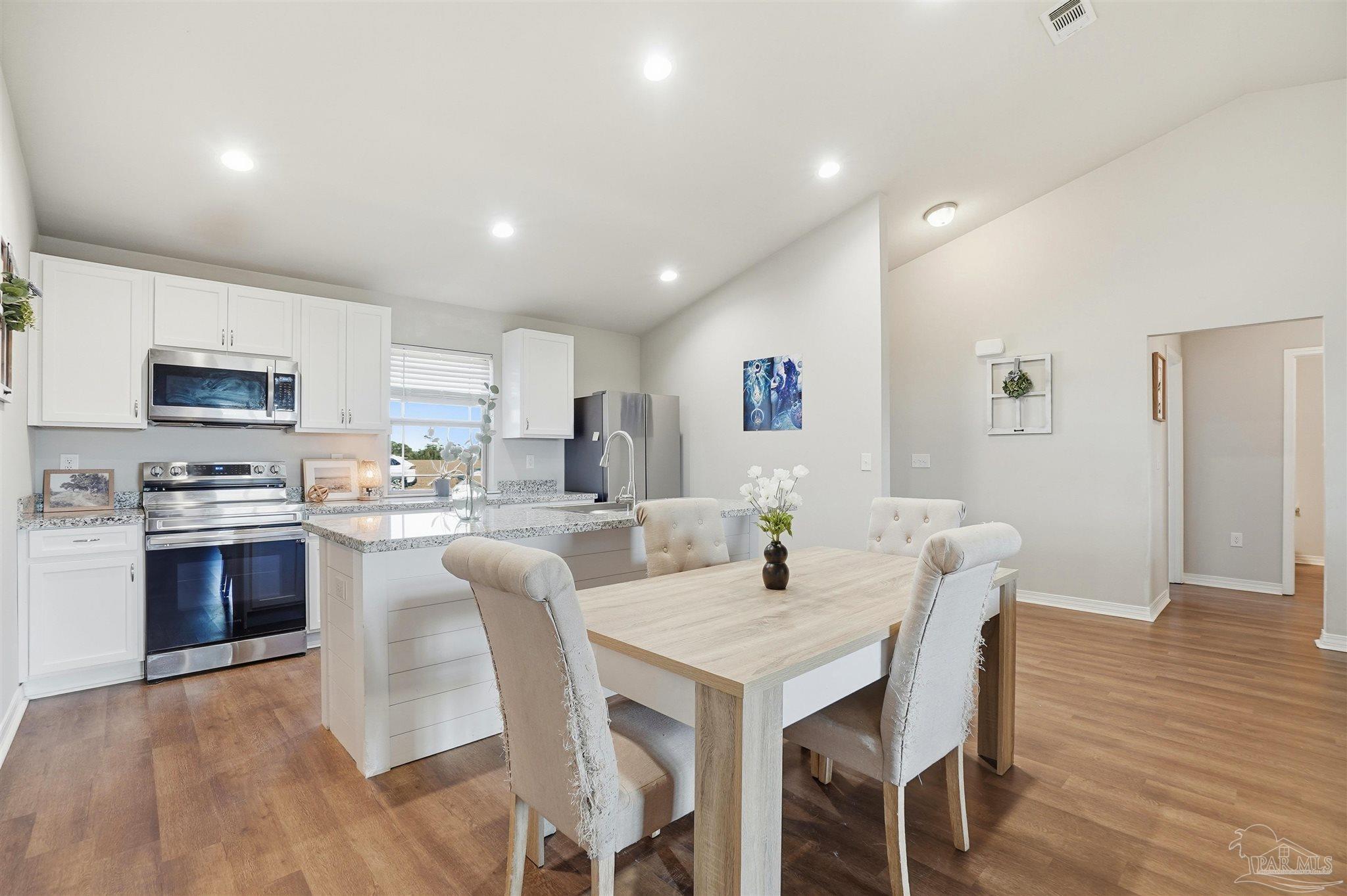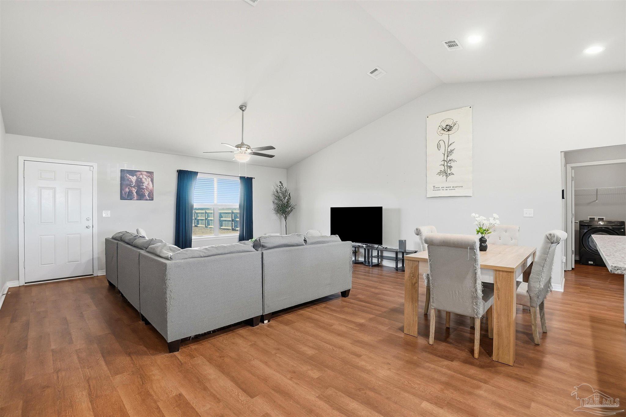 Built in 2022, this well maintained 3-bedroom, 2-bath home offers modern design paired with peaceful country living. The open concept floor plan features high ceilings, granite countertops, and a bright, airy layout ideal for everyday living and entertaining. Split floor plan aside, all bedrooms are generously sized with excellent closet space throughout. Situated on 1.5 acres, much of which naturally grows wild peanuts, the property is surrounded by quiet farmland, offering privacy and scenic views. Enjoy relaxing evenings on the covered back porch while still being conveniently located less than 30 minutes from NAS Whiting Field.
