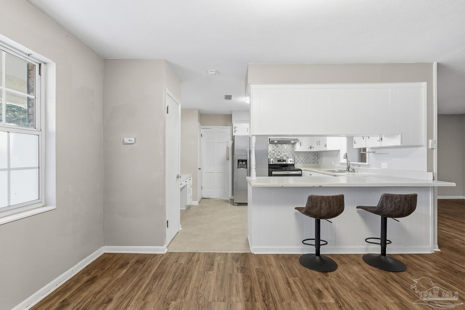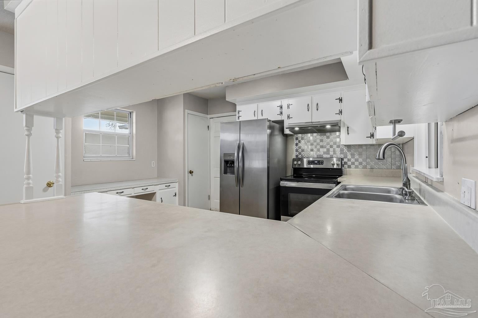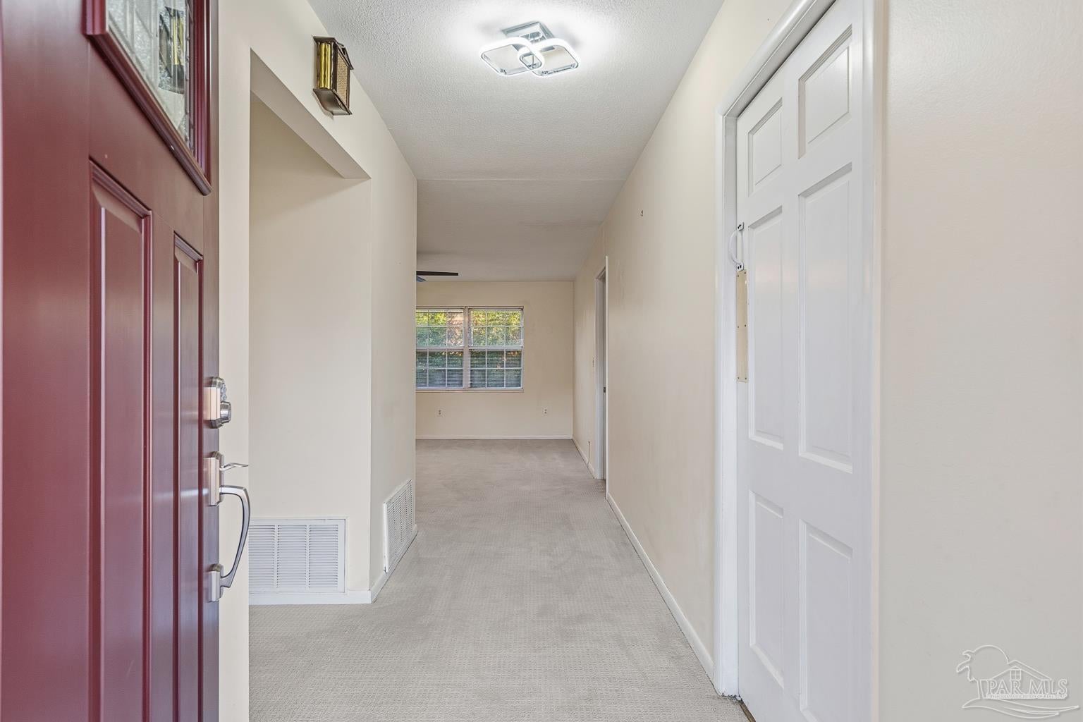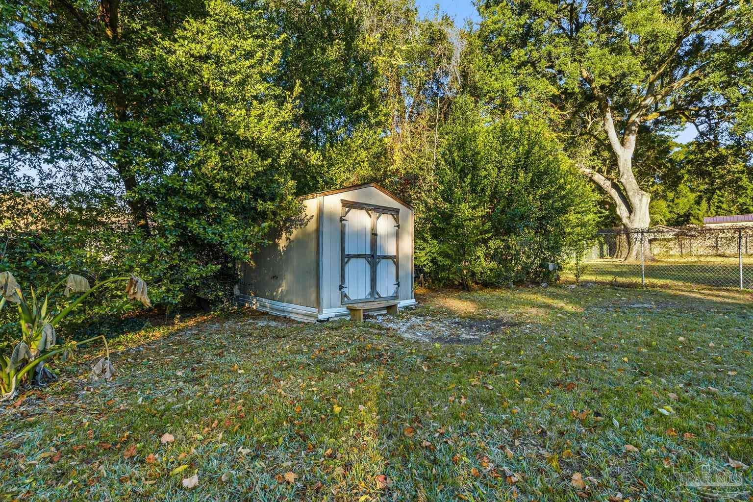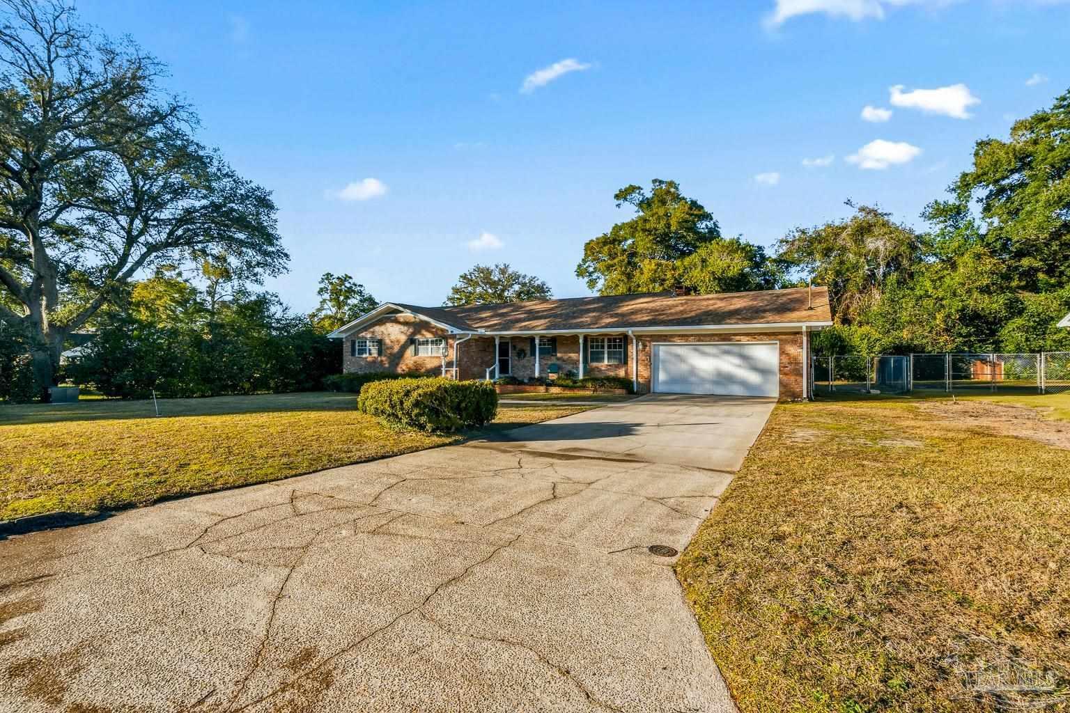 Welcome home to this inviting 3 bedroom, 2 bath brick residence located in West Pensacola near the Myrtle Grove area. A charming front porch sets the tone as you step inside to a comfortable layout featuring a spacious living room with a fireplace and built in bookshelves, along with a separate family room perfect for everyday living or entertaining. The bright kitchen offers white cabinetry, a refrigerator, dishwasher, stove, breakfast bar, breakfast nook, and a built in secretary desk, all flowing into a generous dining area. With over 1,800 square feet of living space, the home also includes a two car garage with plenty of storage and a screened in back porch that serves as a relaxing sunroom. Outside, enjoy a fenced backyard on a well kept lot with a sprinkler system. Recent updates include an HVAC system installed in 2016, a tankless water heater installed in 2015, a garage door replaced in 2016, and a dishwasher replaced in 2017. Conveniently located near shopping, Pensacola Naval Air Station, and the Navy Hospital. This lovely home is ready to welcome its next owners.