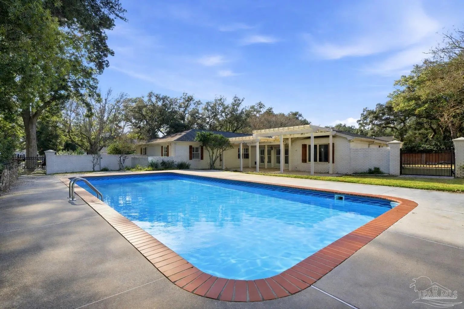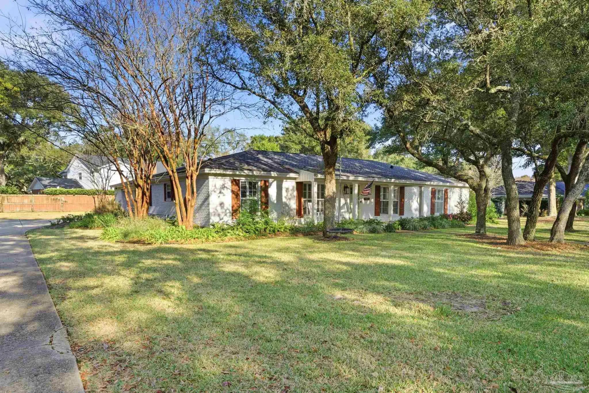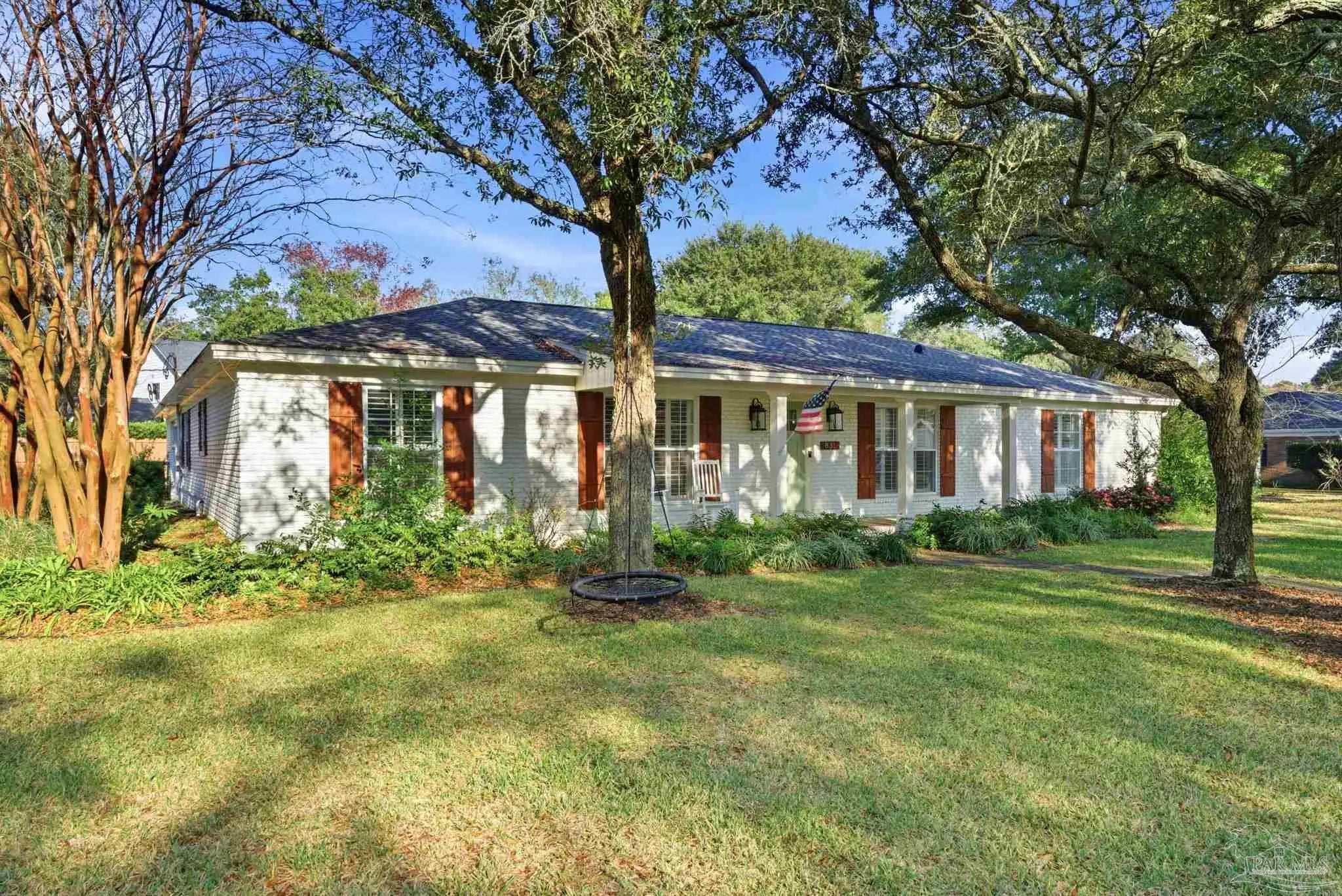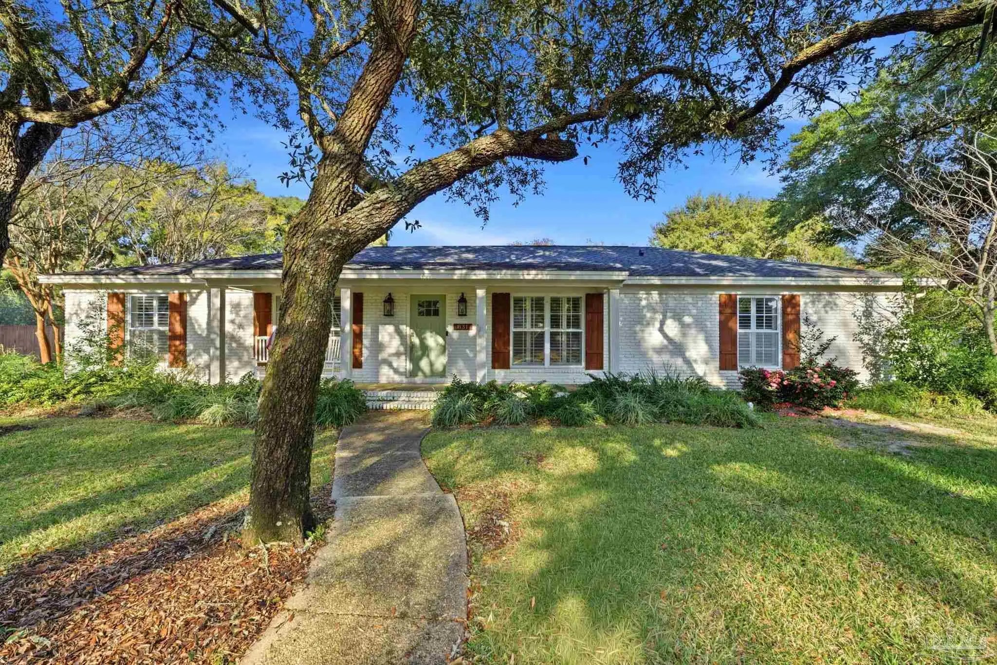 Located in the heart of Gulf Breeze Proper and within easy walking distance of top-rated schools, parks, and local shops, this beautifully updated one-story brick pool home delivers spacious, light-filled living with timeless coastal appeal. Set on a generous half-acre lot, the five-bedroom, three-and-a-half-bath residence balances relaxed daily life with effortless entertaining. An open-concept layout flows naturally between two expansive living areas, both bright with natural light and finished with durable luxury vinyl plank and tile flooring. The main living space centers around a welcoming gas fireplace that brings warmth and character year-round. The well-appointed kitchen features a large island, gas cooktop, and quartz countertops, while an adjacent breakfast area offers casual dining and the separate formal dining room is perfect for special gatherings. The primary suite provides a peaceful retreat with a generous walk-in closet, and a tastefully updated bathroom complete with dual vanities and a beautifully tiled shower. Four additional bedrooms offer flexibility for family, guests, or home offices, including one ideally suited as a private guest suite. Step outside to a secluded backyard oasis anchored by a sparkling saltwater pool with new liner and a spacious lanai designed for year-round enjoyment. Additional highlights include a 1.5-car garage with dedicated golf-cart parking, a fully fenced yard, tankless water heater, and sprinkler system. With its unbeatable location and thoughtful design, this home embodies the very best of the Gulf Breeze lifestyle.