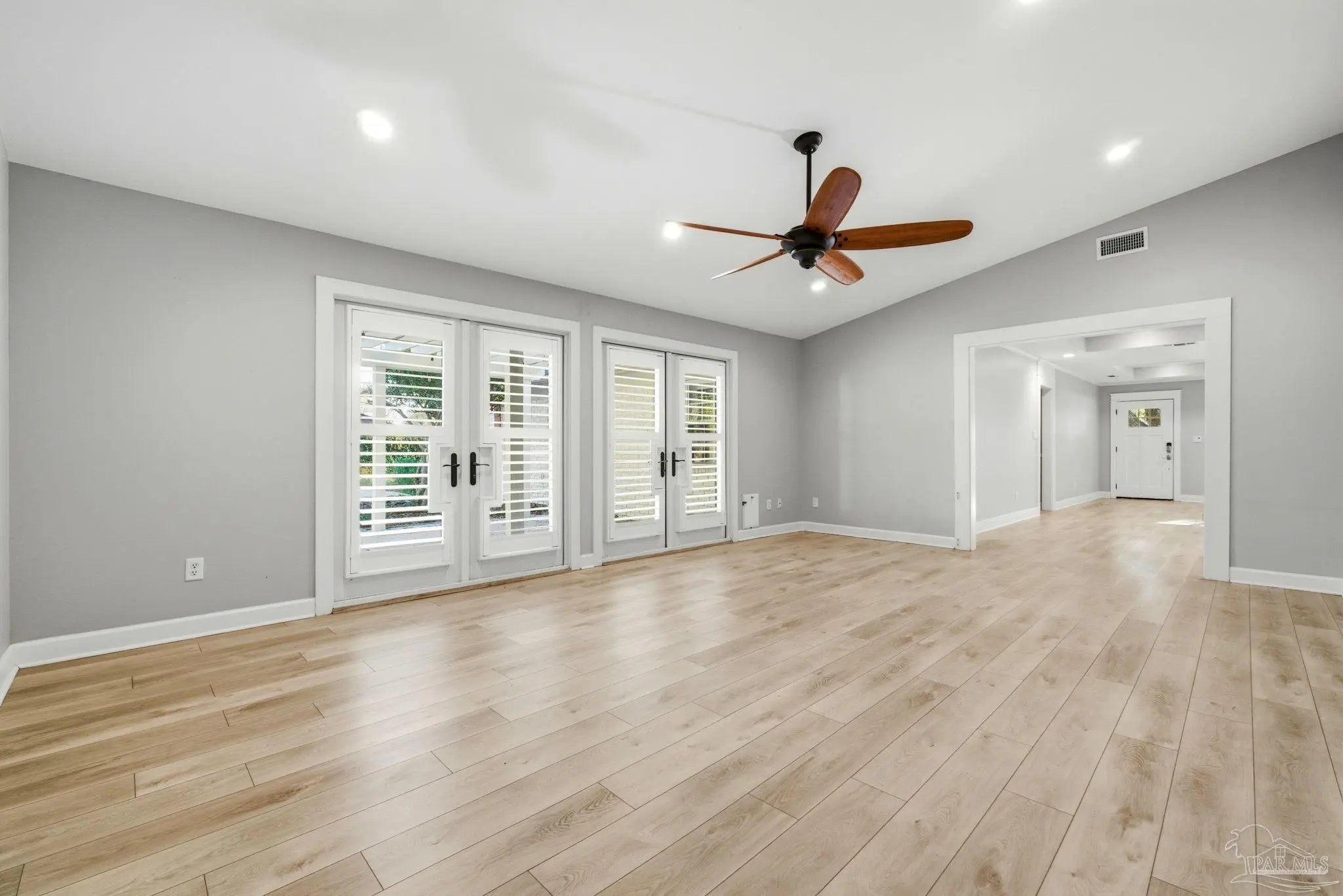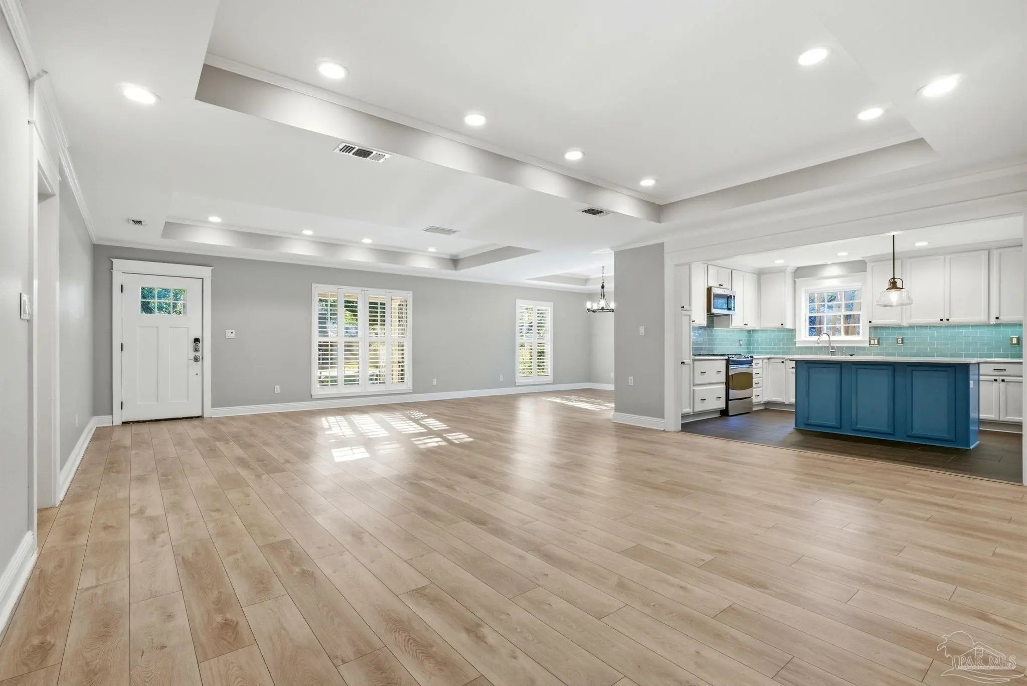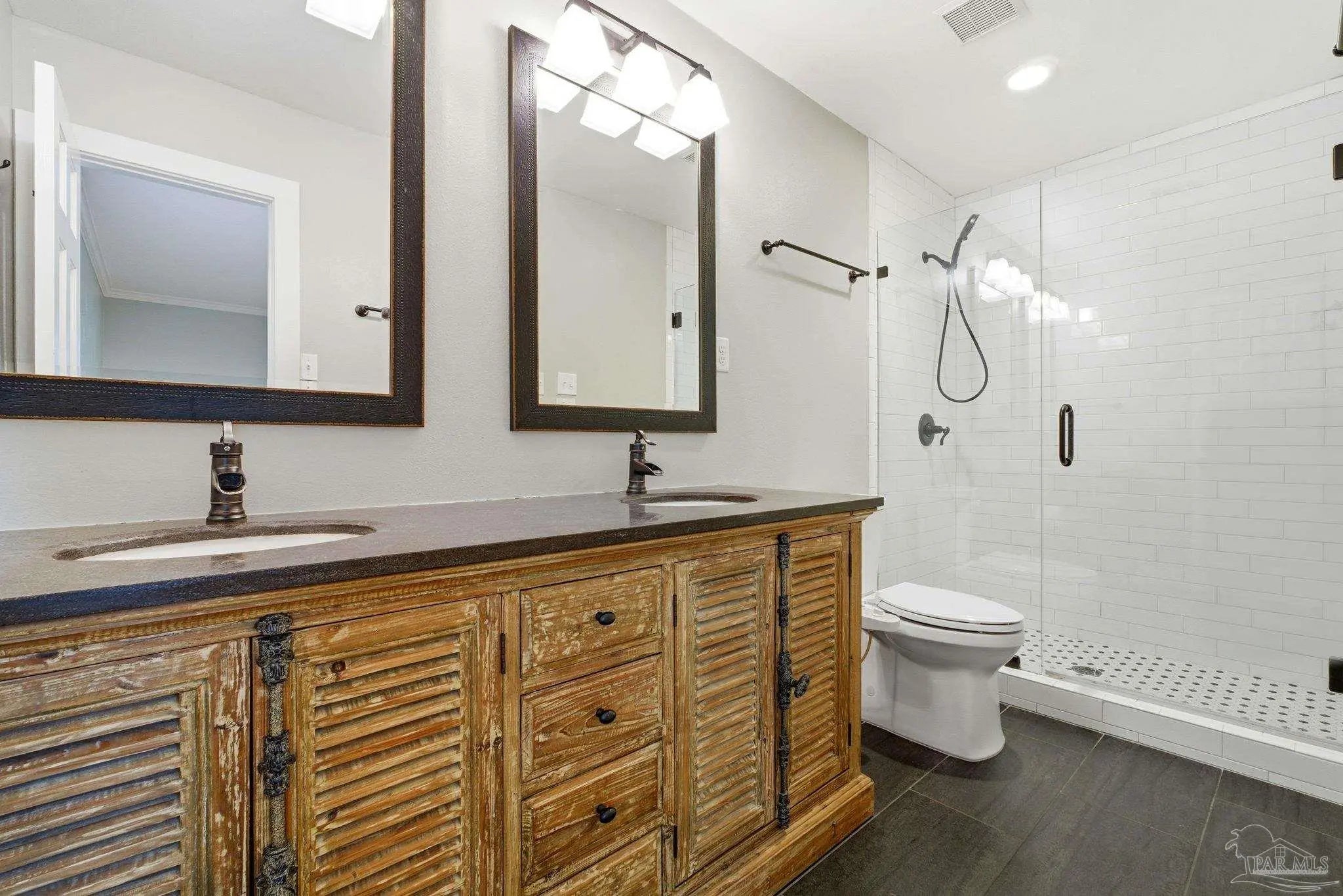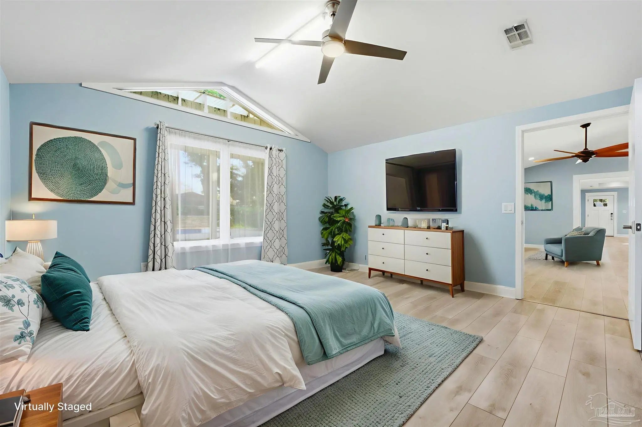 Located in the heart of Gulf Breeze Proper and within easy walking distance of top-rated schools, parks, and local shops, this beautifully updated one-story brick pool home delivers spacious, light-filled living with timeless coastal appeal. Set on a generous half-acre lot, the five-bedroom, three-and-a-half-bath residence balances relaxed daily life with effortless entertaining. An open-concept layout flows naturally between two expansive living areas, both bright with natural light and finished with durable luxury vinyl plank and tile flooring. The main living space centers around a welcoming gas fireplace that brings warmth and character year-round. The well-appointed kitchen features a large island, gas cooktop, and quartz countertops, while an adjacent breakfast area offers casual dining and the separate formal dining room is perfect for special gatherings. The primary suite provides a peaceful retreat with a generous walk-in closet, and a tastefully updated bathroom complete with dual vanities and a beautifully tiled shower. Four additional bedrooms offer flexibility for family, guests, or home offices, including one ideally suited as a private guest suite. Step outside to a secluded backyard oasis anchored by a sparkling saltwater pool with new liner and a spacious lanai designed for year-round enjoyment. Additional highlights include a 1.5-car garage with dedicated golf-cart parking, a fully fenced yard, tankless water heater, and sprinkler system. With its unbeatable location and thoughtful design, this home embodies the very best of the Gulf Breeze lifestyle.