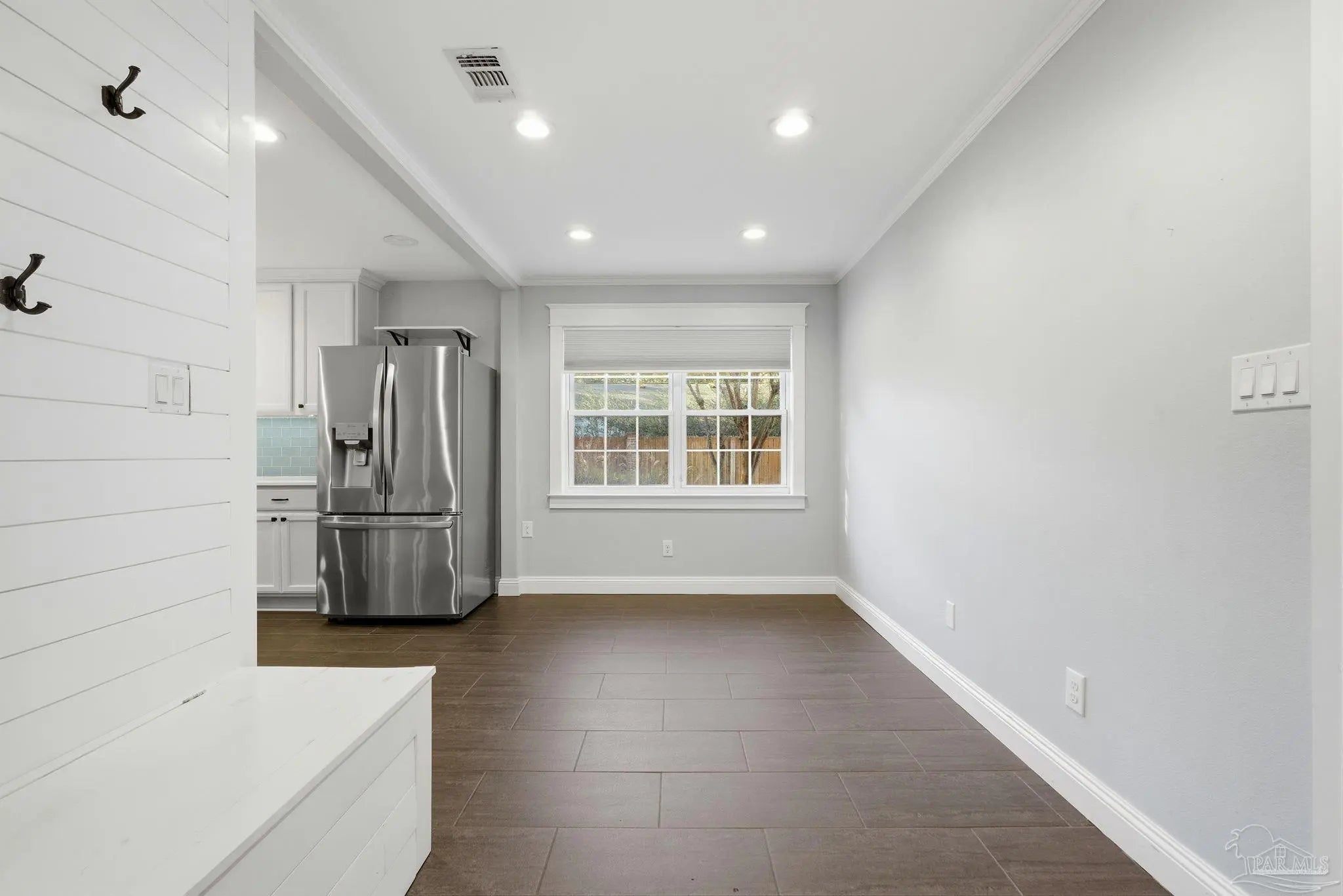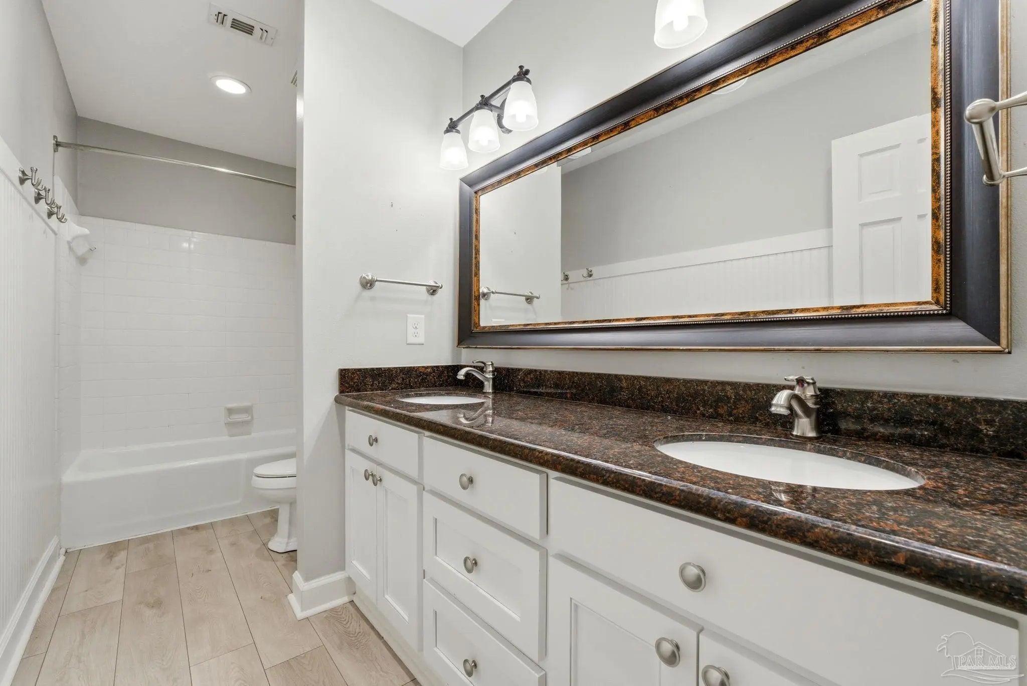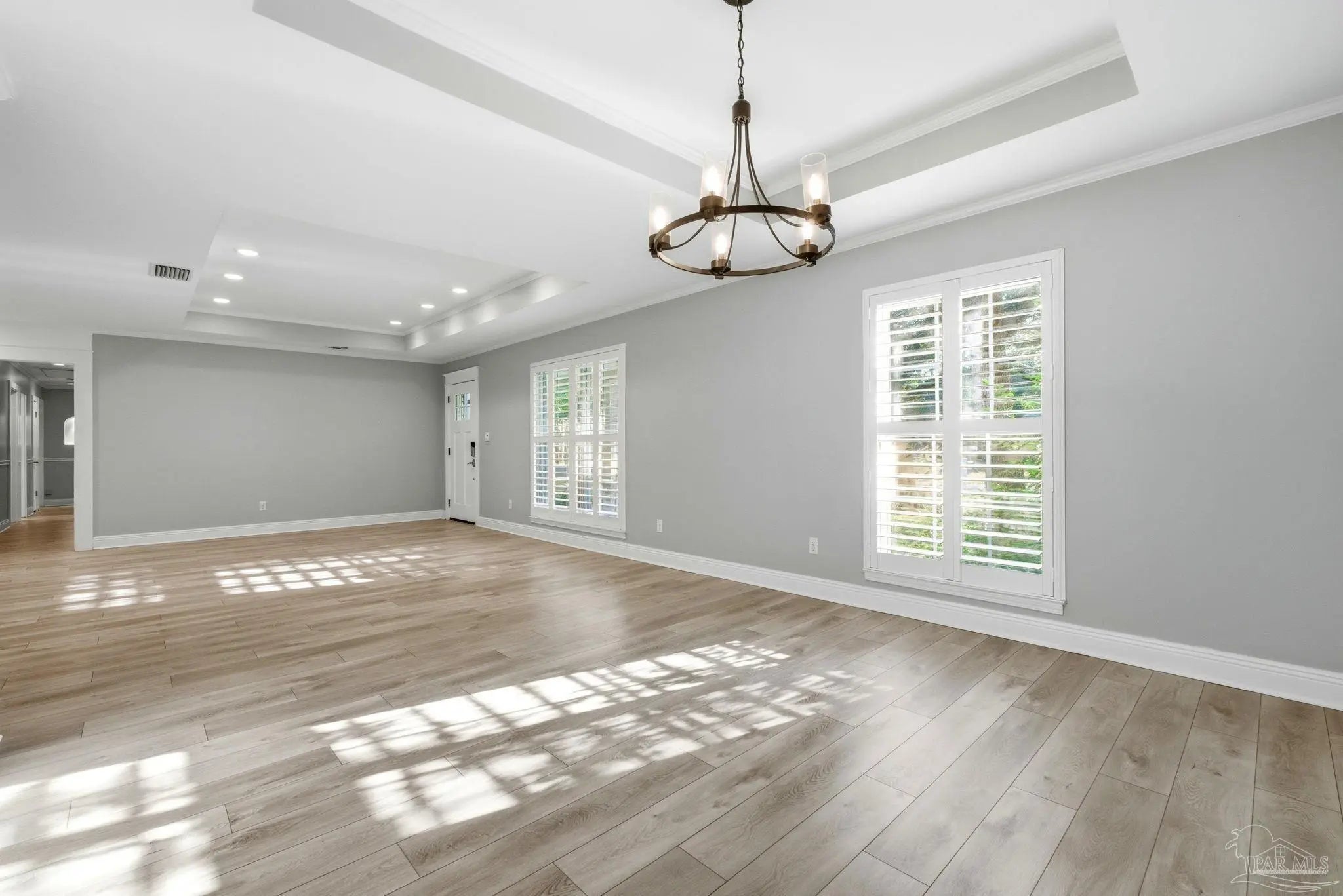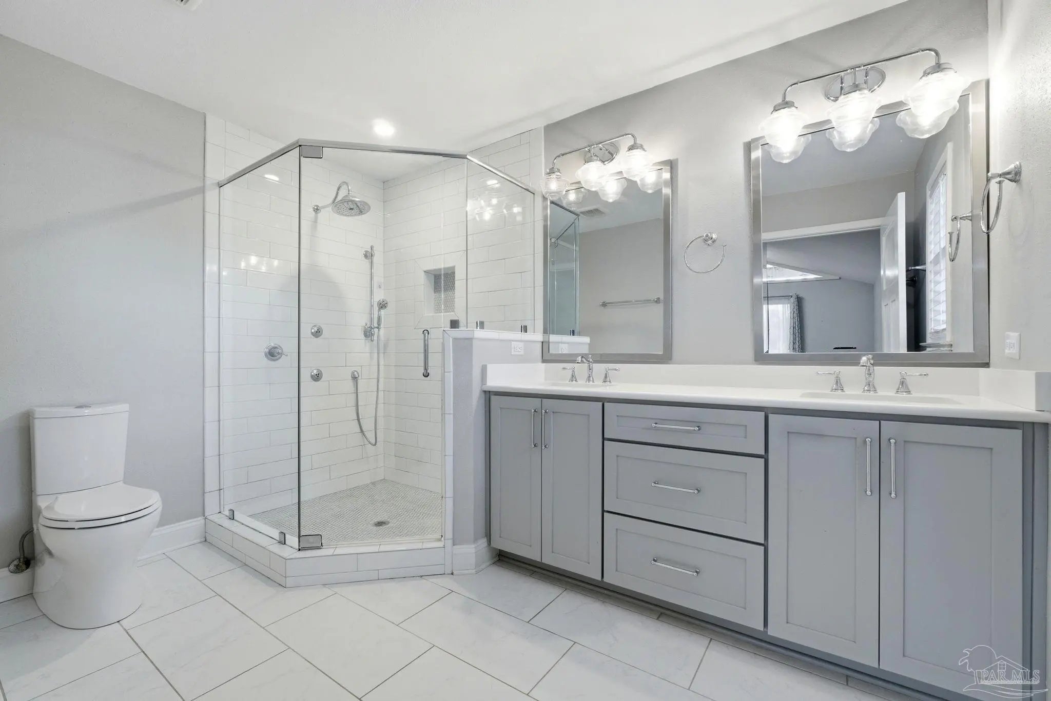Located in the heart of Gulf Breeze Proper and within easy walking distance of top-rated schools, parks, and local shops, this beautifully updated one-story brick pool home delivers spacious, light-filled living with timeless coastal appeal. Set on a generous half-acre lot, the five-bedroom, three-and-a-half-bath residence balances relaxed daily life with effortless entertaining. An open-concept layout flows naturally between two expansive living areas, both bright with natural light and finished with durable luxury vinyl plank and tile flooring. The main living space centers around a welcoming gas fireplace that brings warmth and character year-round. The well-appointed kitchen features a large island, gas cooktop, and quartz countertops, while an adjacent breakfast area offers casual dining and the separate formal dining room is perfect for special gatherings. The primary suite provides a peaceful retreat with a generous walk-in closet, and a tastefully updated bathroom complete with dual vanities and a beautifully tiled shower. Four additional bedrooms offer flexibility for family, guests, or home offices, including one ideally suited as a private guest suite. Step outside to a secluded backyard oasis anchored by a sparkling saltwater pool with new liner and a spacious lanai designed for year-round enjoyment. Additional highlights include a 1.5-car garage with dedicated golf-cart parking, a fully fenced yard, tankless water heater, and sprinkler system. With its unbeatable location and thoughtful design, this home embodies the very best of the Gulf Breeze lifestyle.