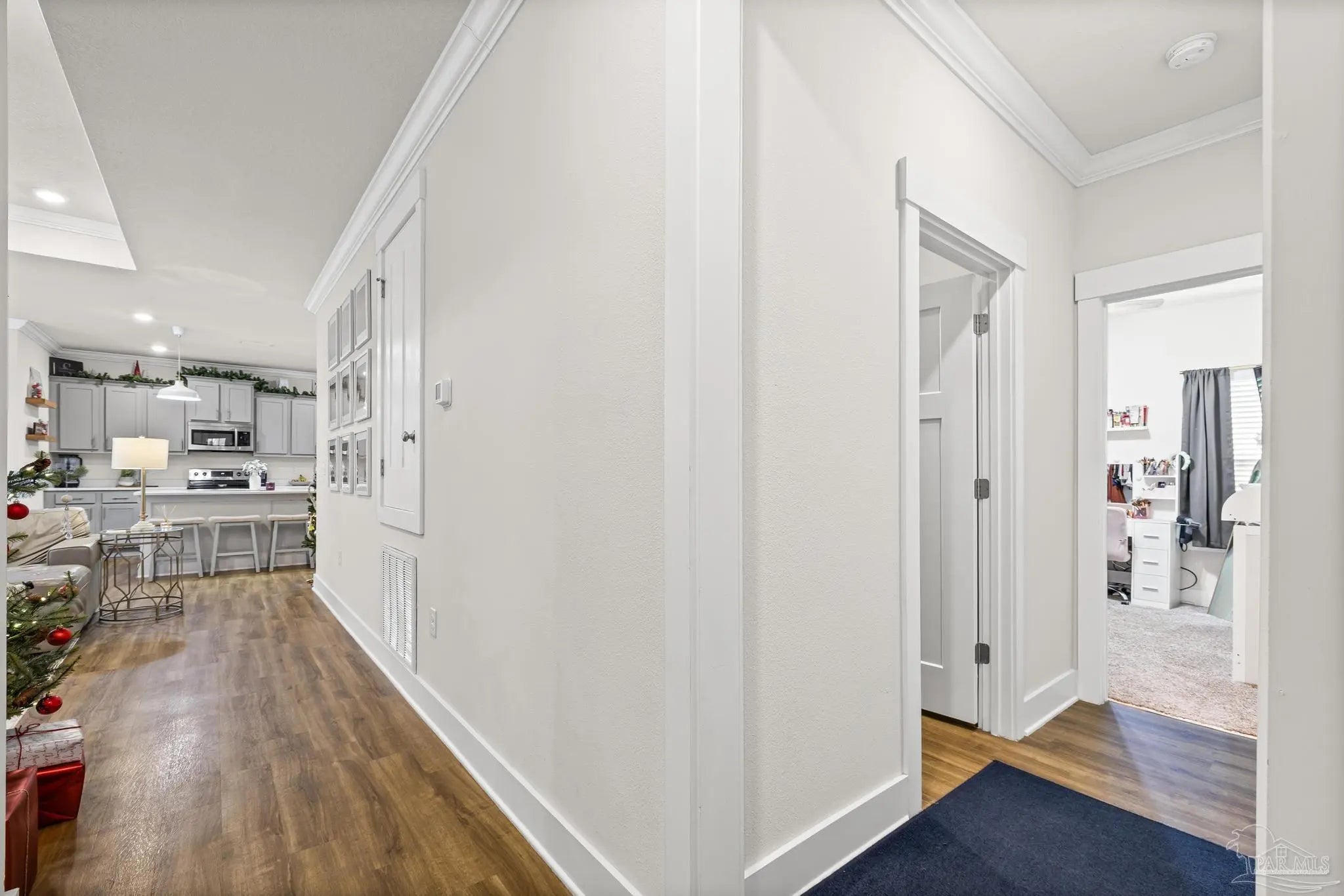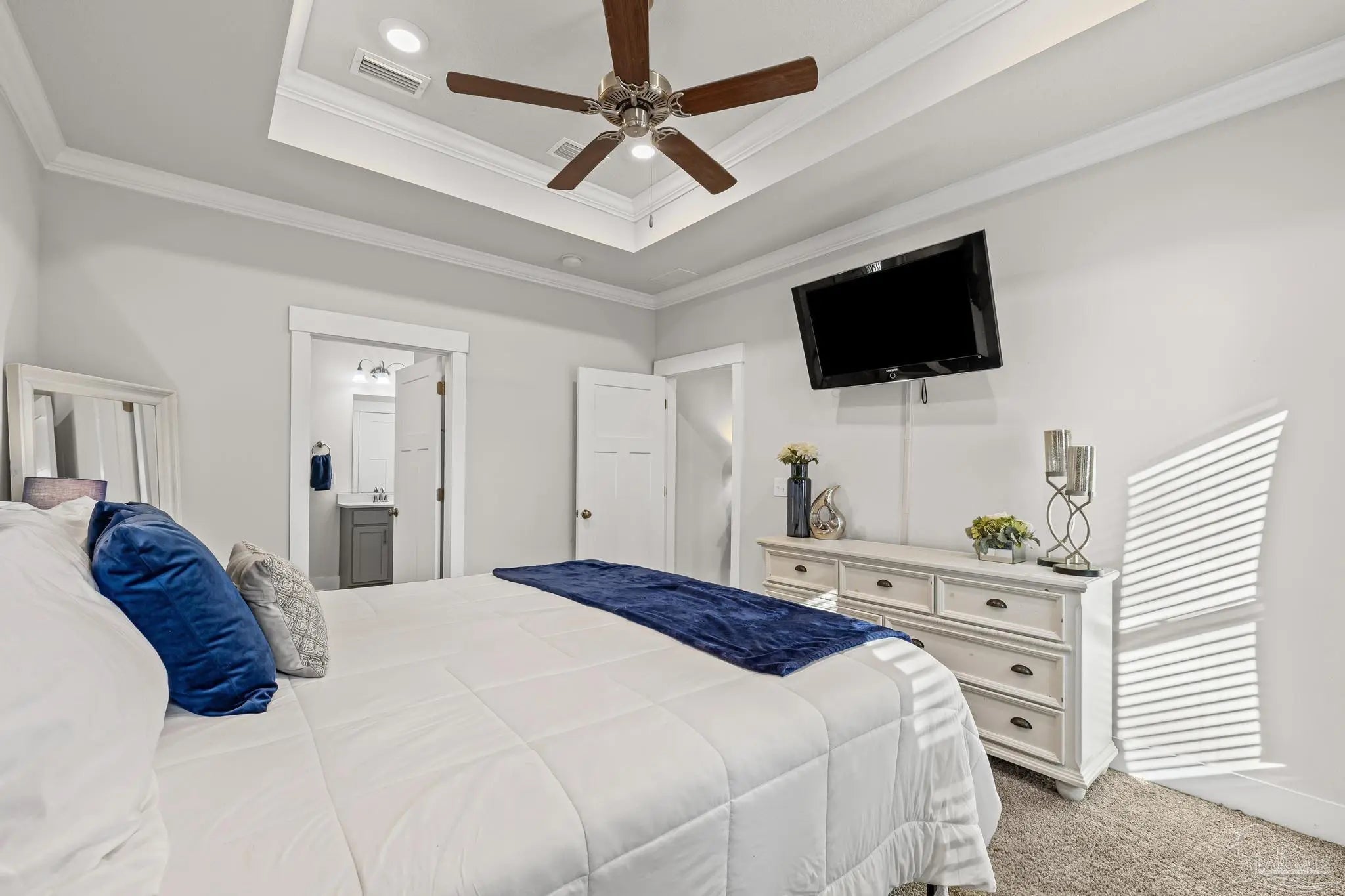 - Baseboards, Ceiling Fan(s), Crown Molding, High Ceilings