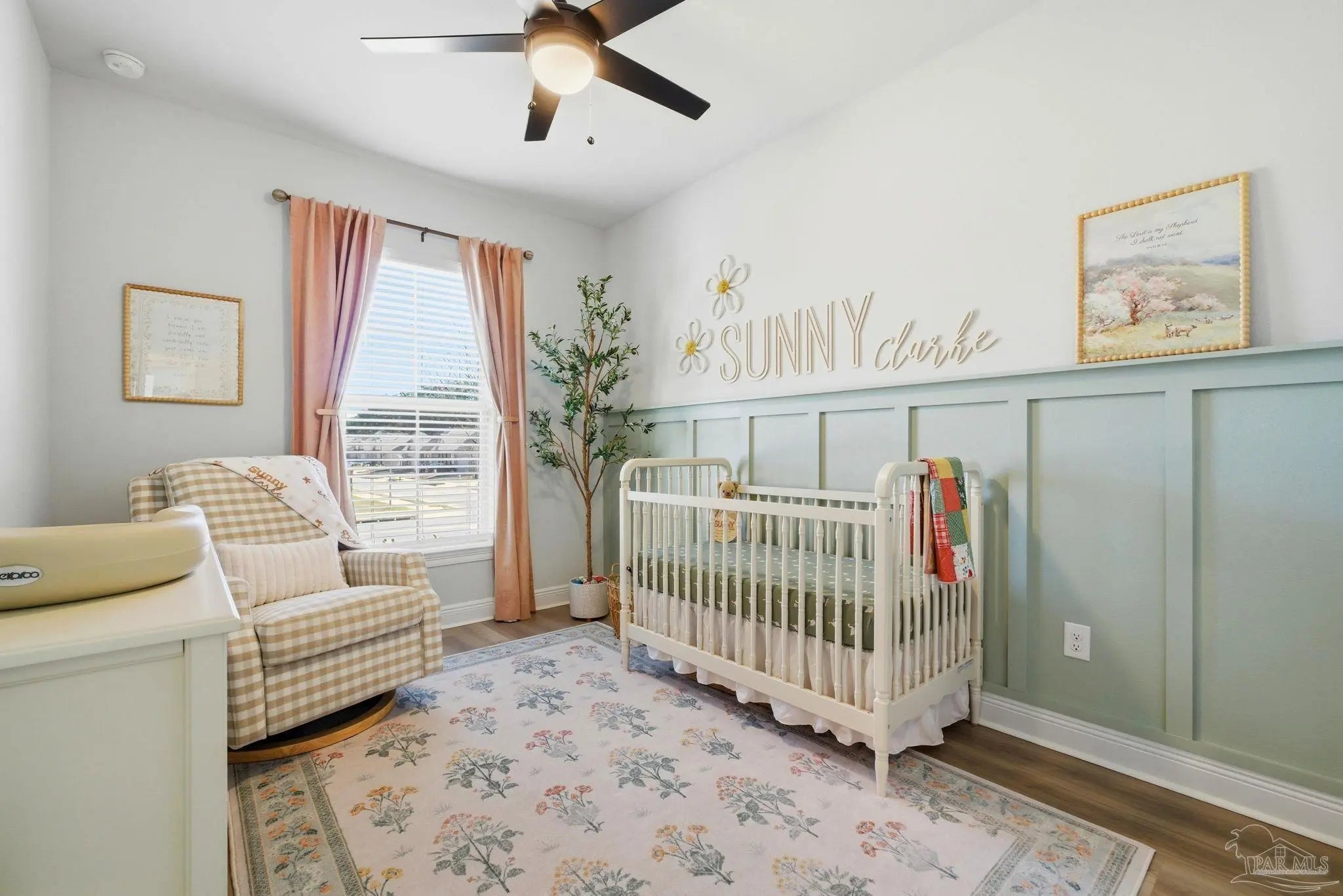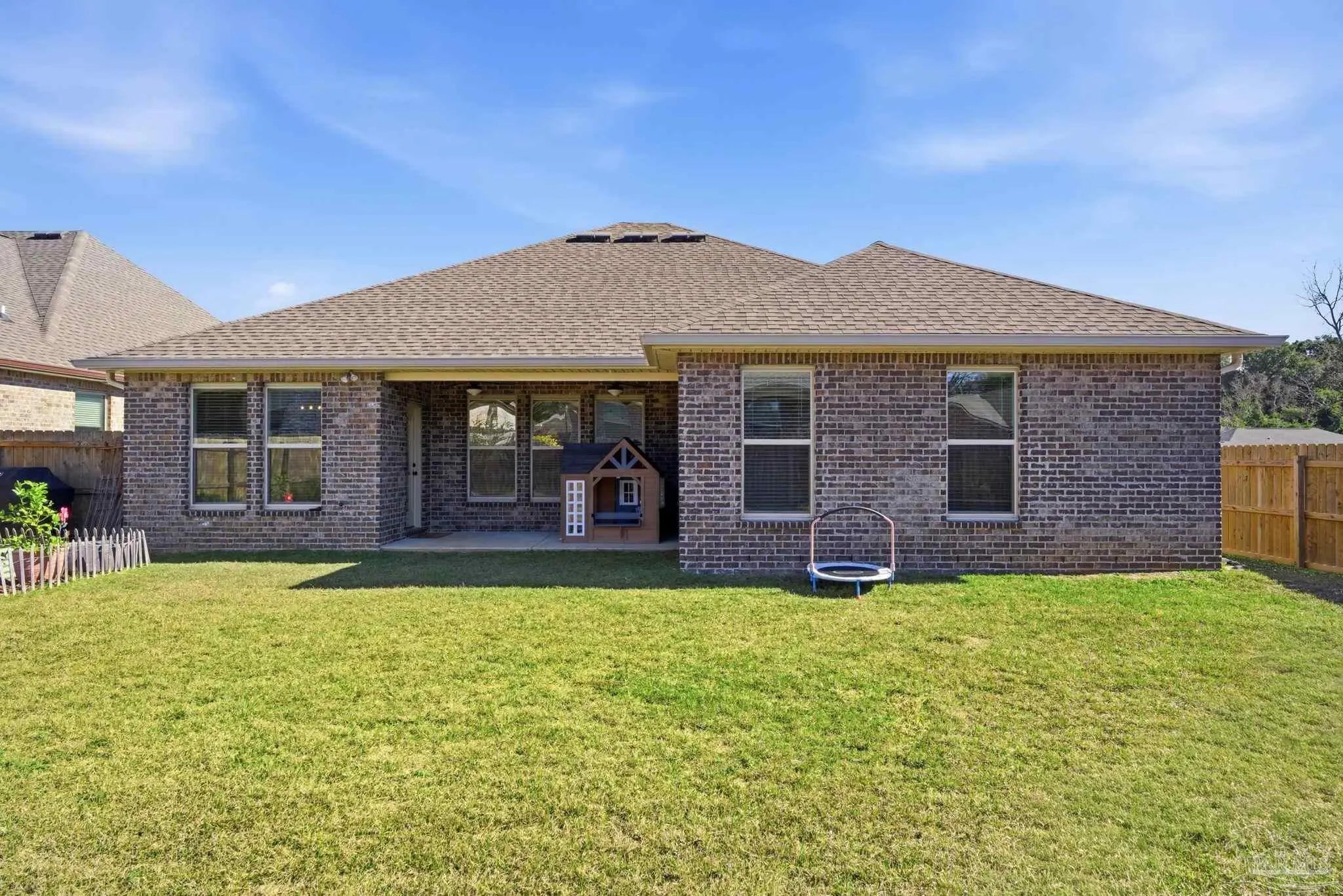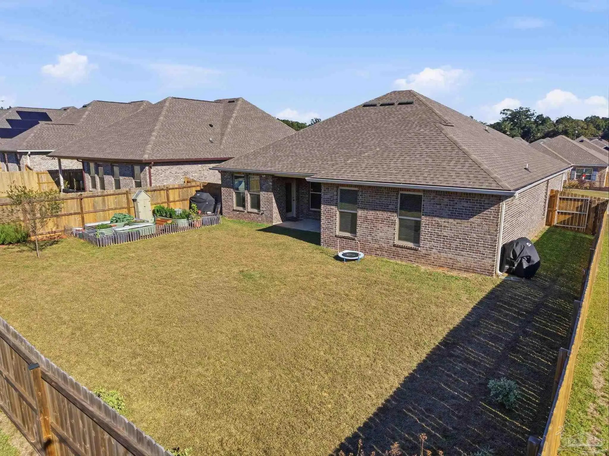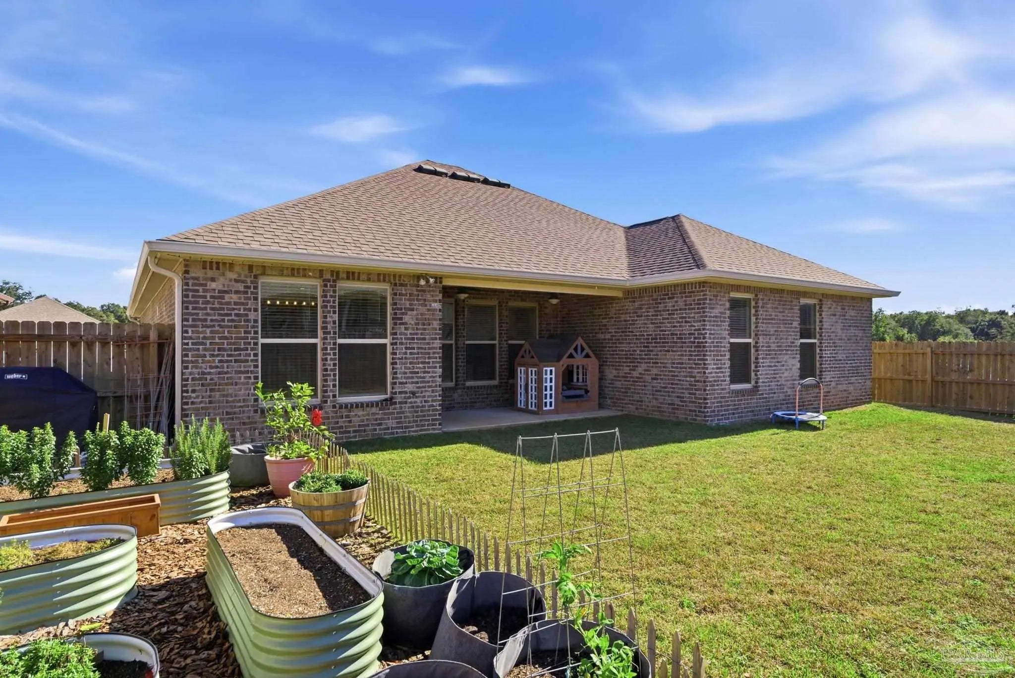 Welcome to this beautifully upgraded 4-bedroom, 2-bath home in the desirable Southern Palms community. Unlike new construction, this home offers thoughtful upgrades already in place, saving you time and money from day one. Gutters have been added, along with a fully fenced backyard for privacy and functionality. Step inside to an inviting foyer accented with stylish board-and-batten detailing, which continues into select rooms throughout the home, adding character and charm. The open-concept layout is perfect for everyday living and entertaining, while custom-built shelving in the laundry room adds smart storage and organization. Outside, you’ll find multiple raised garden beds in the backyard, ideal for gardening enthusiasts, which may convey with the home on a case-by-case basis. A transferable termite bond provides added peace of mind. Conveniently located just 5 minutes from Benny Russell Park and only 10 minutes to shopping, dining, and everyday conveniences, this home blends comfort, upgrades, and location. Don’t miss the opportunity to own a move-in-ready home with features you won’t typically find in a new build—schedule your showing today!