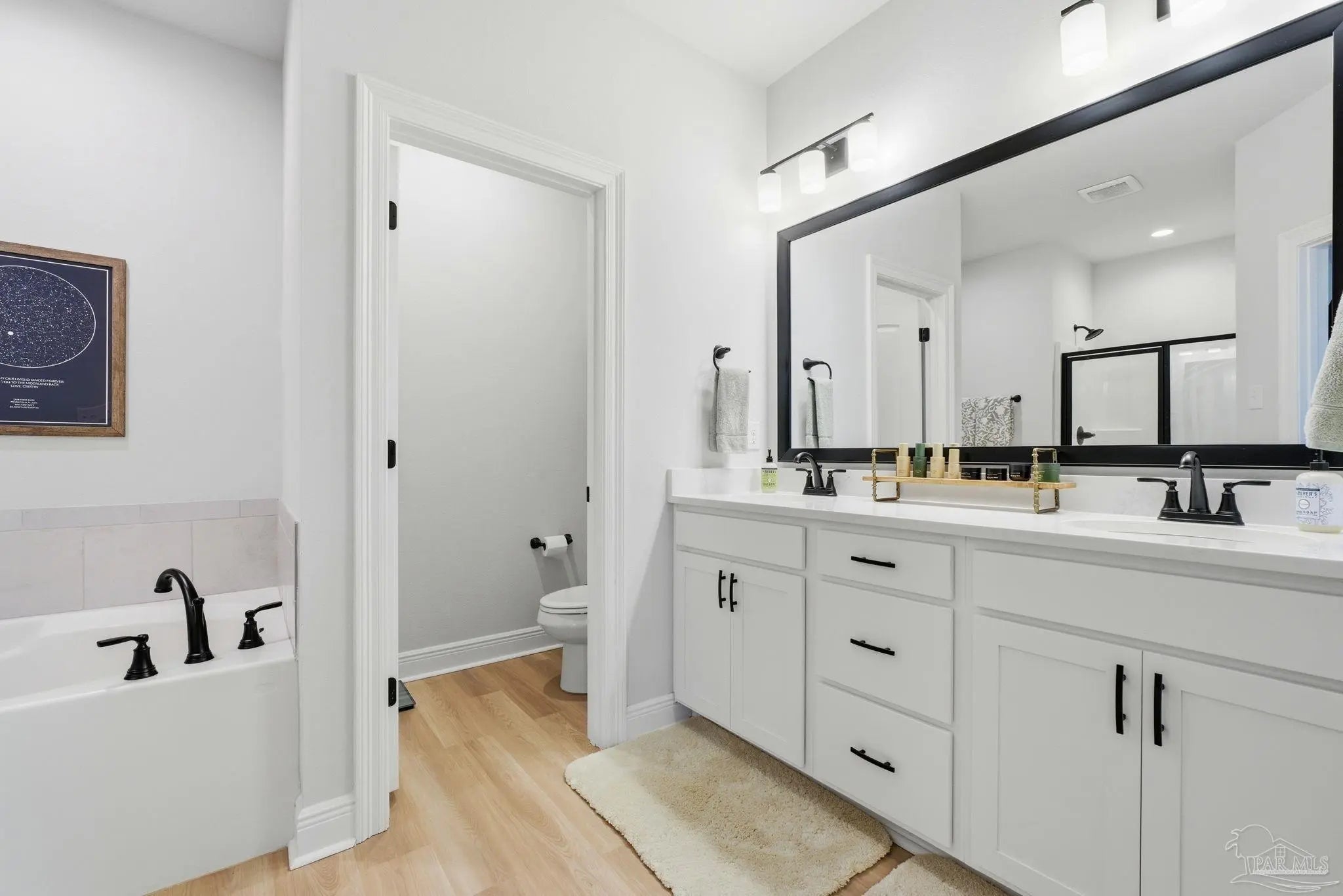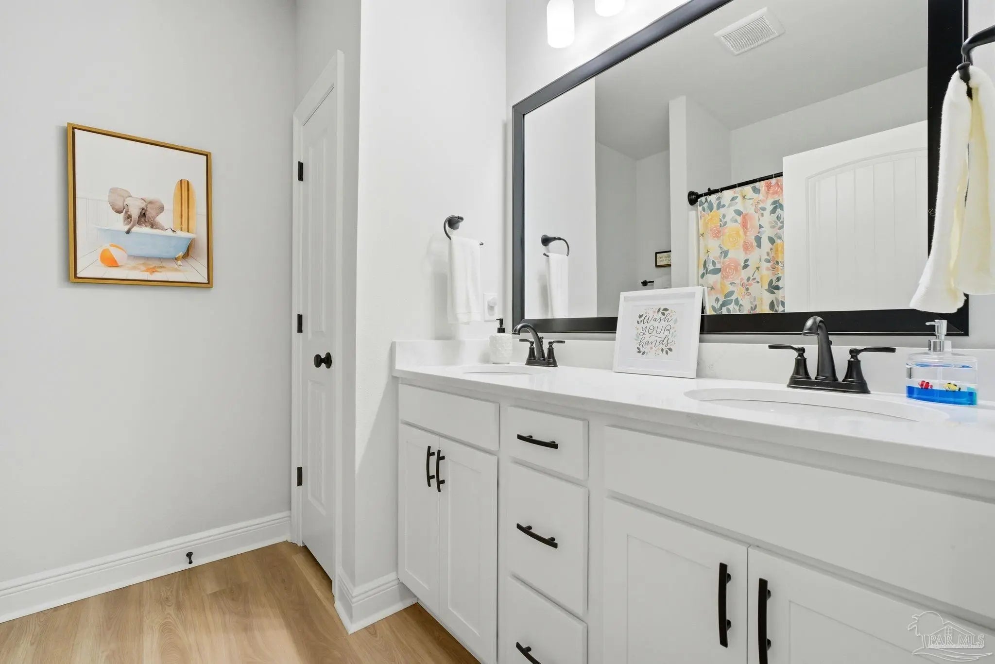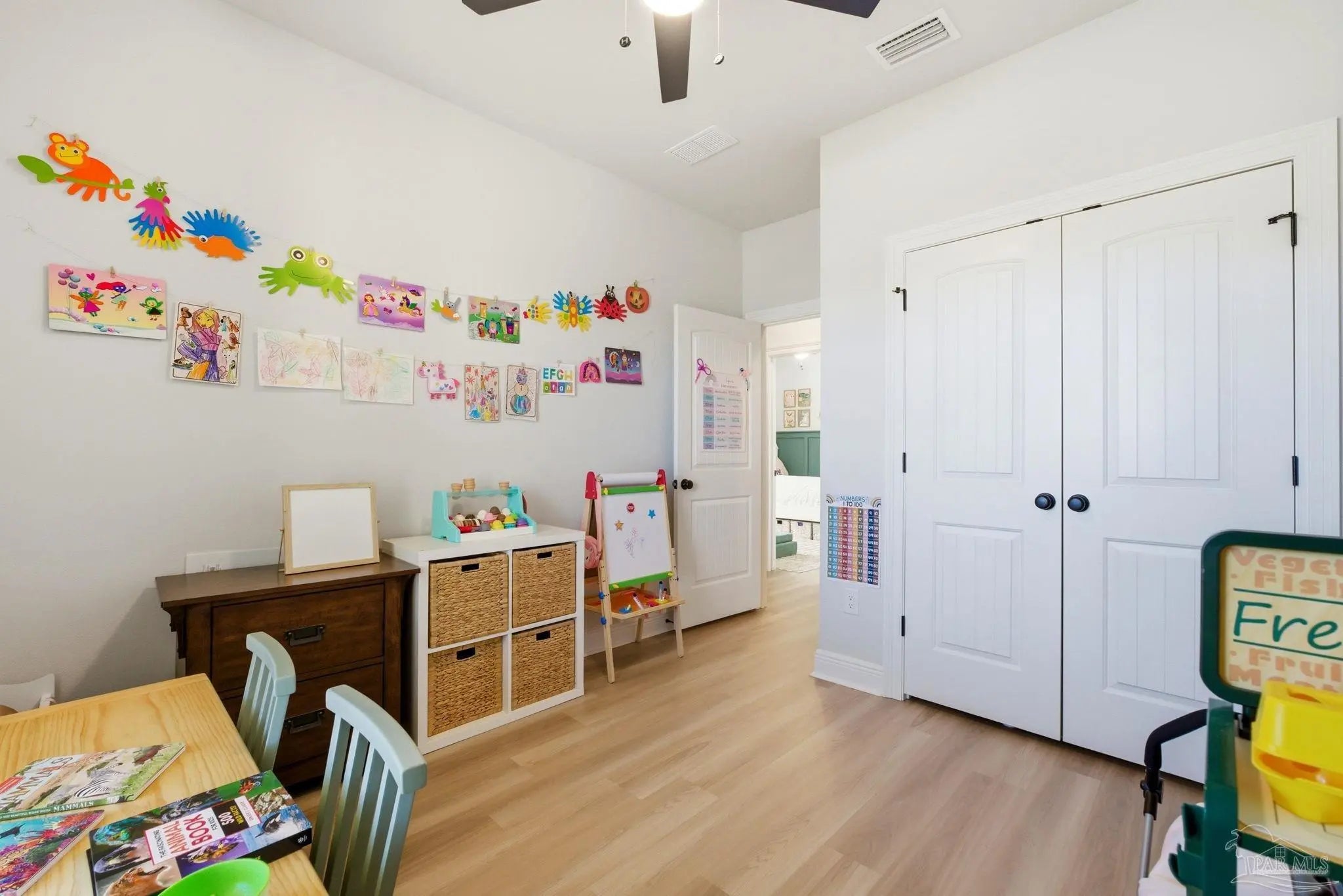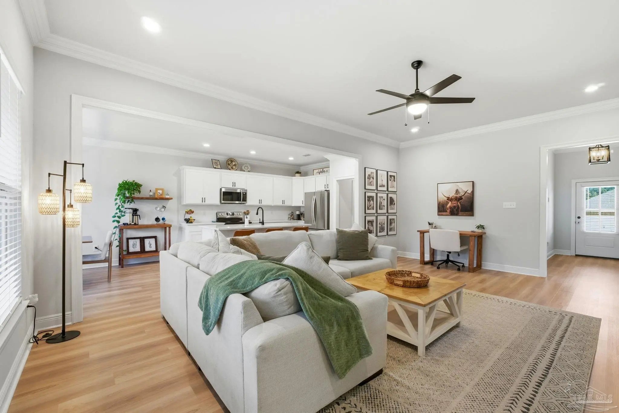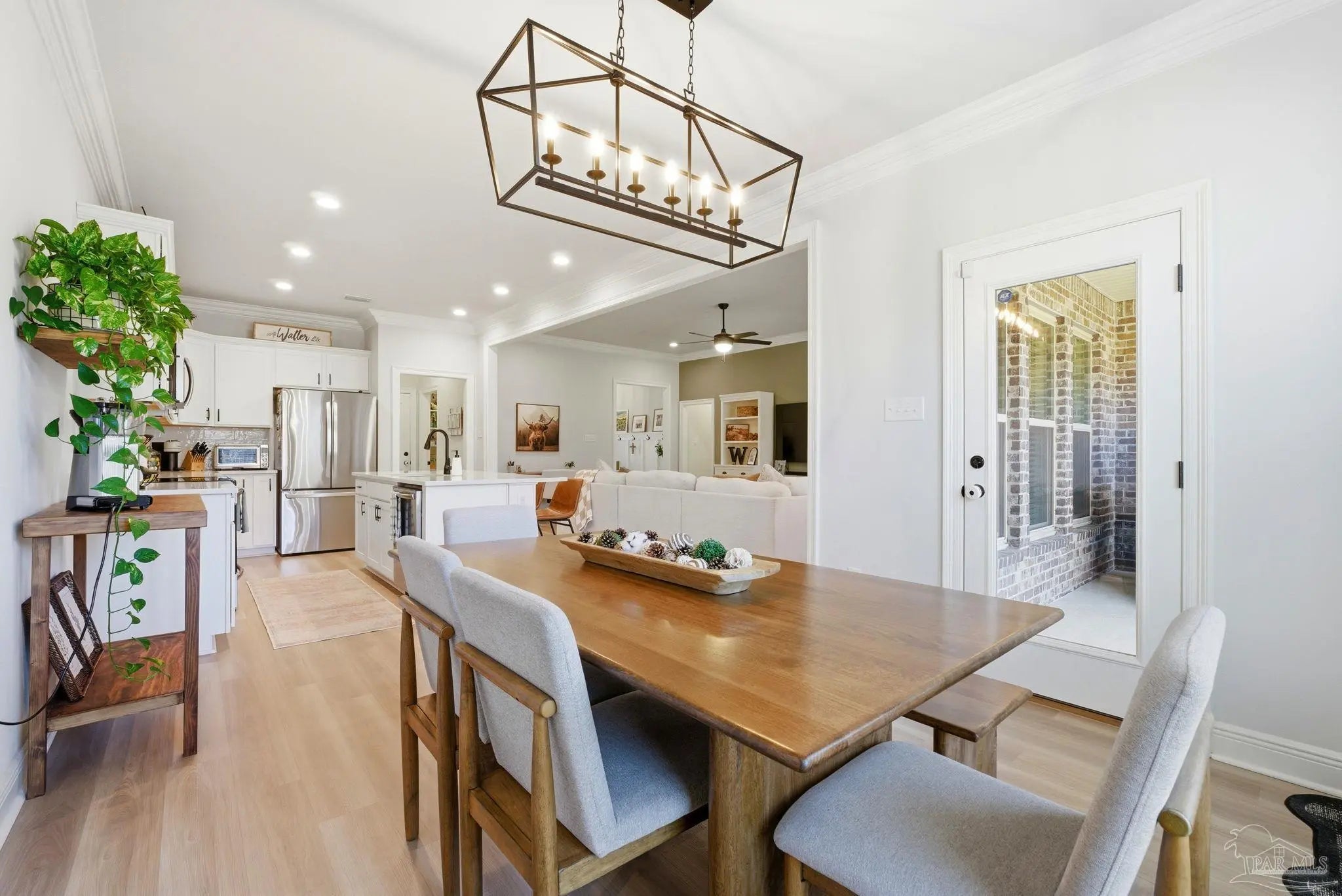 Welcome to this beautifully upgraded 4-bedroom, 2-bath home in the desirable Southern Palms community. Unlike new construction, this home offers thoughtful upgrades already in place, saving you time and money from day one. Gutters have been added, along with a fully fenced backyard for privacy and functionality. Step inside to an inviting foyer accented with stylish board-and-batten detailing, which continues into select rooms throughout the home, adding character and charm. The open-concept layout is perfect for everyday living and entertaining, while custom-built shelving in the laundry room adds smart storage and organization. Outside, you’ll find multiple raised garden beds in the backyard, ideal for gardening enthusiasts, which may convey with the home on a case-by-case basis. A transferable termite bond provides added peace of mind. Conveniently located just 5 minutes from Benny Russell Park and only 10 minutes to shopping, dining, and everyday conveniences, this home blends comfort, upgrades, and location. Don’t miss the opportunity to own a move-in-ready home with features you won’t typically find in a new build—schedule your showing today!