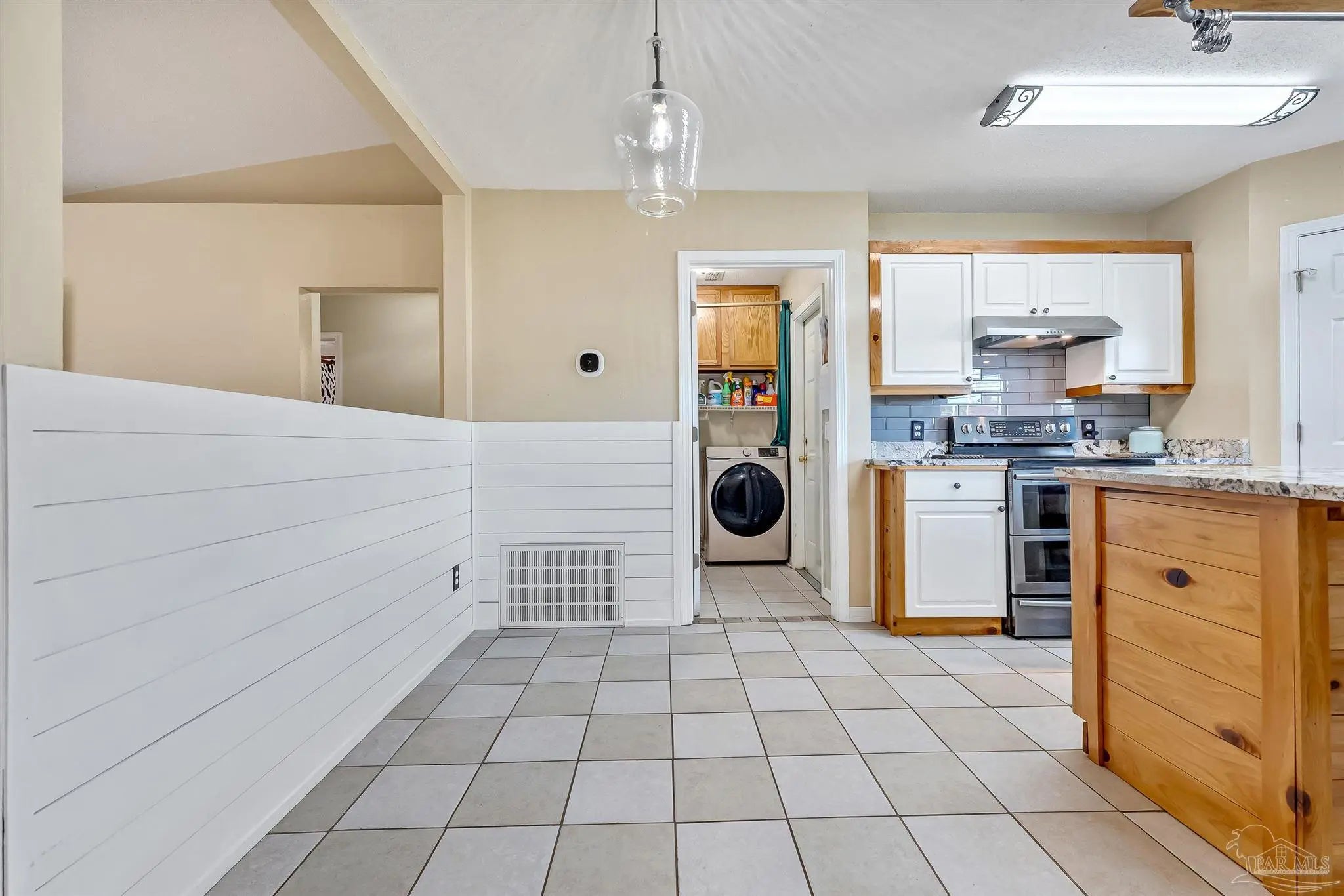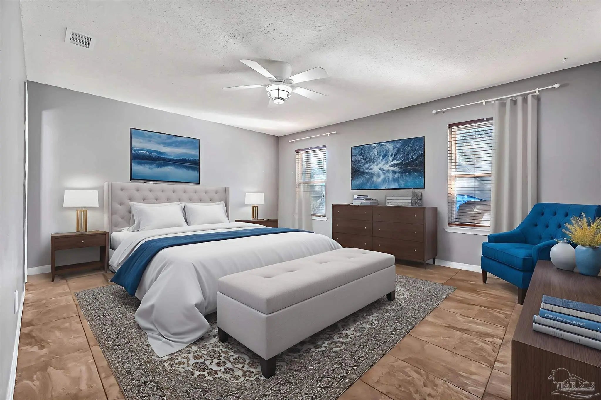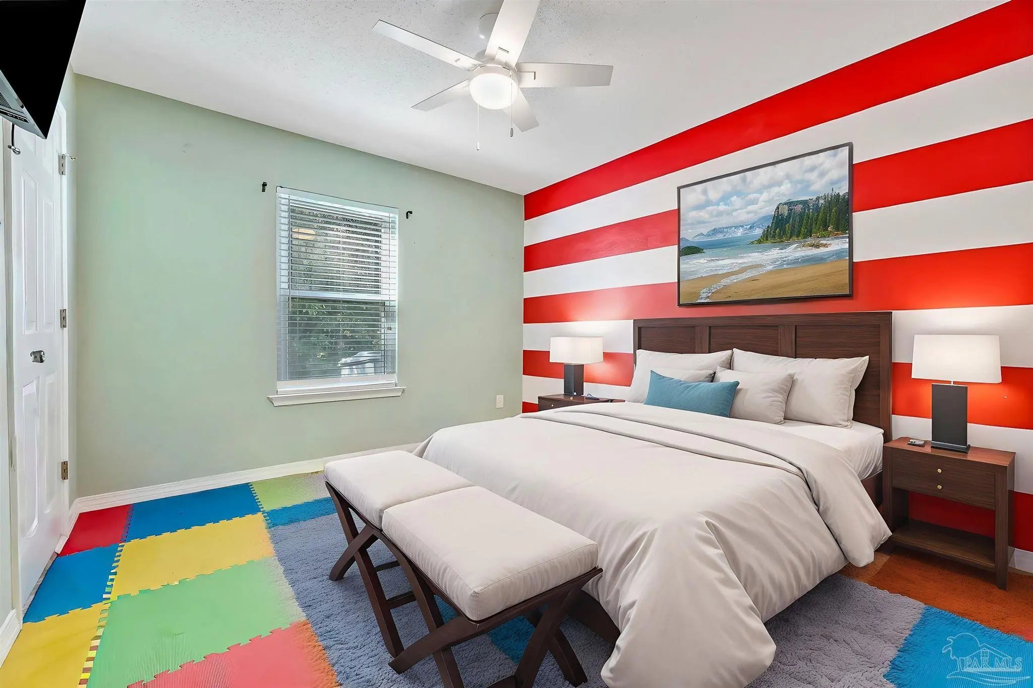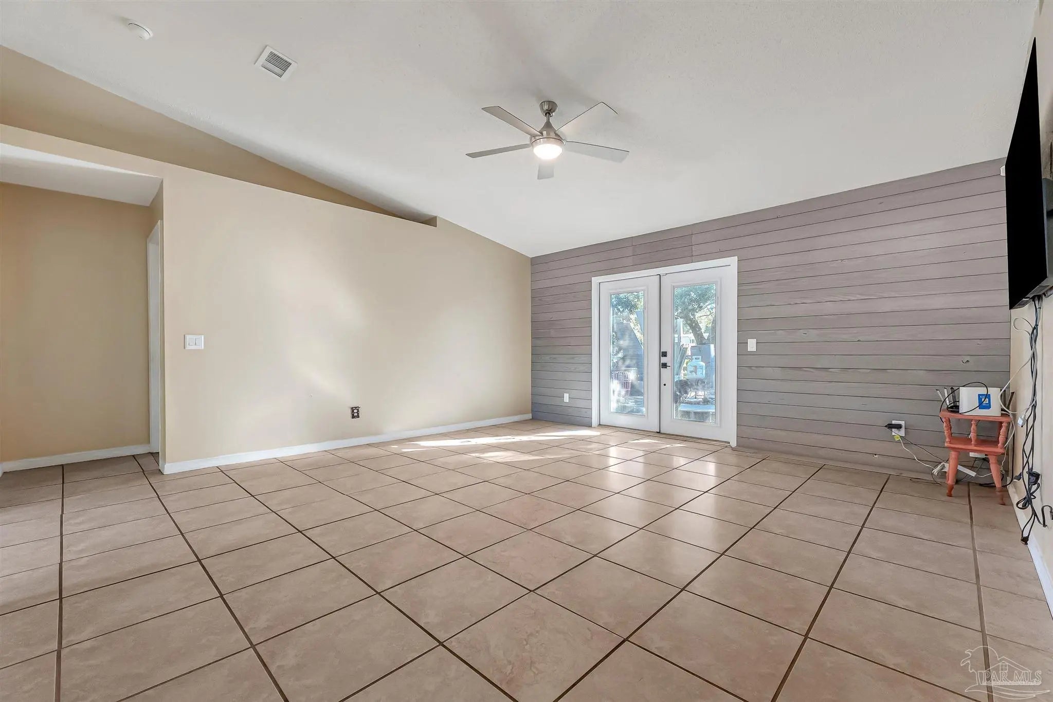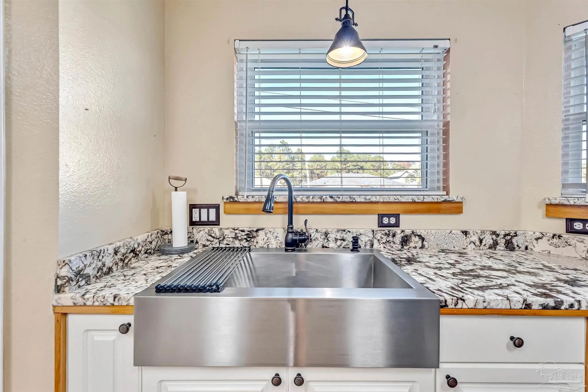 This well-maintained 3-bedroom, 2-bath home in Navarre has no HOA and is located in flood zone X. It features 1,714 sqft of tiled living space and a split-bedroom floor plan that offers privacy and flexible living. The updated kitchen includes granite countertops, black stainless appliances, a farmhouse sink, a large island with storage, and a pantry. The family room features plant ledges and French doors leading to a fully privacy-fenced backyard. A separate dining room or home office with a barn door adds versatility. The primary suite includes two walk-in closets and a bath with a garden tub. Bathrooms feature updated fixtures, with a new vanity in the second bath. Updates include a newer roof (2022) and HVAC (2022). Convenient access to bases and beaches.