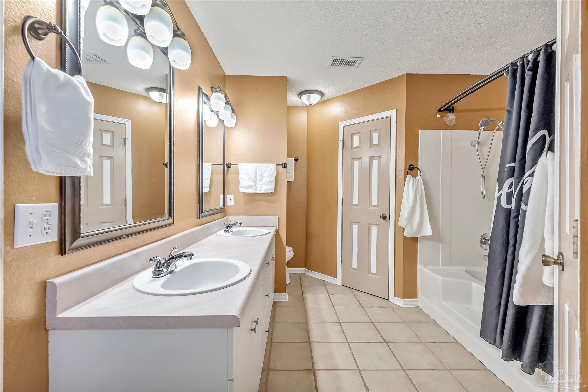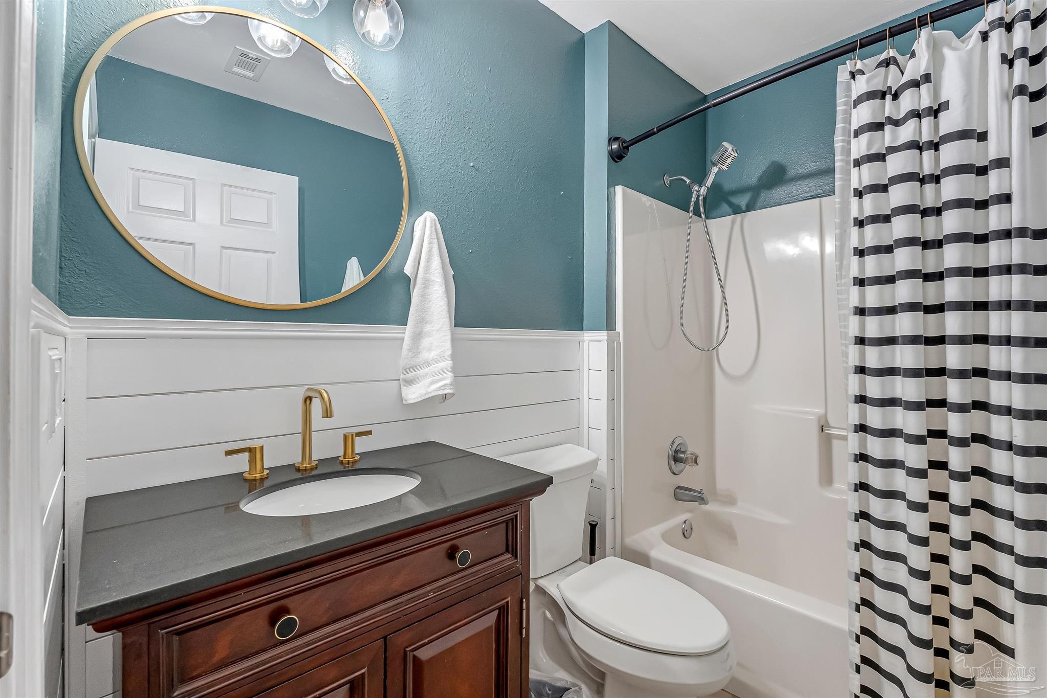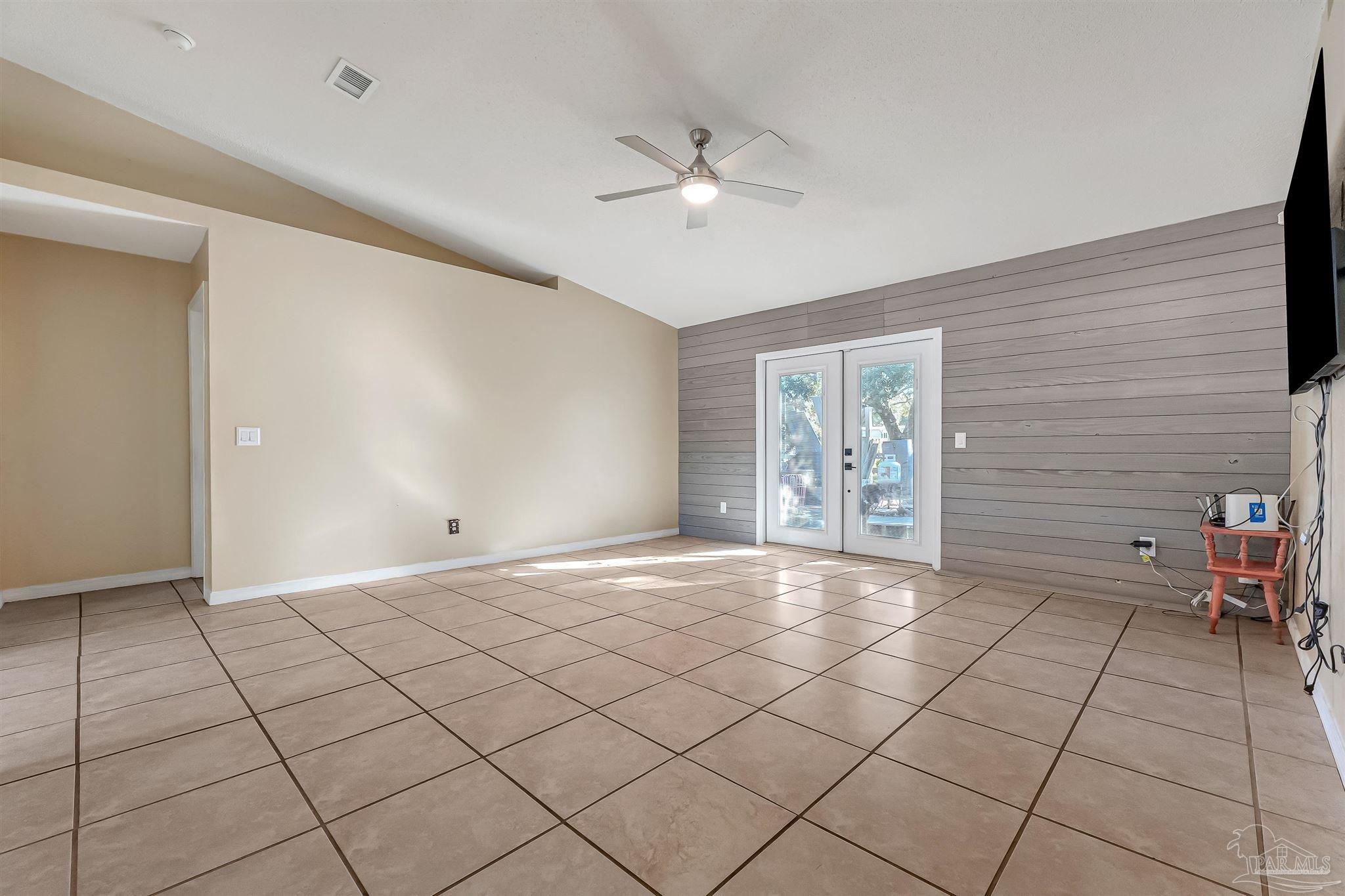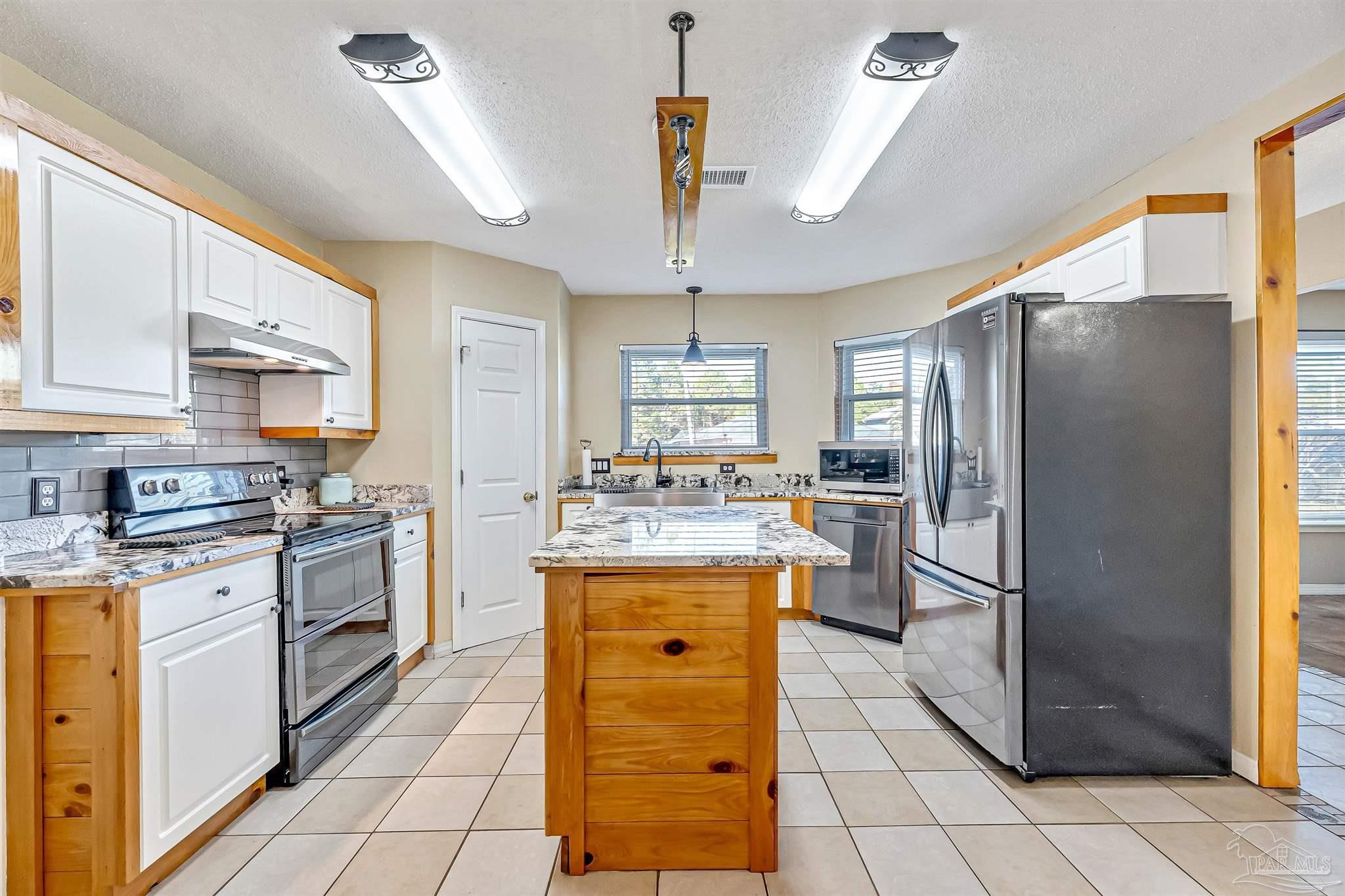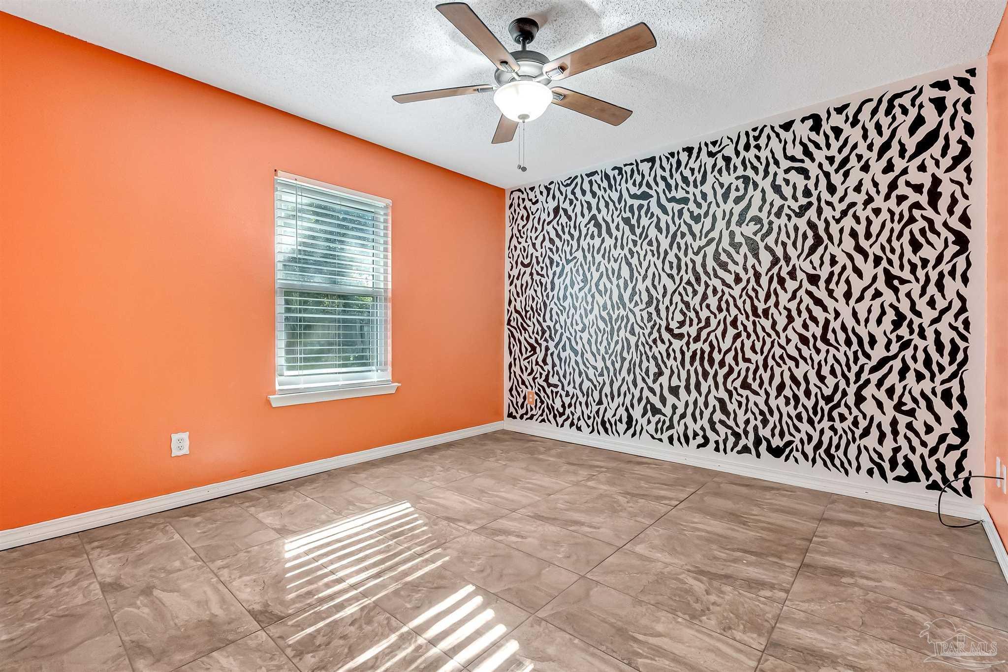 This well-maintained 3-bedroom, 2-bath home in Navarre has no HOA and is located in flood zone X. It features 1,714 sqft of tiled living space and a split-bedroom floor plan that offers privacy and flexible living. The updated kitchen includes granite countertops, black stainless appliances, a farmhouse sink, a large island with storage, and a pantry. The family room features plant ledges and French doors leading to a fully privacy-fenced backyard. A separate dining room or home office with a barn door adds versatility. The primary suite includes two walk-in closets and a bath with a garden tub. Bathrooms feature updated fixtures, with a new vanity in the second bath. Updates include a newer roof (2022) and HVAC (2022). Convenient access to bases and beaches.