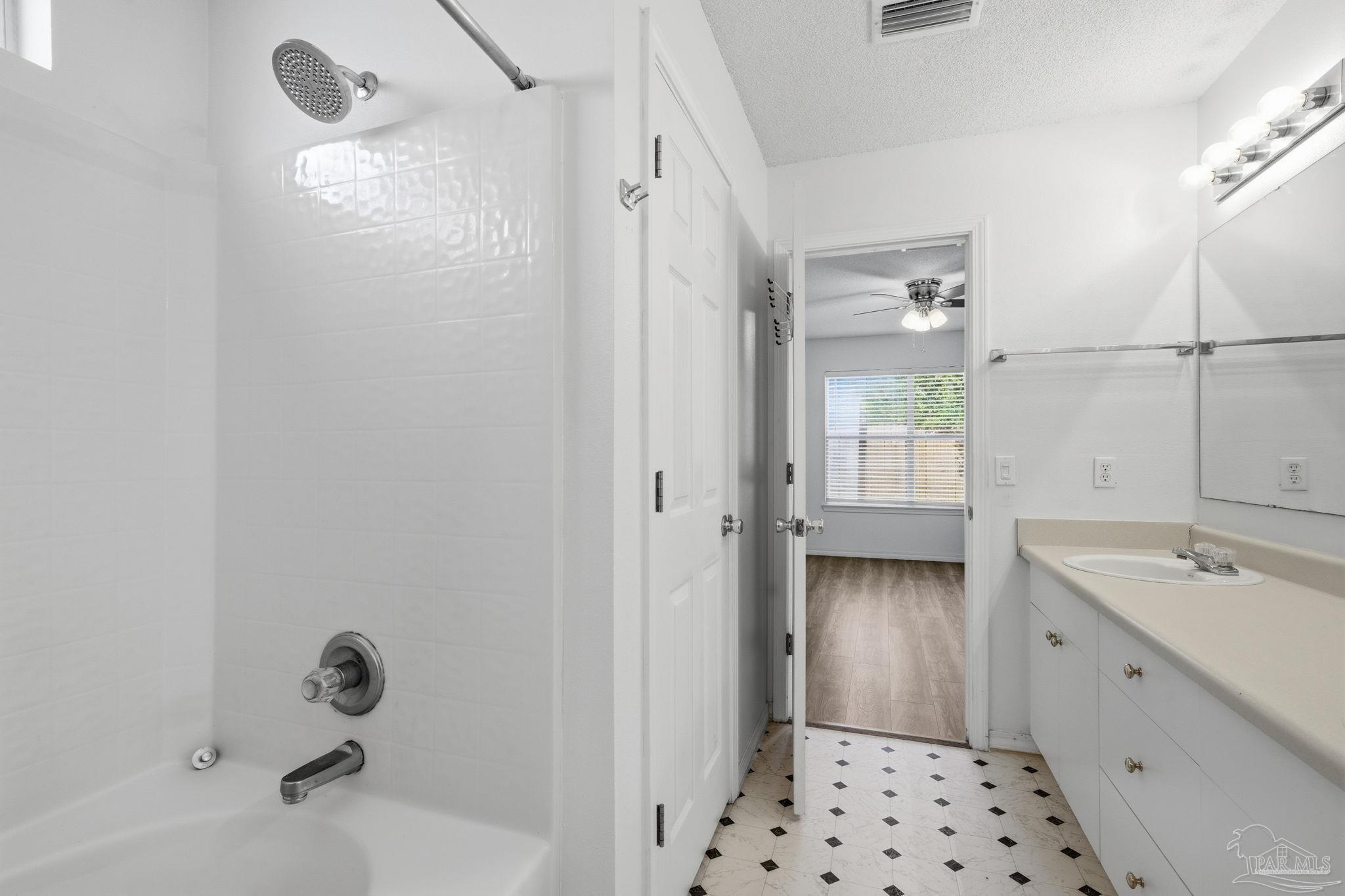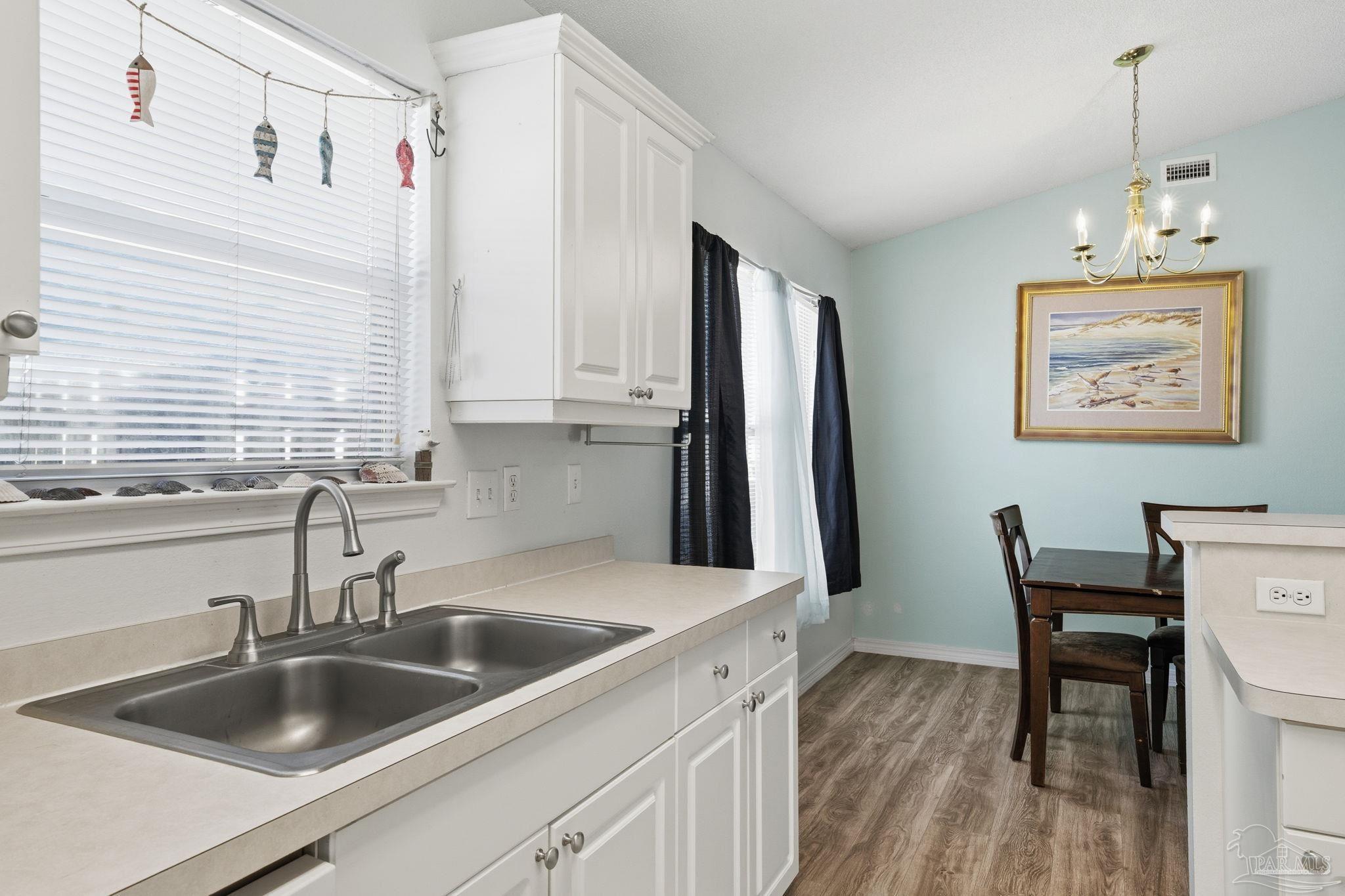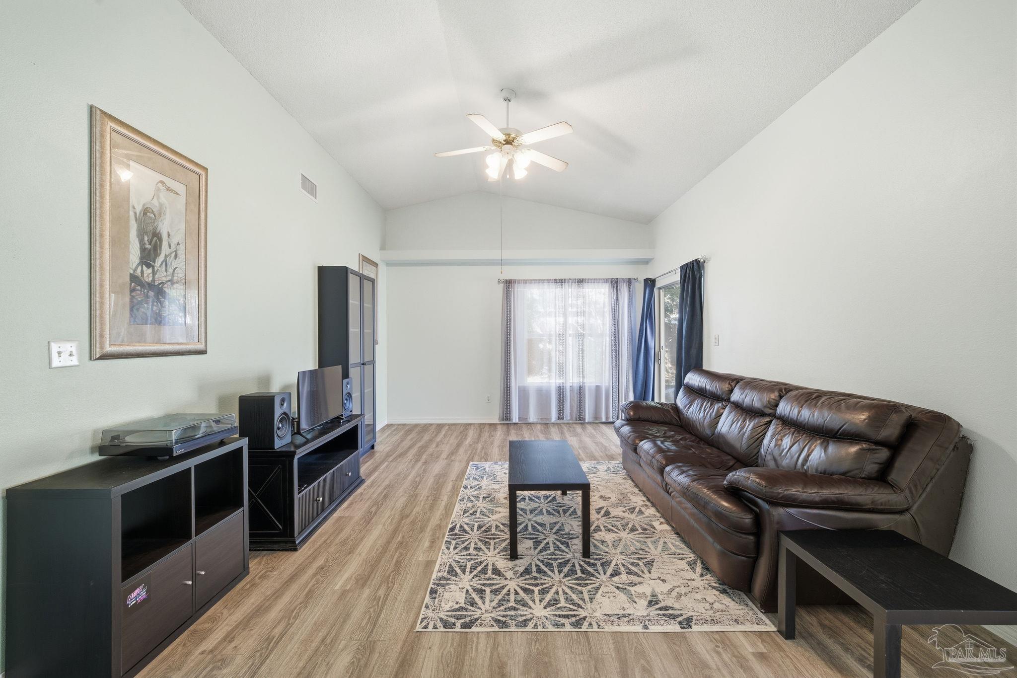 Welcome to easy, coastal-inspired living in The Cottages at Emerald Shores! This charming 3-bedroom, 2-bath patio home offers a smart split floor plan and an open, airy feel with vaulted ceilings and vinyl plank flooring throughout, stylish, durable, and low-maintenance. The spacious family room flows seamlessly into the open living area, making it perfect for everyday living or entertaining. The primary suite is generously sized and thoughtfully designed for comfort and privacy, while two additional bedrooms offer flexibility for guests, a home office, or both. Step outside to enjoy the covered porch and fenced backyard, ideal for relaxing evenings, pets, or weekend get-togethers. Just minutes from the NAS Back Gate and Aviation Museum, with Perdido Kids Park within walking distance and beaches, shopping, and dining only a short drive away. Residents of Emerald Shores also enjoy access to a neighborhood park featuring basketball courts, picnic areas, and nature trails—because outdoor fun should always be close to home. A fantastic layout, great amenities, and a location that truly delivers—this one checks all the boxes