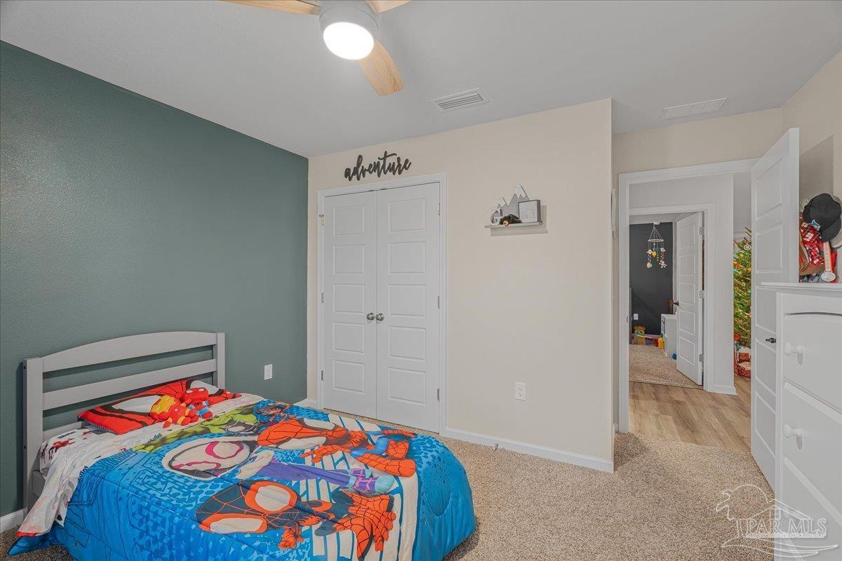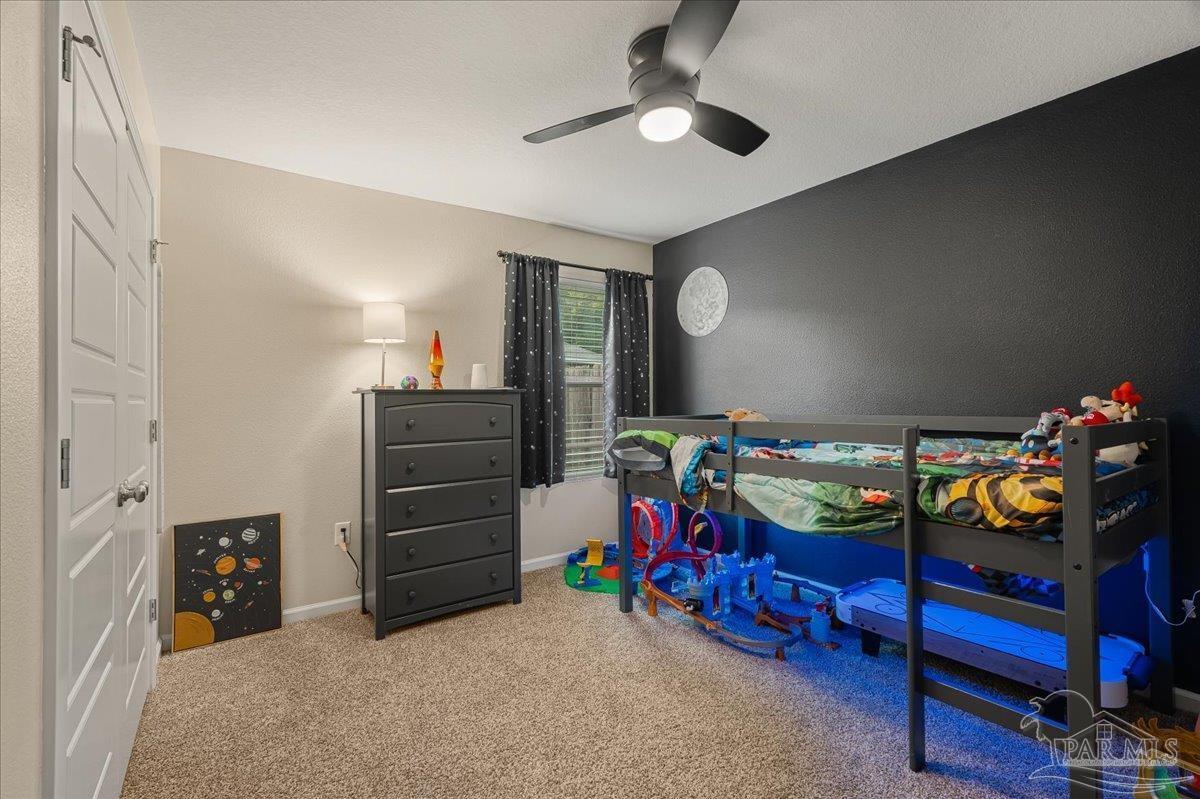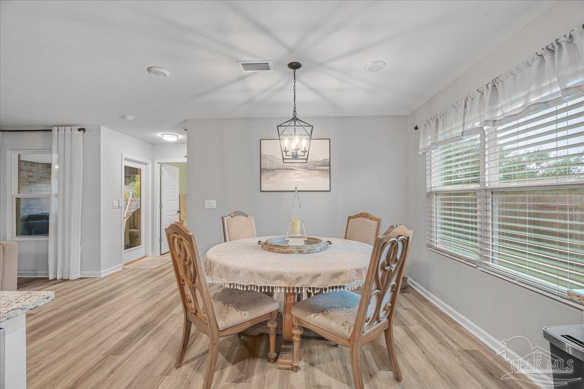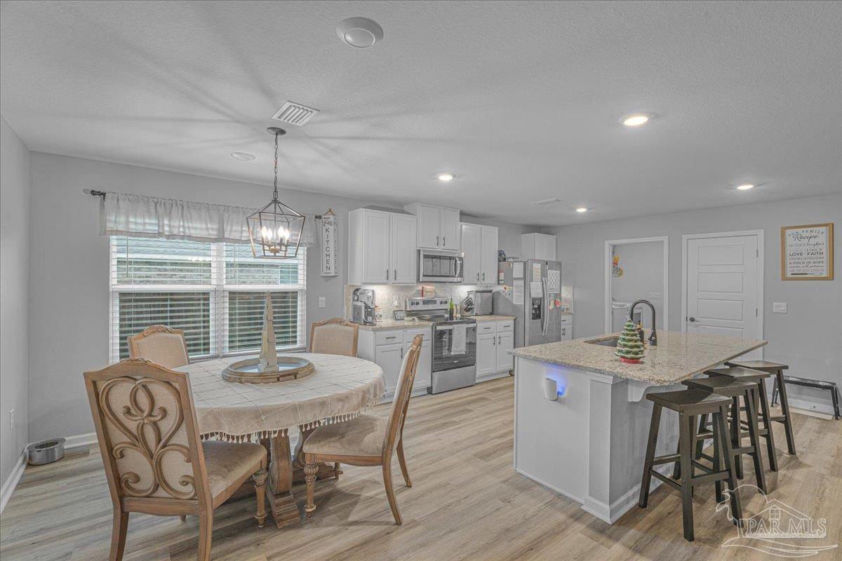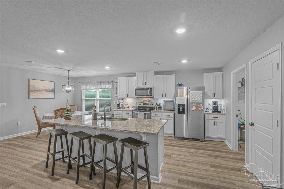 Welcome to modern comfort and space in Mills Lake Estates! Built in 2023, this beautifully designed **5-bedroom, 3-bathroom** home offers 2,533 square feet of thoughtfully planned living space—perfect for growing households, hosting guests, or simply spreading out and enjoying everyday life. Step inside to find durable LVP flooring throughout the main living areas, with cozy carpeted bedrooms for added comfort. The heart of the home is the open-concept kitchen, featuring a large island with bar seating, granite countertops**, a stainless steel undermount sink, and a convenient breakfast nook—ideal for casual mornings or entertaining friends and family. The spacious living room is a true showstopper, offering ample room for a large sectional and everyday gatherings. A custom built-in entertainment center with shelving and a sitting bench adds both charm and functionality, while oversized windows flood the space with natural light and provide peaceful views of the **fenced backyard**—perfect for kids, pets, or outdoor enjoyment. Located in the desirable Mills Lake Estates subdivision, this home offers unbeatable convenience with quick access to the interstate, Navy Federal Credit Union, Pensacola Beach and the shopping, dining, and entertainment options of the Beulah area in Pensacola, Florida. Modern, spacious, and ideally located—this is a home you truly need to see in person. Schedule your private showing today and experience all it has to offer!