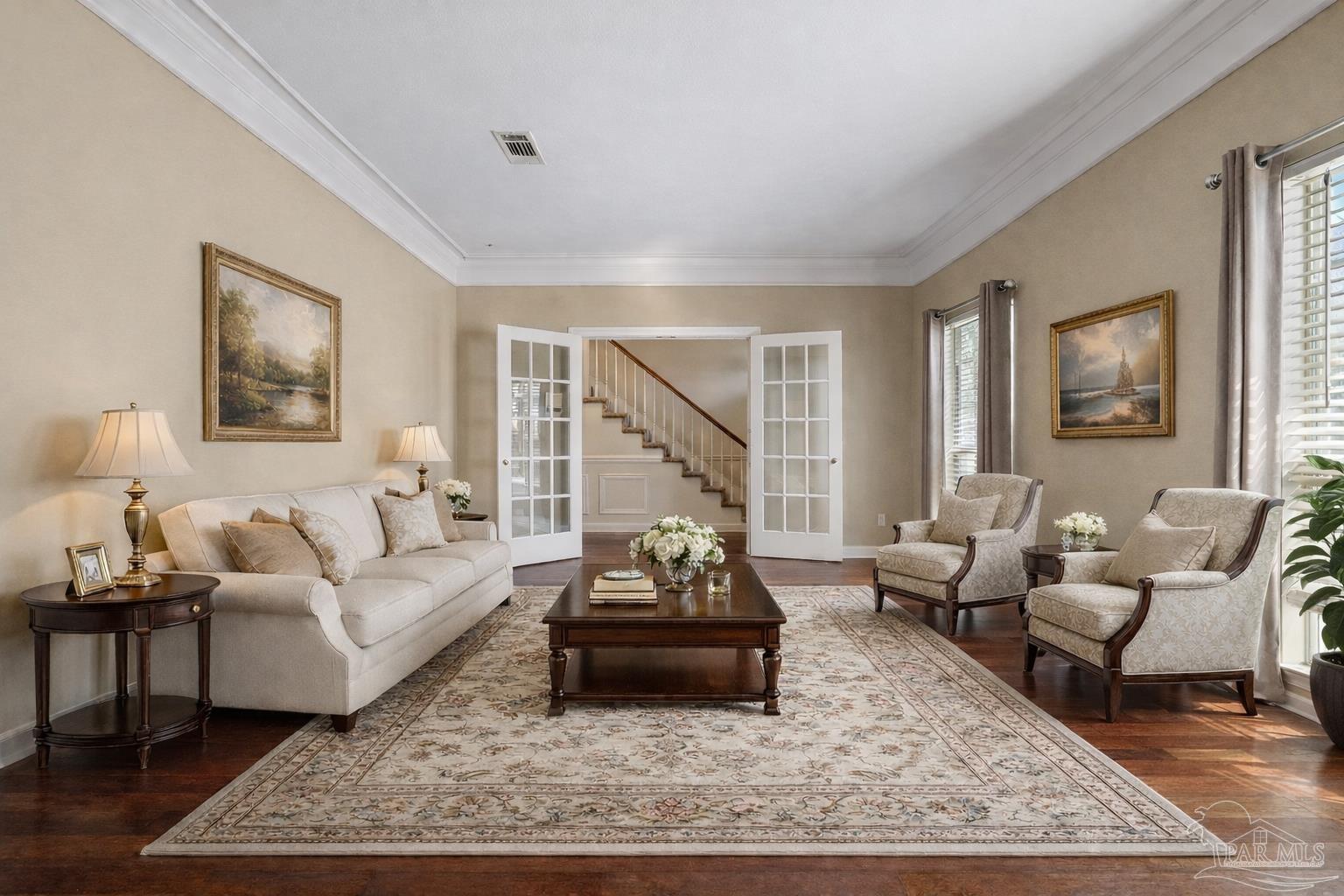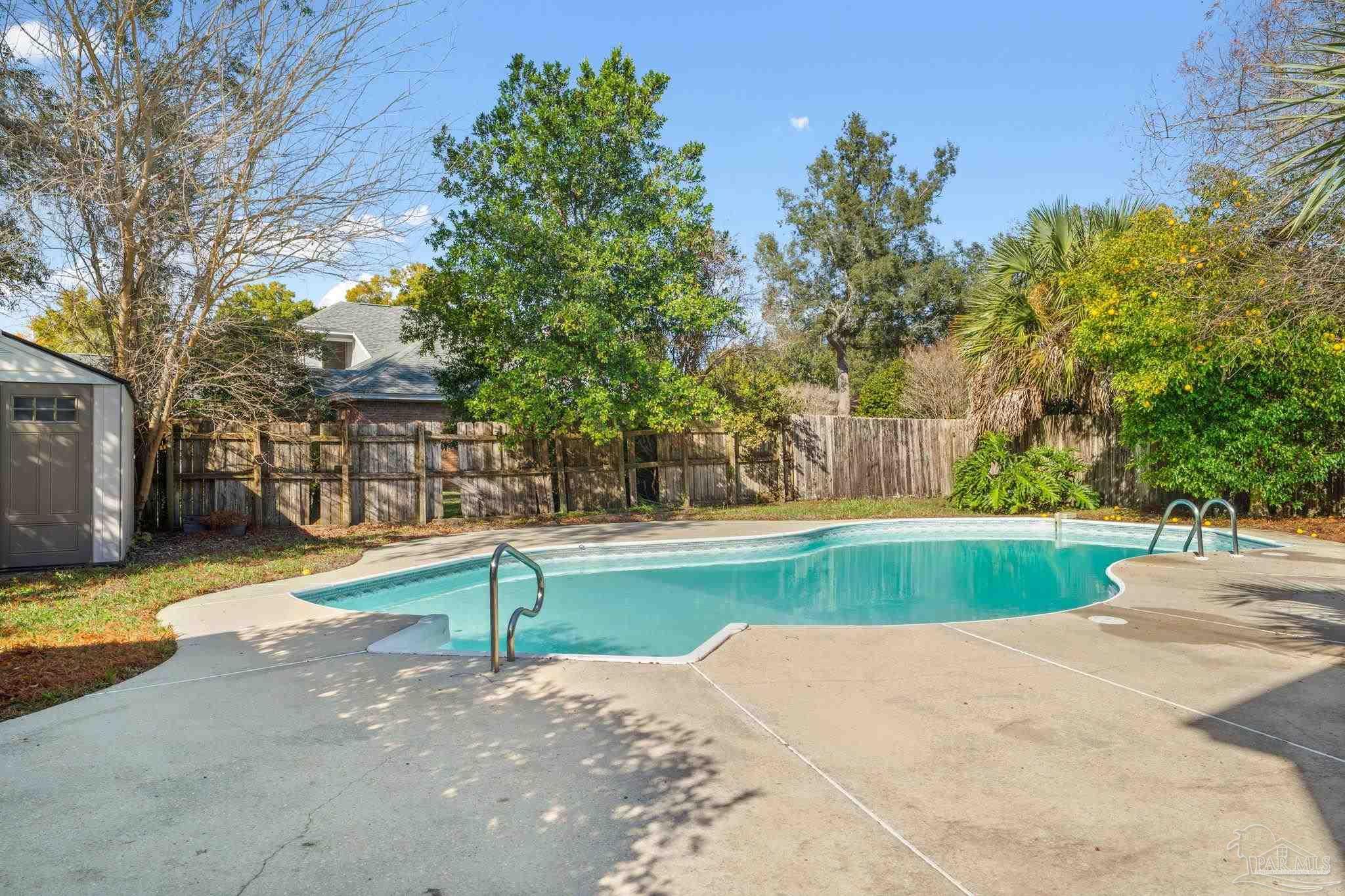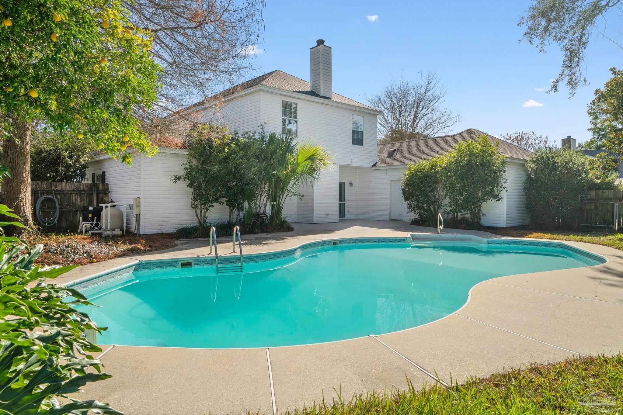 Welcome to 6221 Heart Pine Dr., Pensacola, FL, a beautiful two-story home tucked away on a quiet cul-de-sac in the desirable Ironwood subdivision—perfectly located near the heart of Pensacola. Inside, this home showcases rich wood trim, soaring 9-foot ceilings on the main level, and an abundance of natural light that creates an inviting, open feel throughout. The thoughtfully designed split floor plan offers a private primary suite on the first floor, ideal for both everyday comfort and hosting family or guests. The luxurious primary bathroom features a deep soaking tub, providing the perfect space to relax and recharge at the end of the day. The kitchen is well-equipped for both daily living and entertaining, featuring stainless steel appliances, a double oven, and generous counter space ready for holiday gatherings and memorable meals. Spacious bedrooms throughout the home offer comfort and flexibility for a variety of lifestyles. Situated on a large corner lot, the backyard is made for summer enjoyment. Entertain with ease, relax with friends and family, or watch the kids splash and play in the large in-ground pool, creating your own private outdoor oasis. A side-entry garage with double-gate access leads into the fully fenced backyard, adding both convenience and functionality. Ideally located close to the airport, shopping, dining, and entertainment, and just a short drive to Pensacola’s world-famous white sand beaches, this home offers the perfect blend of tranquility and accessibility. Don’t miss the opportunity to make this exceptional property your next place to call home.
