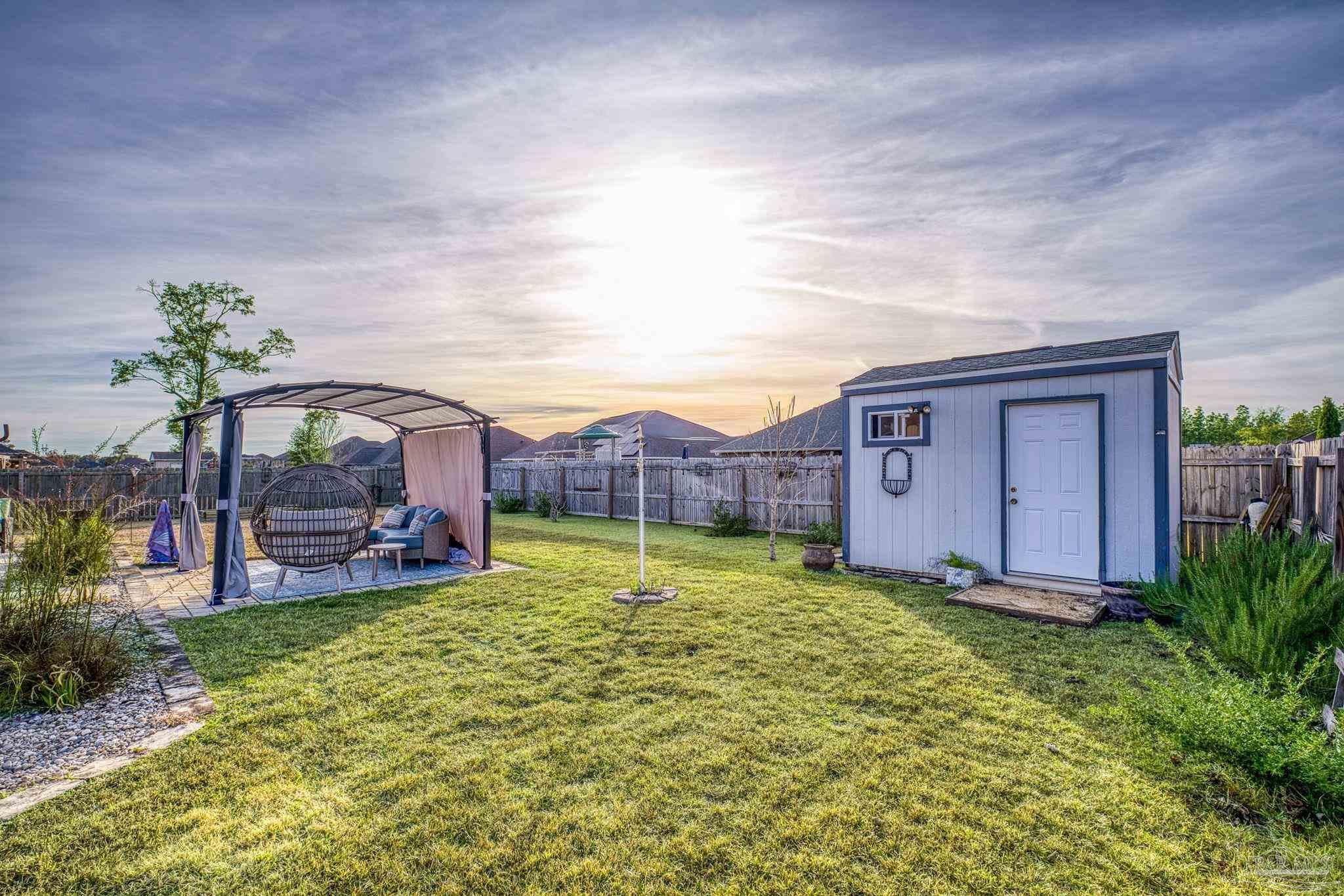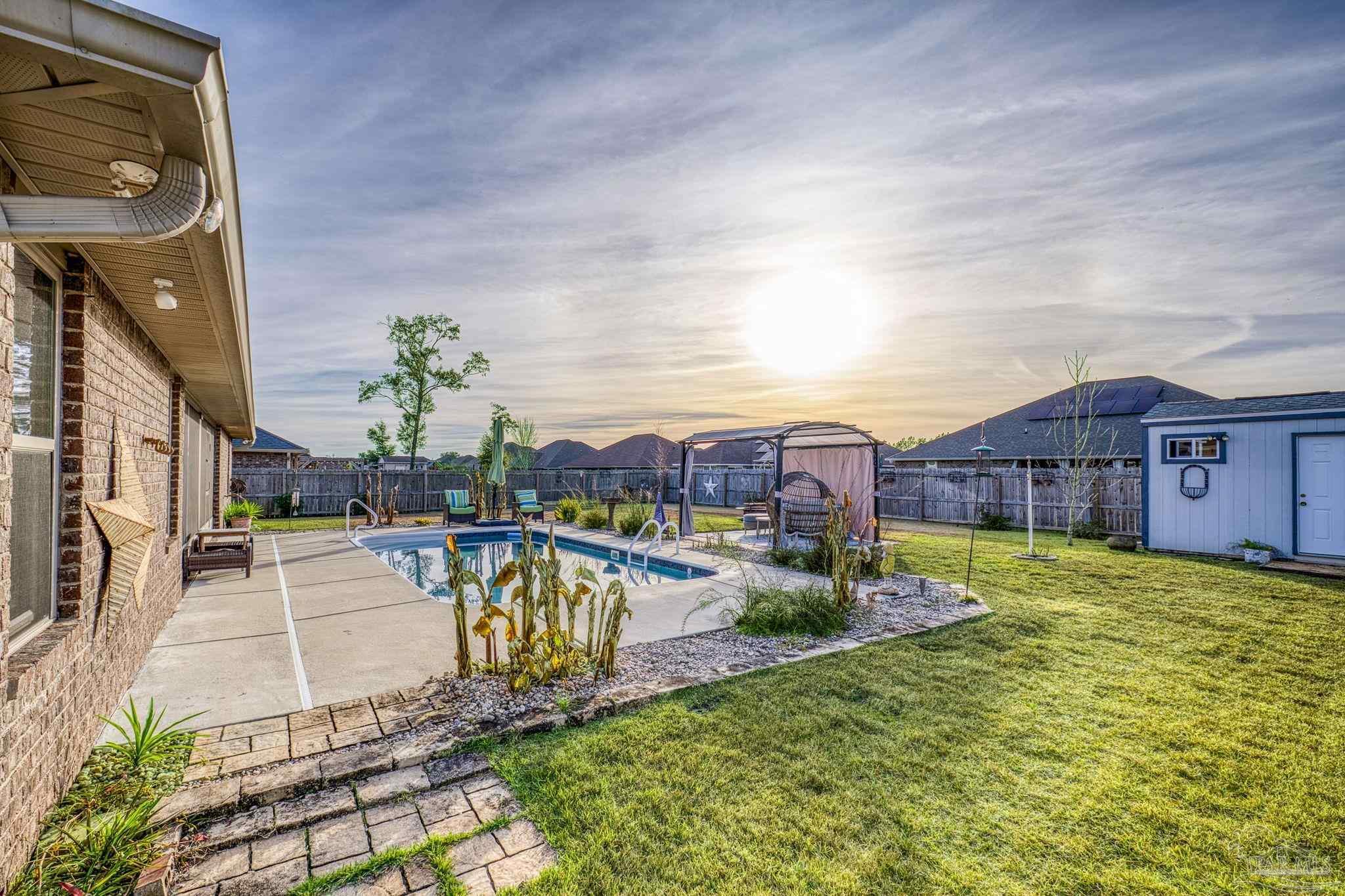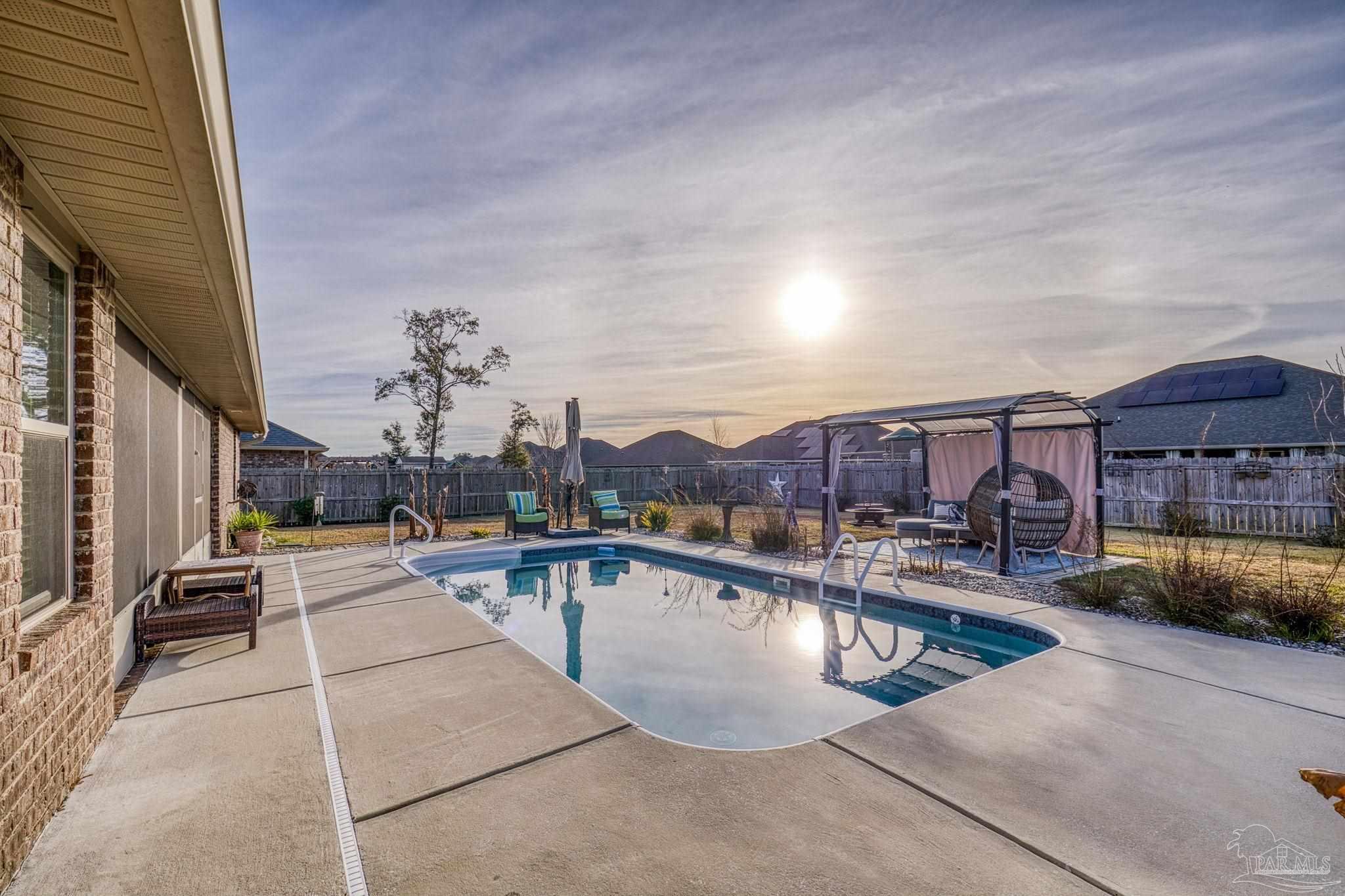 Located in the highly desirable Holley Cliff II neighborhood, this beautifully constructed brick home offers over 2,500 square feet of well-designed living space on a generous .27-acre lot. Built just five years ago, the home showcases upgraded cabinetry and granite countertops throughout, along with a formal living room and a separate dining room—perfect for both entertaining and everyday living. The thoughtfully designed layout includes four spacious bedrooms and three full bathrooms, anchored by an oversized primary suite that serves as a true private retreat. Step outside to a fully fenced backyard with dual gated entrances, enhanced by copper gutters with a cistern drainage system and decorative rain chains—both functional and visually striking. Outdoor living shines here with extended front porches on both sides of the home, an enclosed screened back porch, and an in-ground vinyl pool, creating the ideal setup for relaxing or hosting guests. Additional features include a site-built shed (3 years old), driveway extension, extra attic insulation, and a Vivint security system with cameras, offering efficiency, convenience, and peace of mind. A thoughtfully upgraded home with standout indoor and outdoor spaces—this one truly has more to appreciate.