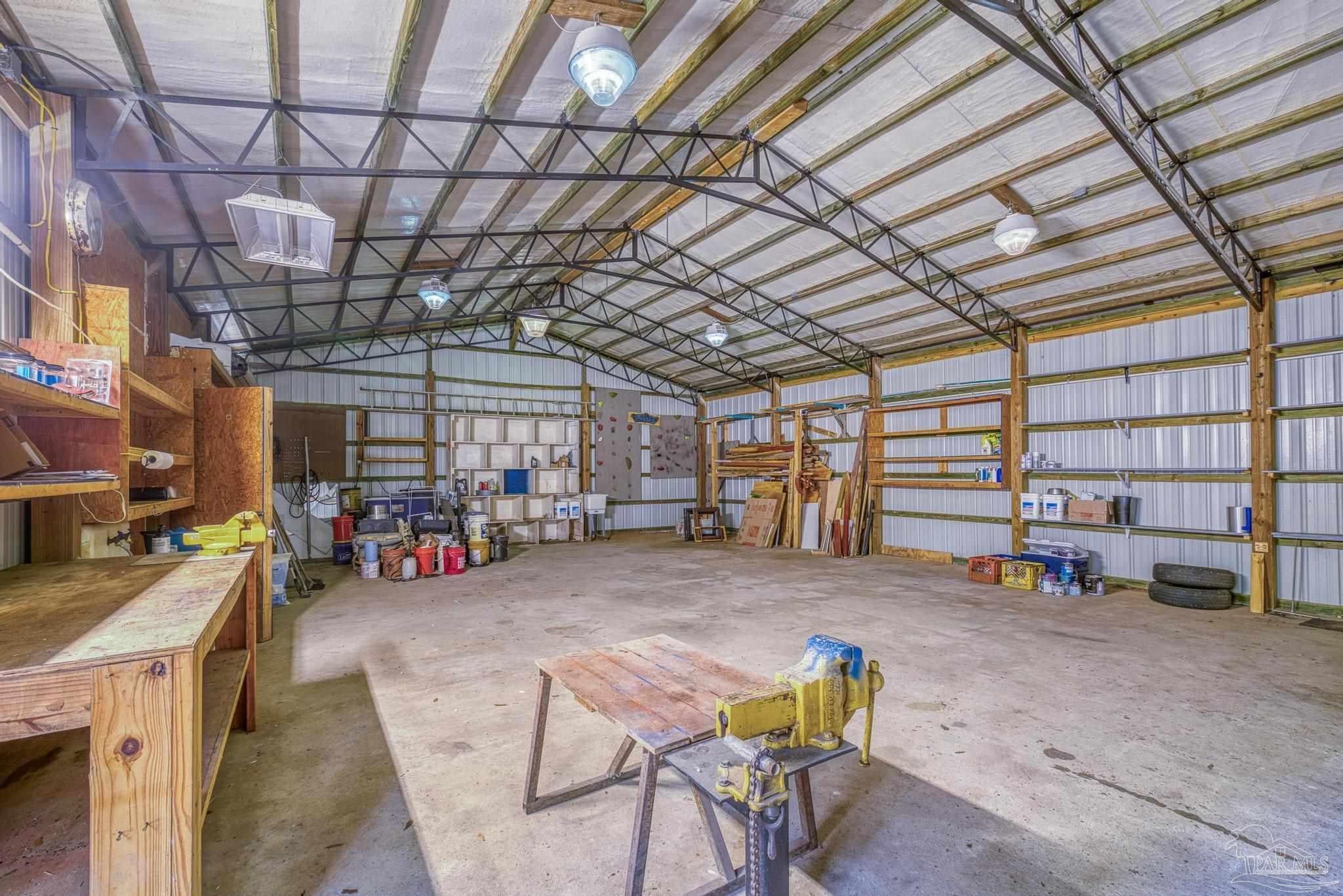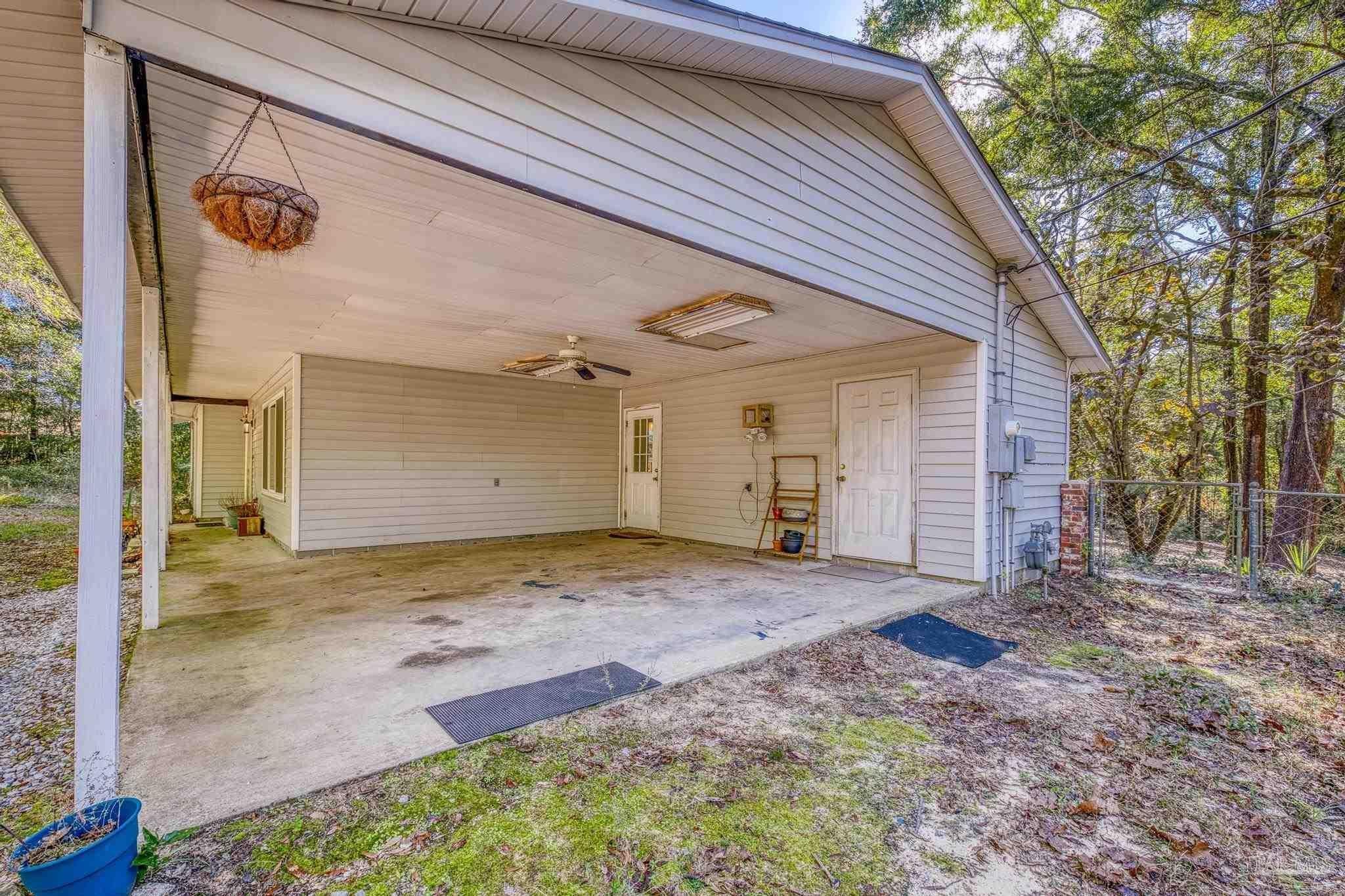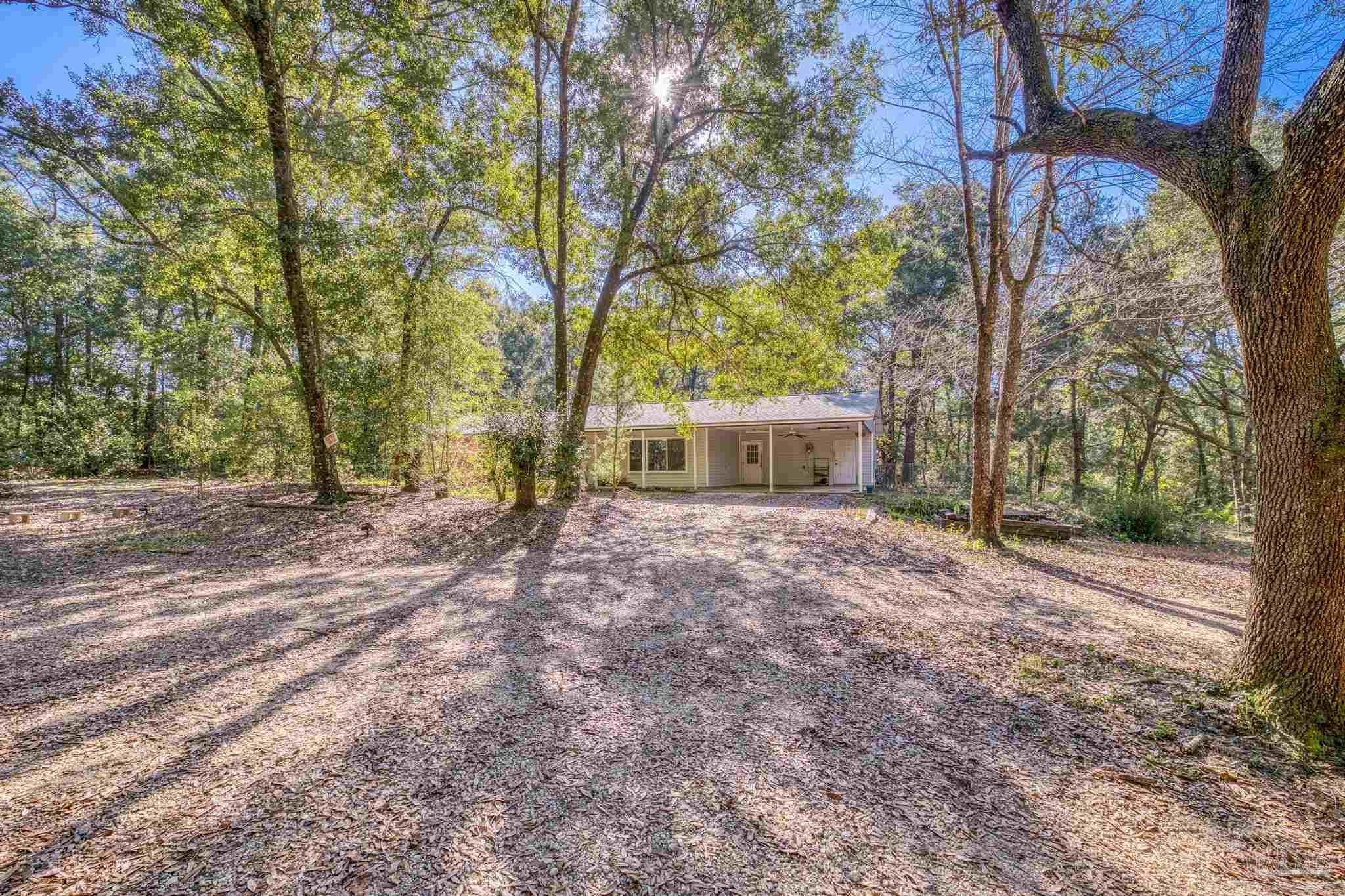 Looking for a 3-bedroom home in Pensacola with land, upgrades, and no HOA near UWF? This 3-bed home in Pensacola offers 1,257 square feet on 1.44 acres, metal framing construction, hurricane windows, updated systems, and a massive powered workshop, all priced at $285,000 and tucked away from major road noise. Welcome to 9190 Brunson Road, a well built single-family home designed for durability and flexibility. Constructed with metal framing and trusses, this 1995 home features major improvements including a new roof, HVAC, and water heater in 2021, along with brand new hurricane windows. The updated kitchen includes new flooring, cabinets, butcher block countertops, sink, vent hood, light fixtures, and French doors leading outside. The primary bathroom has been refreshed with new flooring, lighting, and vanity, and the primary bedroom opens to a private back patio overlooking the spacious backyard. The property sits on 1.44 acres with no HOA and includes a private well with a whole home filtration system installed in 2022. A covered carport offers parking for two vehicles. The impressive 30 ft x 40 ft workshop features insulated 14-foot peak ceilings, multiple roll-up doors, electricity, compressor lines, and Hubbell lighting, making it ideal for storage, projects, or business use. Located near the rapidly growing University of West Florida and tucked away from the noise of 9 Mile Road and University Parkway, this property offers space, privacy, and long-term value.