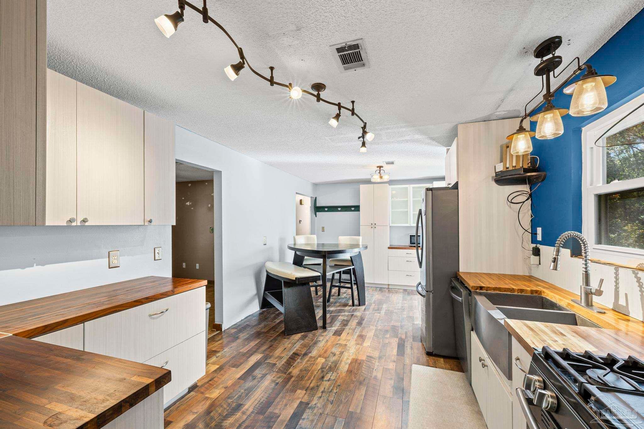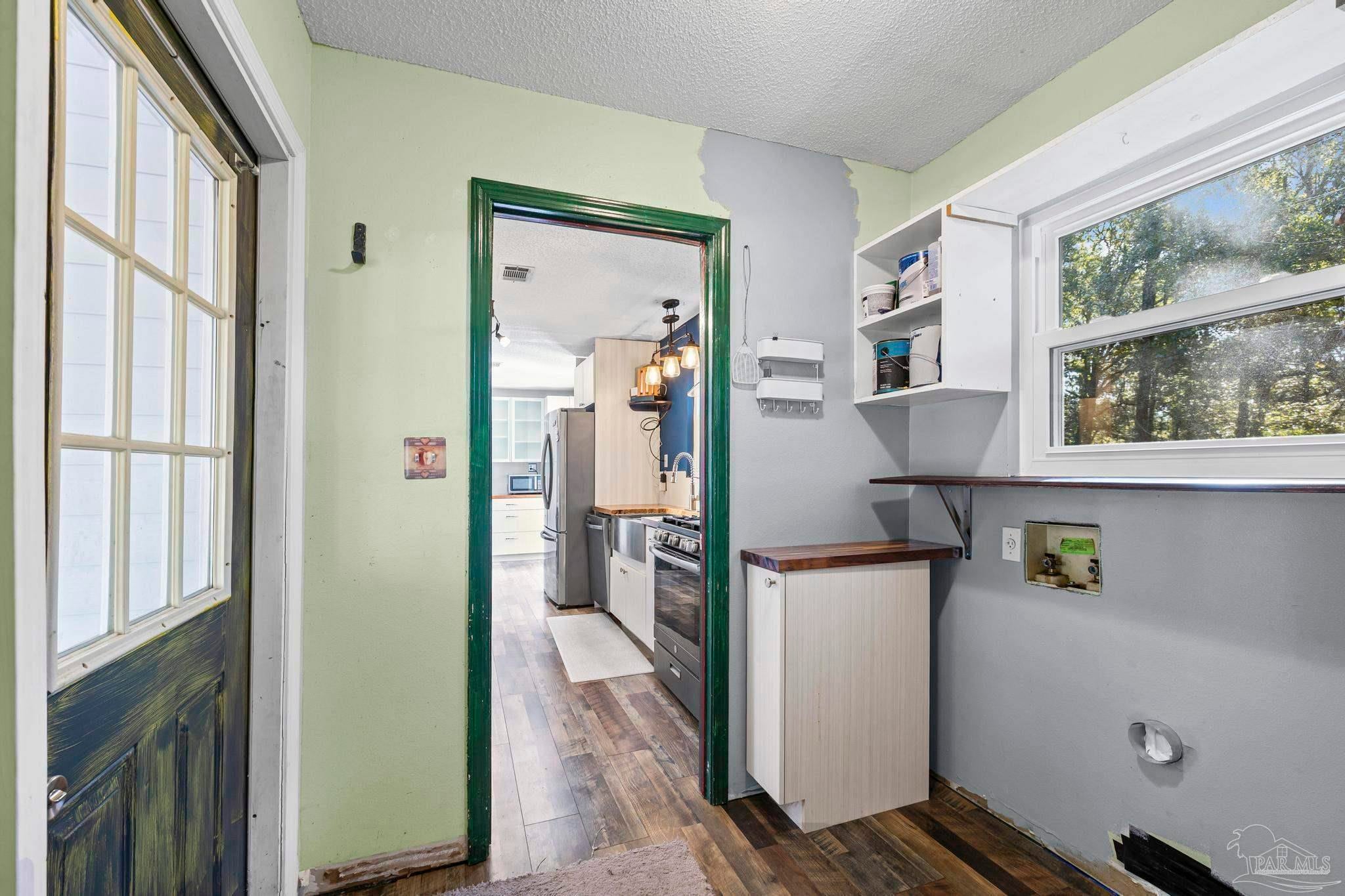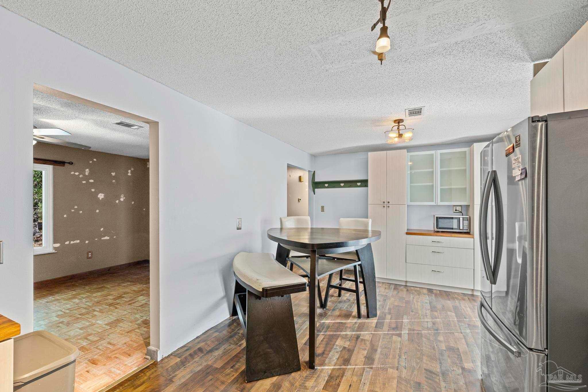 Looking for a 3-bedroom home in Pensacola with land, upgrades, and no HOA near UWF? This 3-bed home in Pensacola offers 1,257 square feet on 1.44 acres, metal framing construction, hurricane windows, updated systems, and a massive powered workshop, all priced at $285,000 and tucked away from major road noise. Welcome to 9190 Brunson Road, a well built single-family home designed for durability and flexibility. Constructed with metal framing and trusses, this 1995 home features major improvements including a new roof, HVAC, and water heater in 2021, along with brand new hurricane windows. The updated kitchen includes new flooring, cabinets, butcher block countertops, sink, vent hood, light fixtures, and French doors leading outside. The primary bathroom has been refreshed with new flooring, lighting, and vanity, and the primary bedroom opens to a private back patio overlooking the spacious backyard. The property sits on 1.44 acres with no HOA and includes a private well with a whole home filtration system installed in 2022. A covered carport offers parking for two vehicles. The impressive 30 ft x 40 ft workshop features insulated 14-foot peak ceilings, multiple roll-up doors, electricity, compressor lines, and Hubbell lighting, making it ideal for storage, projects, or business use. Located near the rapidly growing University of West Florida and tucked away from the noise of 9 Mile Road and University Parkway, this property offers space, privacy, and long-term value.