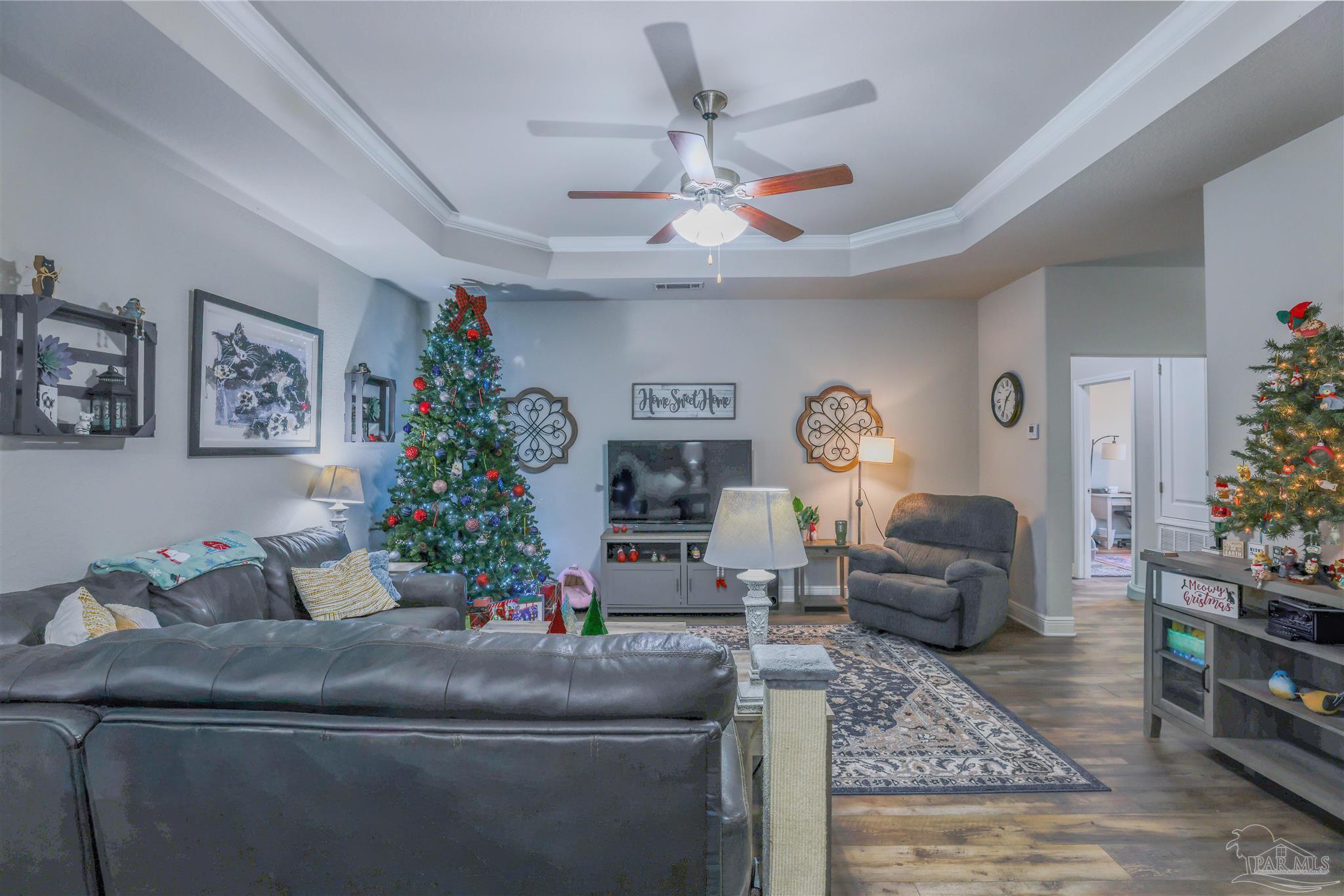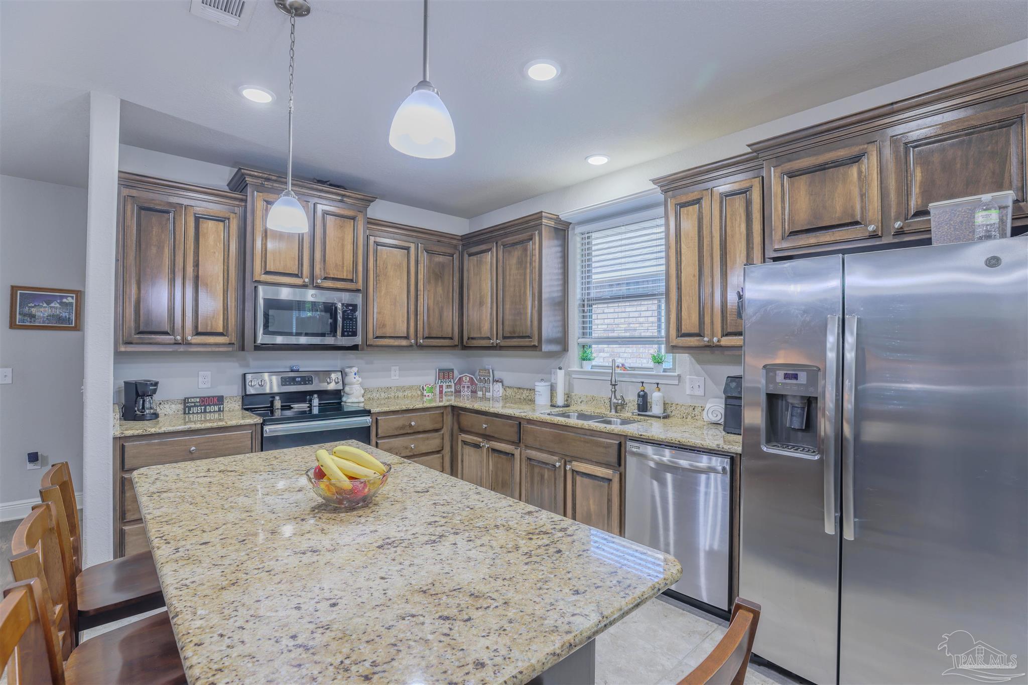 Here is your completely MOVE-IN READY home that has everything you have been looking for! As you enter the FOYER you instantly see the beautiful LVP FLOORING throughout! The right side of the home keeps the 2 additional BEDROOMS and the FULL BATHROOM tucked in a hallway for both ease of access and privacy. The FAMILY ROOM is spacious with both tall ceilings and the tray ceiling for that special touch! It is connected to the KITCHEN and provides plenty of room for entertaining with the GRANITE COUNTER TOP ISLAND. The stainless steel appliances give the space a luxury feel and invite you to come stir up some good vittles. Even the DINING AREA is open to the kitchen and adds plenty of seating for family and guests. The MASTER BEDROOM AND BATH are tucked off the back of the house for privacy and provides a nice view to the back yard. The MASTER BATHROOM has been improved with a very large WALK IN SHOWER and EXTRA CLOSET SPACE. The BACK PORCH is SCREENED for year around enjoyment to keep you both shaded and free from the mosquitoes and flying bugs. It has extra durable screen that is very low maintenance. The back yard is PRIVACY FENCED for your little ones and special critters. Behind the back fence is a GREEN BELT for the community and this gives you PRIVACY AND NATURE!! Schedule your showing quickly!