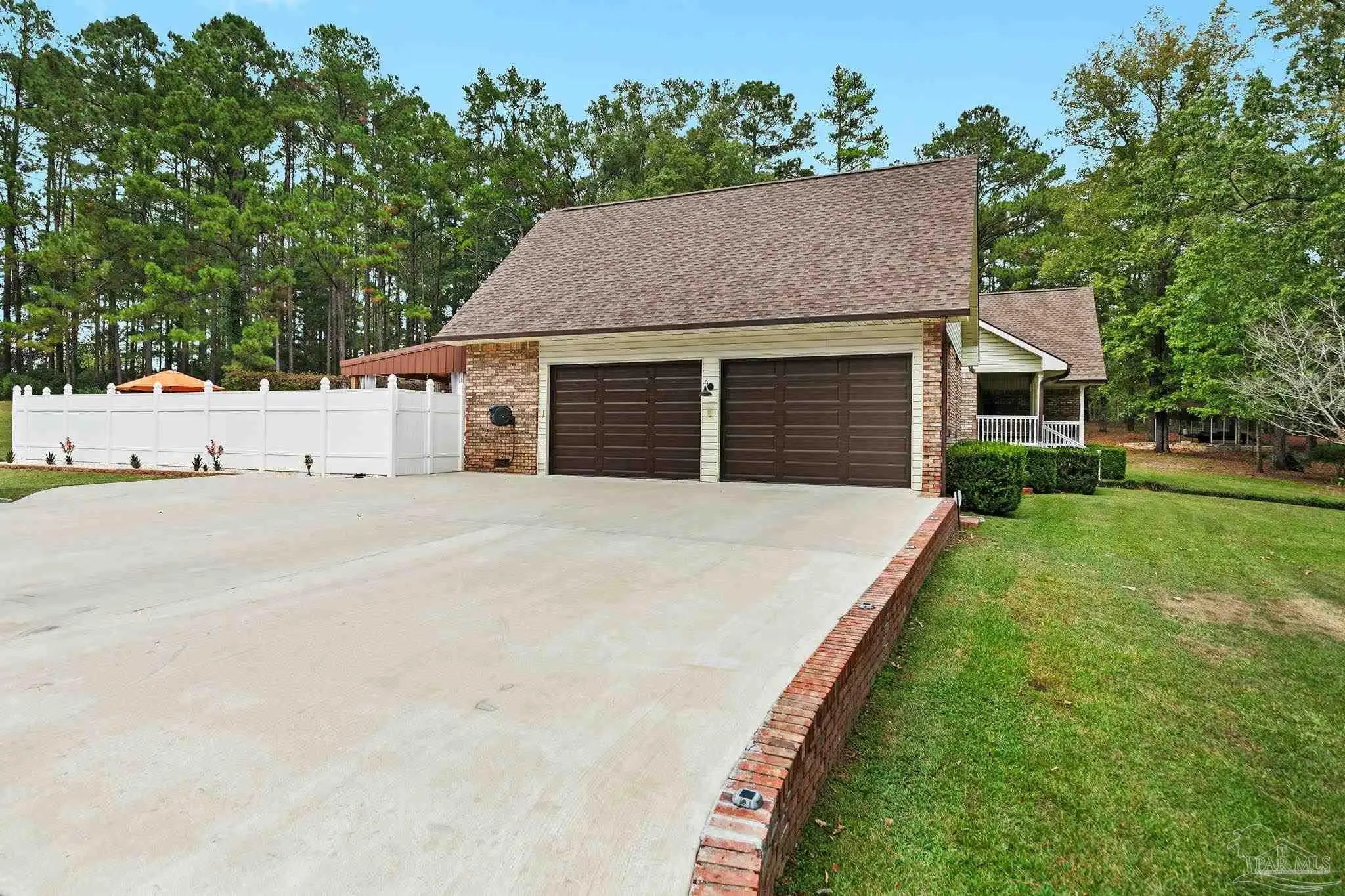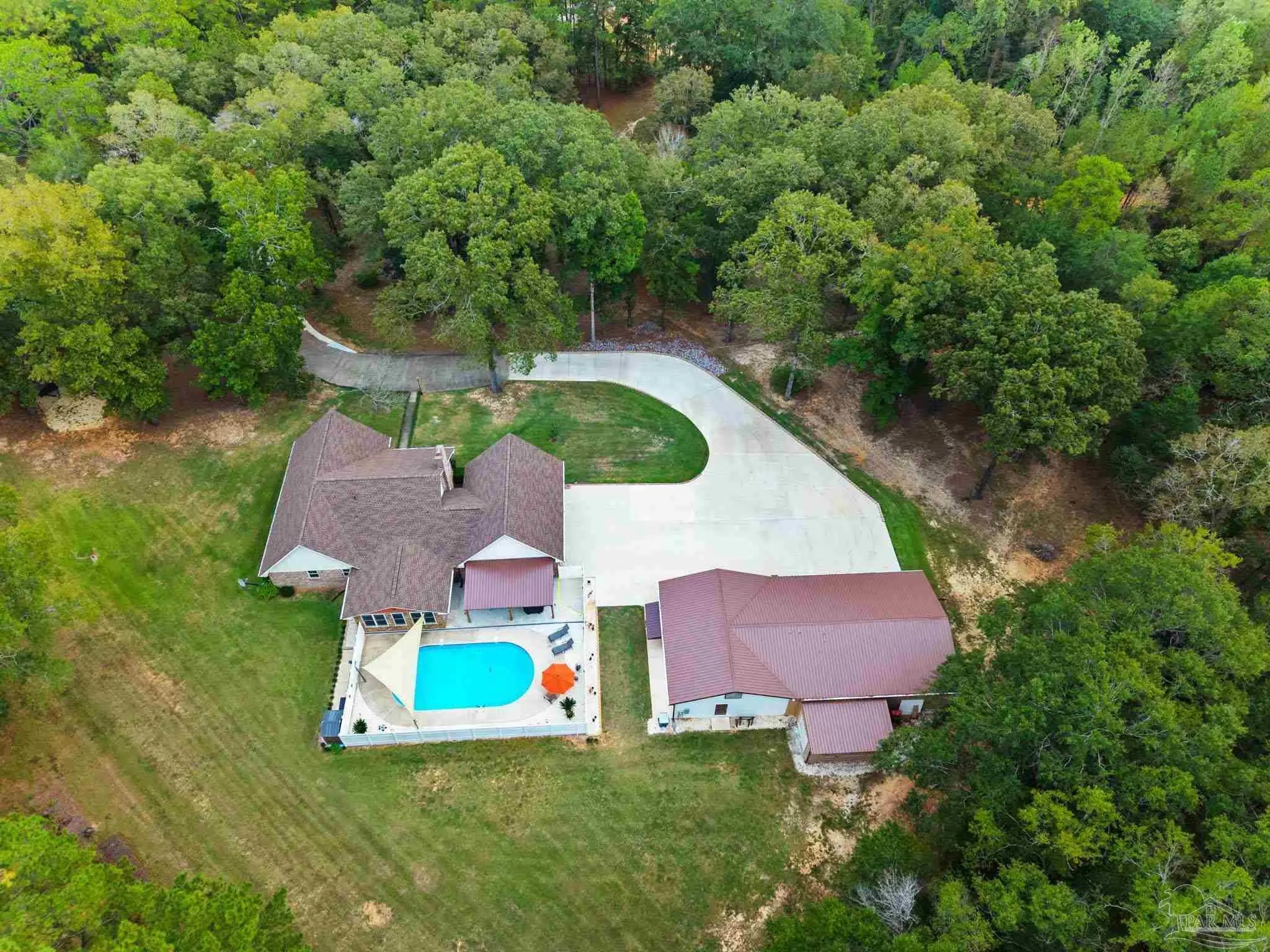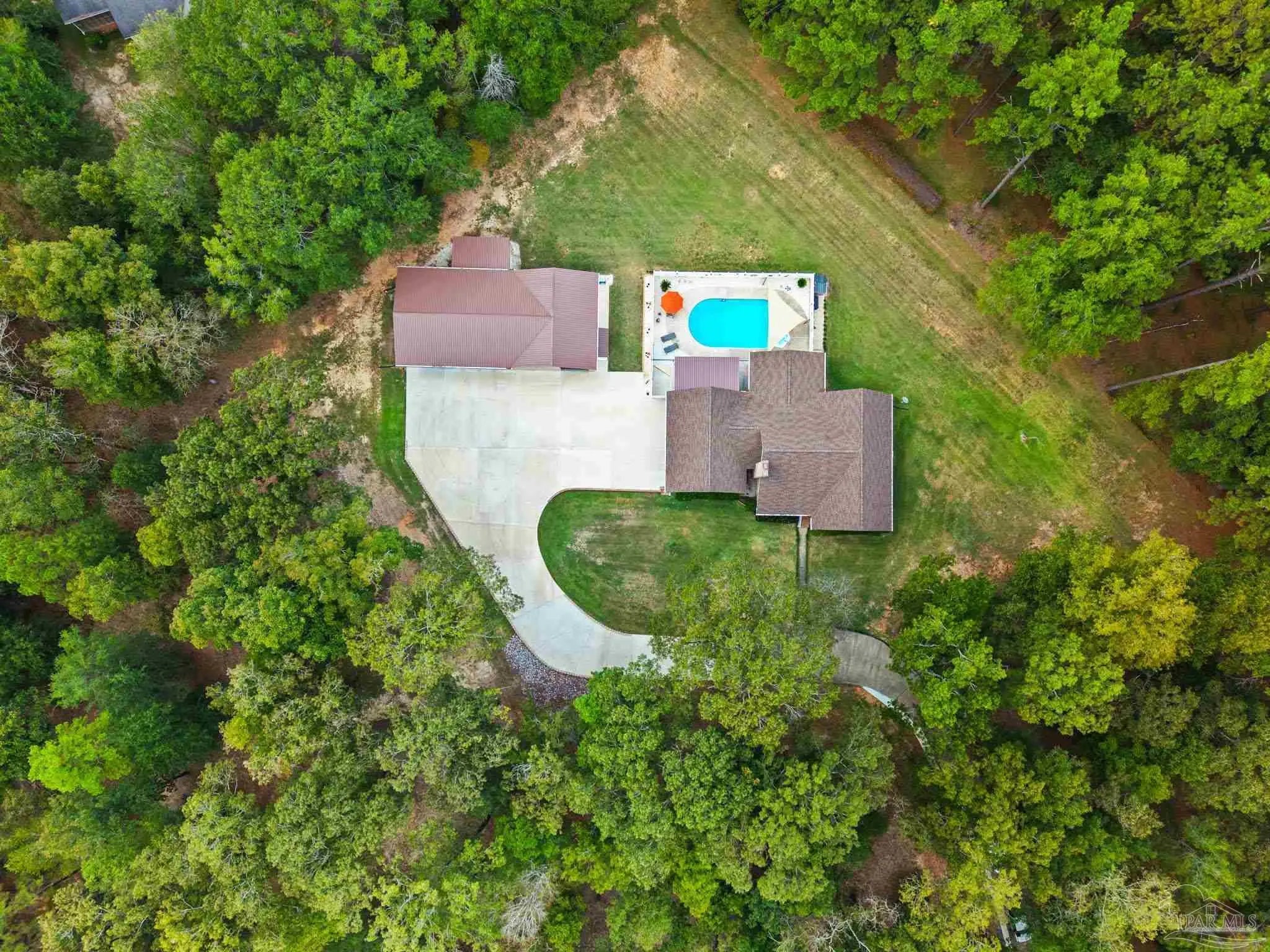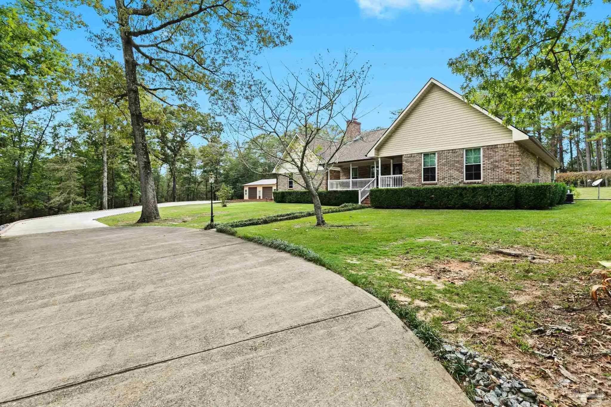 In Monroeville, where life moves a little slower and porches still hold conversations, there’s a home tucked quietly at the end of a treelined drive—private, peaceful, and beautifully kept. A classic brick exterior and 4± acres welcome you in, but it’s what’s behind the front door (and especially behind the house) that makes this one unforgettable. Inside, cathedral ceilings, wood beams, and a brick fireplace create a living room that feels warm the moment you step inside. The bright kitchen and dining area bring everyone together—granite counters, rollout cabinetry, an island with bar seating, and a layout built for everyday living and weekend hosting. Morning coffee in the sun room feels like a slow start to the day, sunlight filtering in with a reminder that life here is meant to be enjoyed. The primary suite offers comfort and a custom walk-in closet, while two additional bedrooms provide flexibility for family, office space, or guests. But step outside—and this property truly shines. A 10’ vinyl in-ground pool sits like the centerpiece of summer, surrounded by a fenced patio with stereo system, can lighting, and covered seating for long afternoons and late-night swims. A separate 300 sq ft covered entertainment space is built for cookouts, crawfish boils, and birthday parties that stretch well past sunset. And then there’s the shop—2,159 sq ft of immaculate purpose. Updated in 2024 with finished interiors, office space, epoxy floors, water, and 200-amp service, it’s the place for projects, storage, business vehicles, or every hobby you’ve ever dreamed of starting. Meticulous doesn’t begin to describe it. Homes like this—with land, updates, a private pool, and a shop of this caliber—rarely come along. When they do, they don’t last. Come see it for yourself.