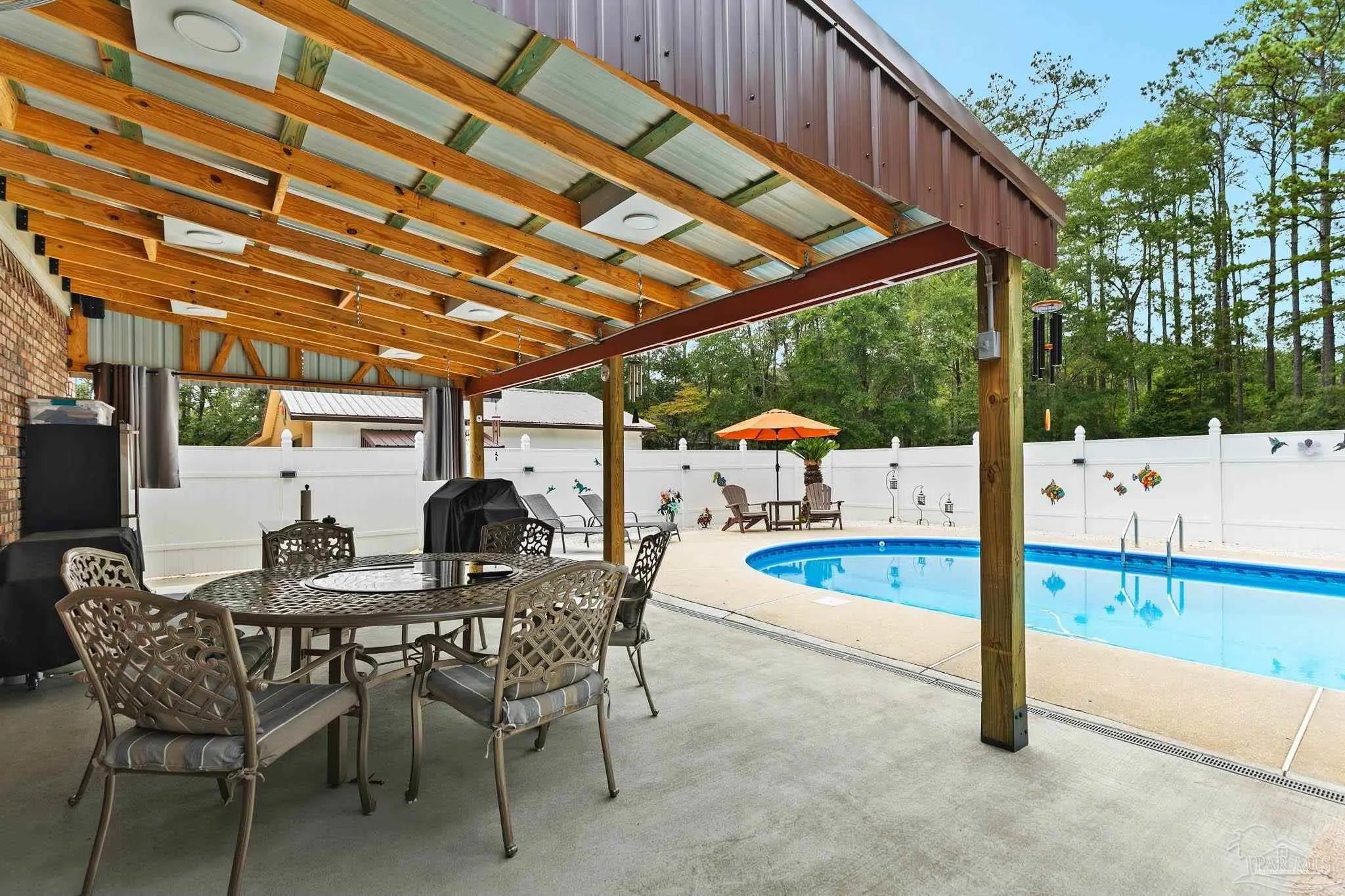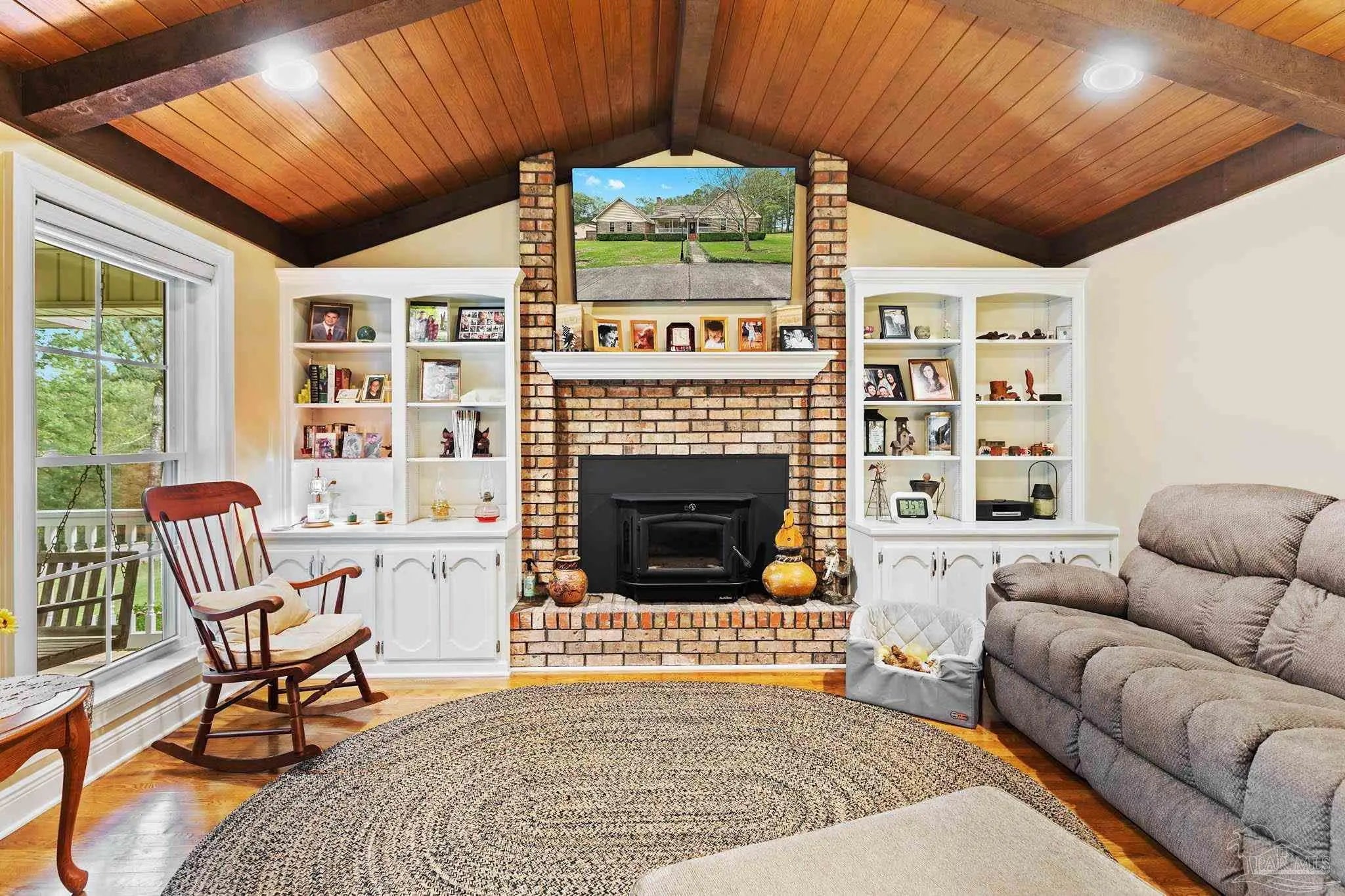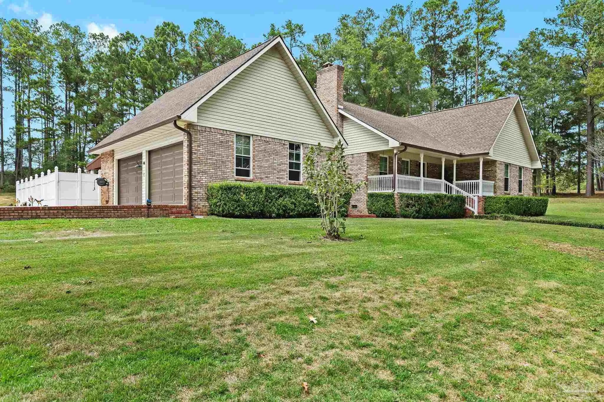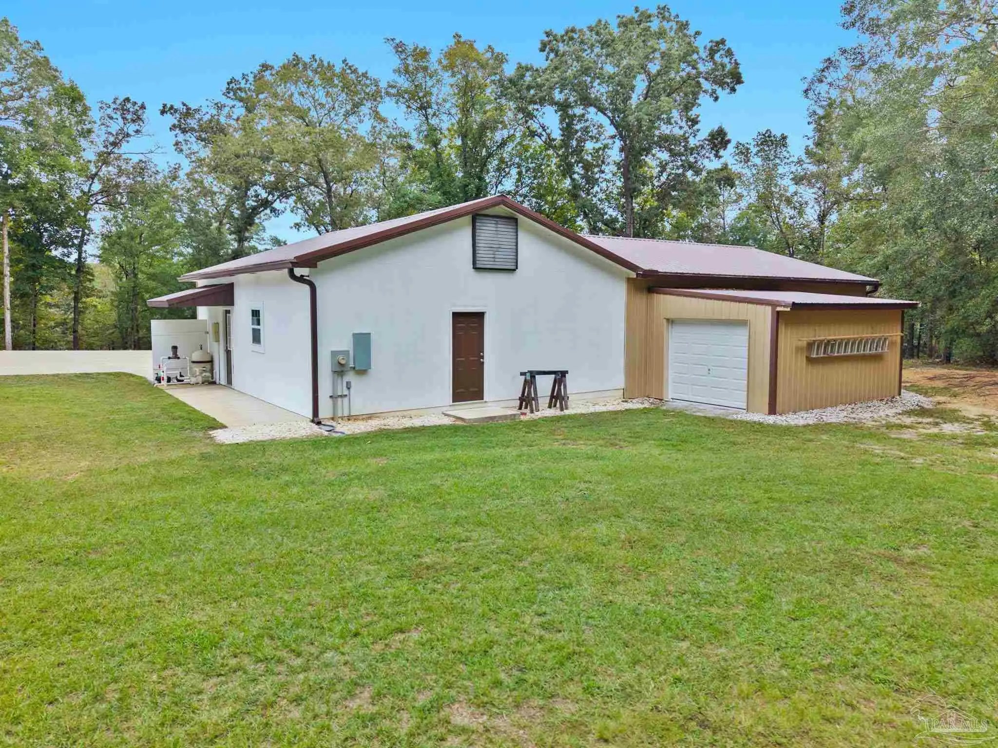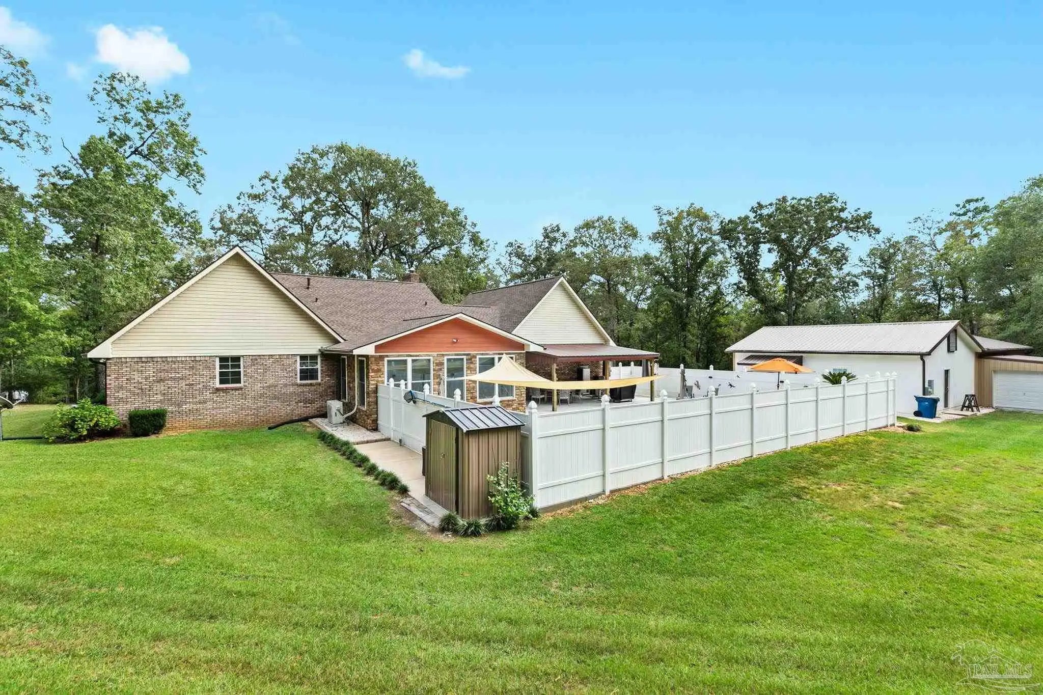 In Monroeville, where life moves a little slower and porches still hold conversations, there’s a home tucked quietly at the end of a treelined drive—private, peaceful, and beautifully kept. A classic brick exterior and 4± acres welcome you in, but it’s what’s behind the front door (and especially behind the house) that makes this one unforgettable. Inside, cathedral ceilings, wood beams, and a brick fireplace create a living room that feels warm the moment you step inside. The bright kitchen and dining area bring everyone together—granite counters, rollout cabinetry, an island with bar seating, and a layout built for everyday living and weekend hosting. Morning coffee in the sun room feels like a slow start to the day, sunlight filtering in with a reminder that life here is meant to be enjoyed. The primary suite offers comfort and a custom walk-in closet, while two additional bedrooms provide flexibility for family, office space, or guests. But step outside—and this property truly shines. A 10’ vinyl in-ground pool sits like the centerpiece of summer, surrounded by a fenced patio with stereo system, can lighting, and covered seating for long afternoons and late-night swims. A separate 300 sq ft covered entertainment space is built for cookouts, crawfish boils, and birthday parties that stretch well past sunset. And then there’s the shop—2,159 sq ft of immaculate purpose. Updated in 2024 with finished interiors, office space, epoxy floors, water, and 200-amp service, it’s the place for projects, storage, business vehicles, or every hobby you’ve ever dreamed of starting. Meticulous doesn’t begin to describe it. Homes like this—with land, updates, a private pool, and a shop of this caliber—rarely come along. When they do, they don’t last. Come see it for yourself.