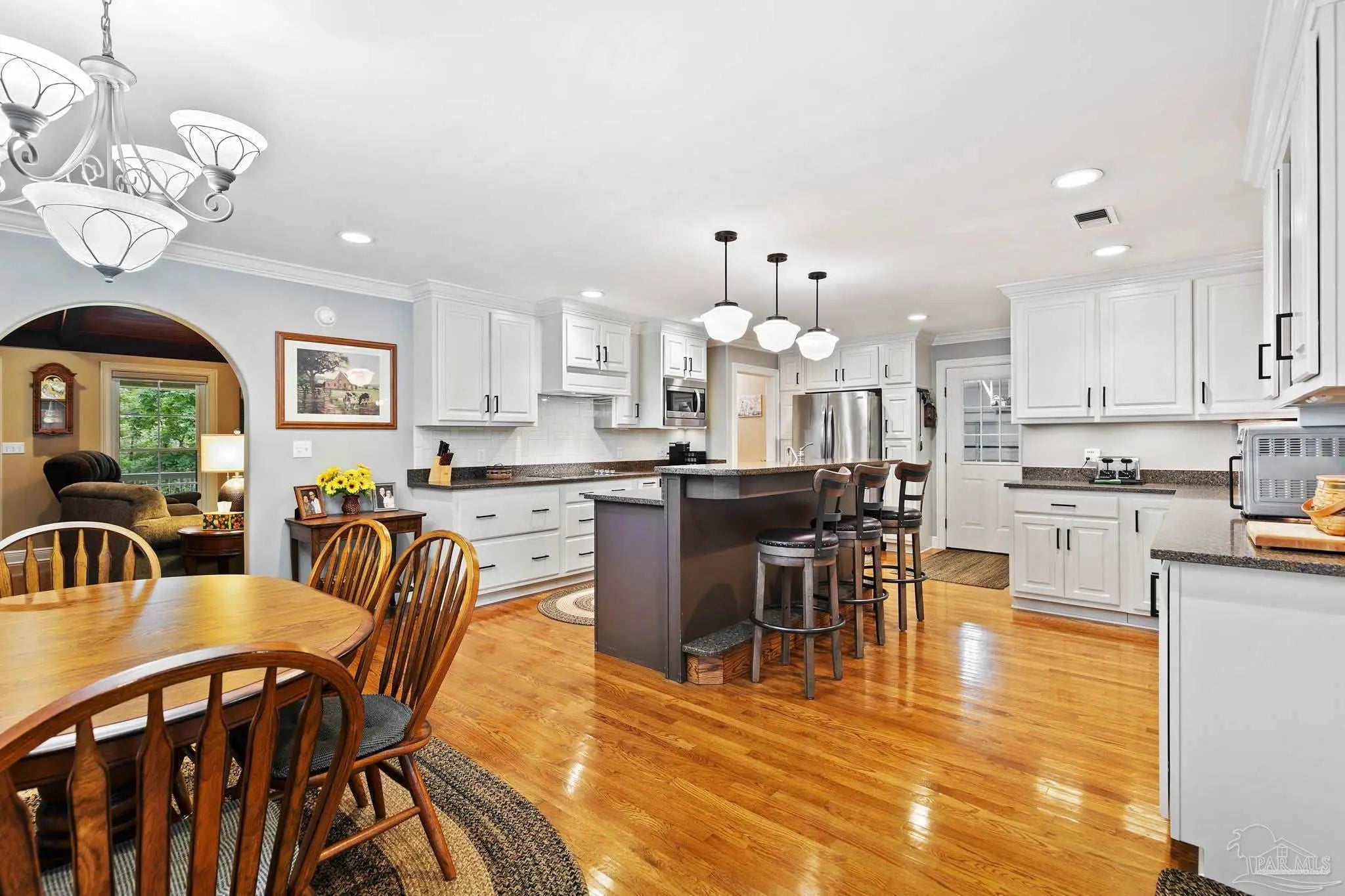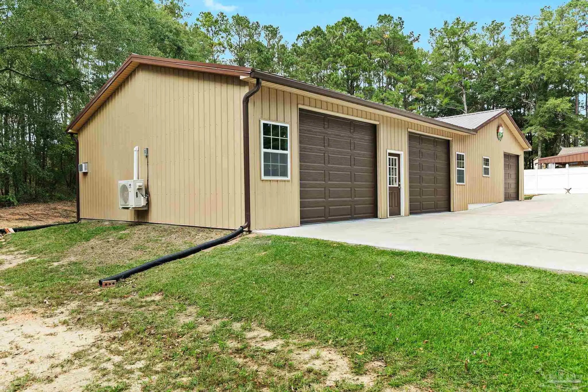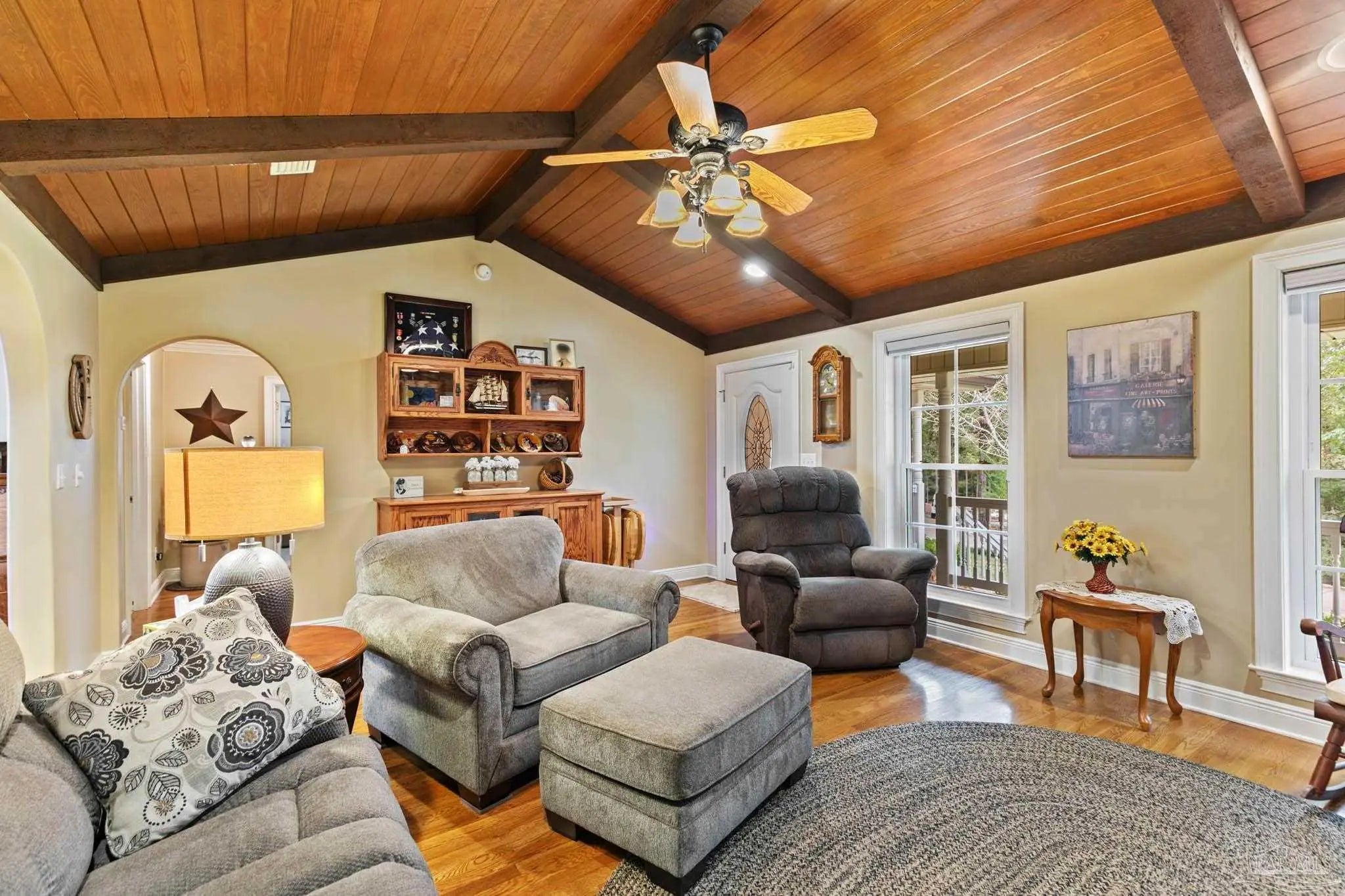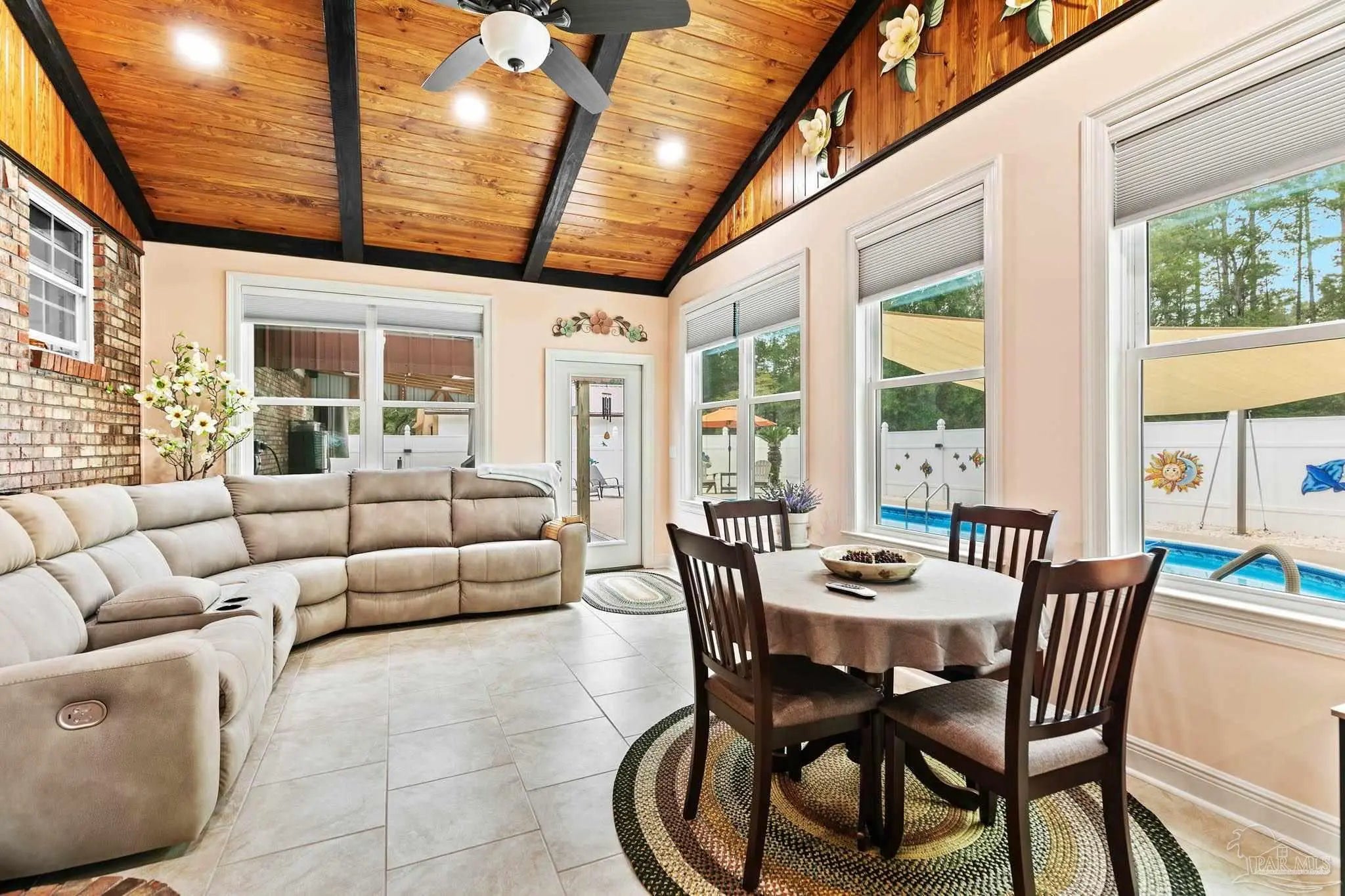 In Monroeville, where life moves a little slower and porches still hold conversations, there’s a home tucked quietly at the end of a treelined drive—private, peaceful, and beautifully kept. A classic brick exterior and 4± acres welcome you in, but it’s what’s behind the front door (and especially behind the house) that makes this one unforgettable. Inside, cathedral ceilings, wood beams, and a brick fireplace create a living room that feels warm the moment you step inside. The bright kitchen and dining area bring everyone together—granite counters, rollout cabinetry, an island with bar seating, and a layout built for everyday living and weekend hosting. Morning coffee in the sun room feels like a slow start to the day, sunlight filtering in with a reminder that life here is meant to be enjoyed. The primary suite offers comfort and a custom walk-in closet, while two additional bedrooms provide flexibility for family, office space, or guests. But step outside—and this property truly shines. A 10’ vinyl in-ground pool sits like the centerpiece of summer, surrounded by a fenced patio with stereo system, can lighting, and covered seating for long afternoons and late-night swims. A separate 300 sq ft covered entertainment space is built for cookouts, crawfish boils, and birthday parties that stretch well past sunset. And then there’s the shop—2,159 sq ft of immaculate purpose. Updated in 2024 with finished interiors, office space, epoxy floors, water, and 200-amp service, it’s the place for projects, storage, business vehicles, or every hobby you’ve ever dreamed of starting. Meticulous doesn’t begin to describe it. Homes like this—with land, updates, a private pool, and a shop of this caliber—rarely come along. When they do, they don’t last. Come see it for yourself.