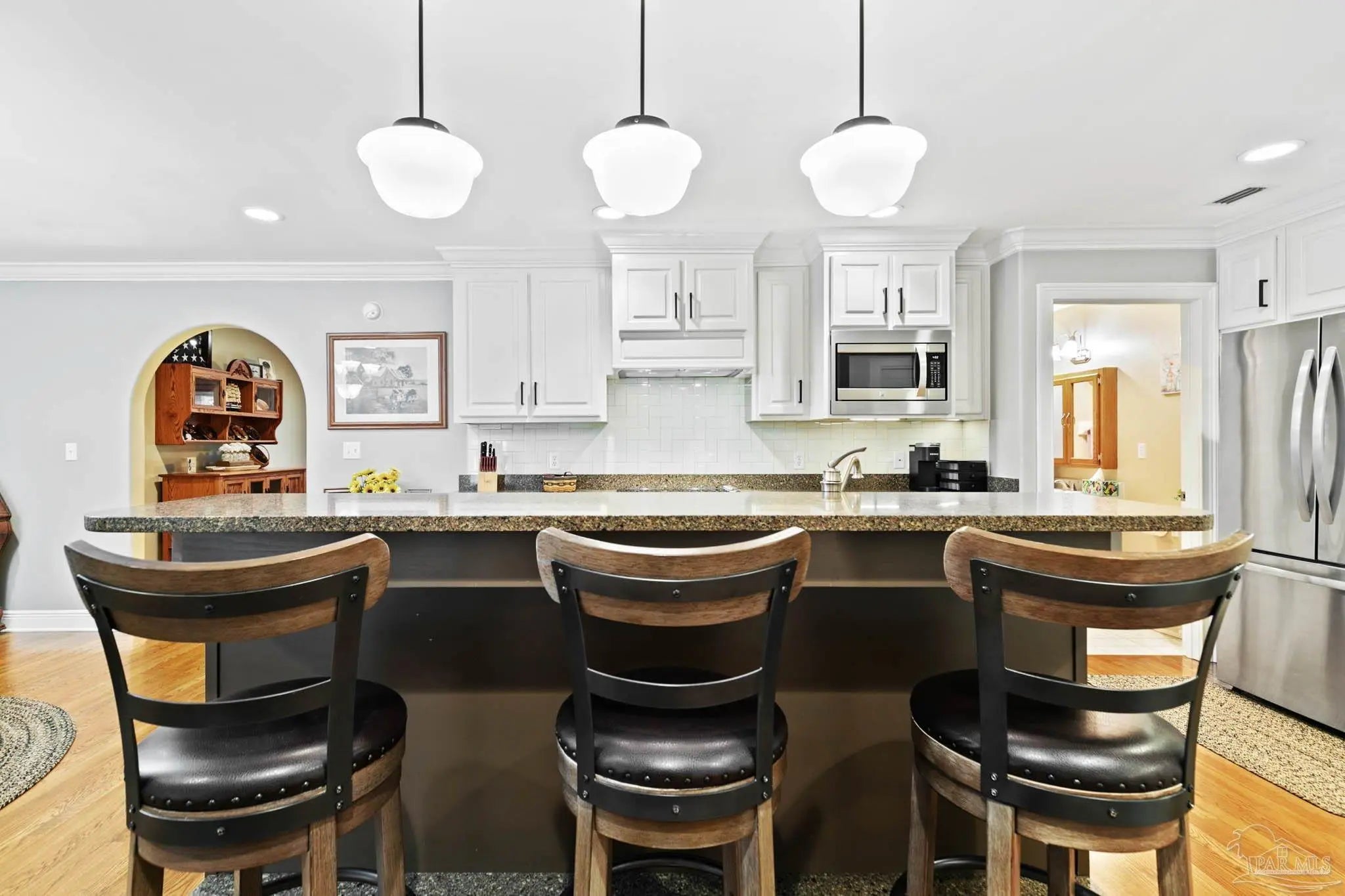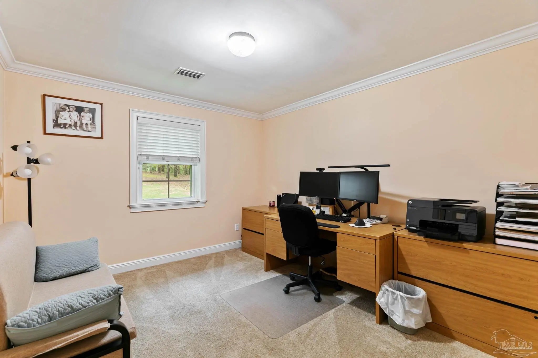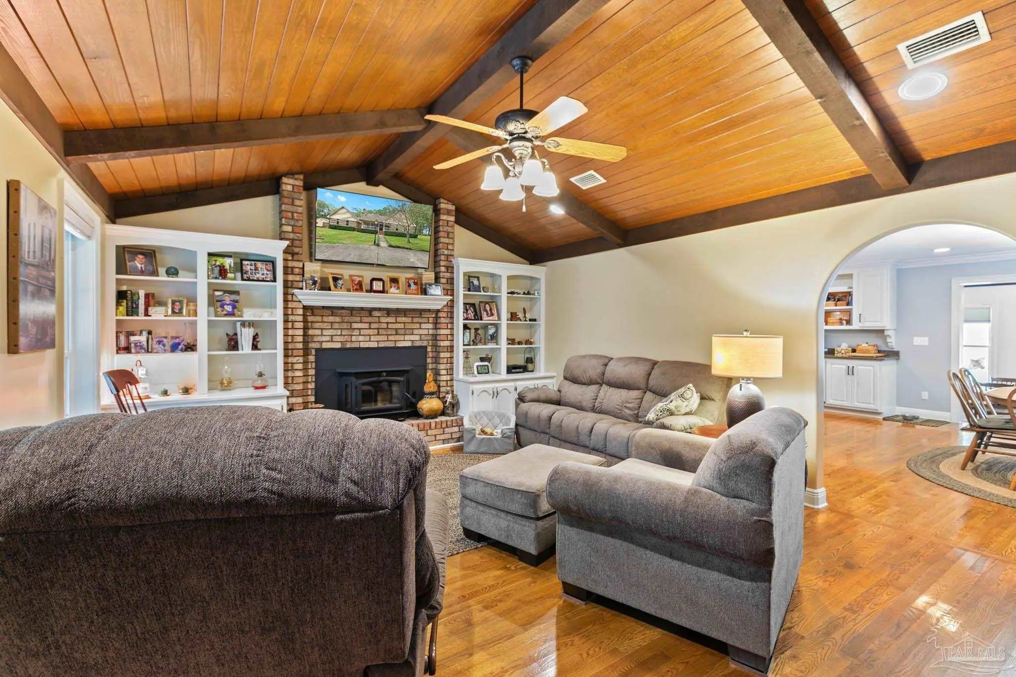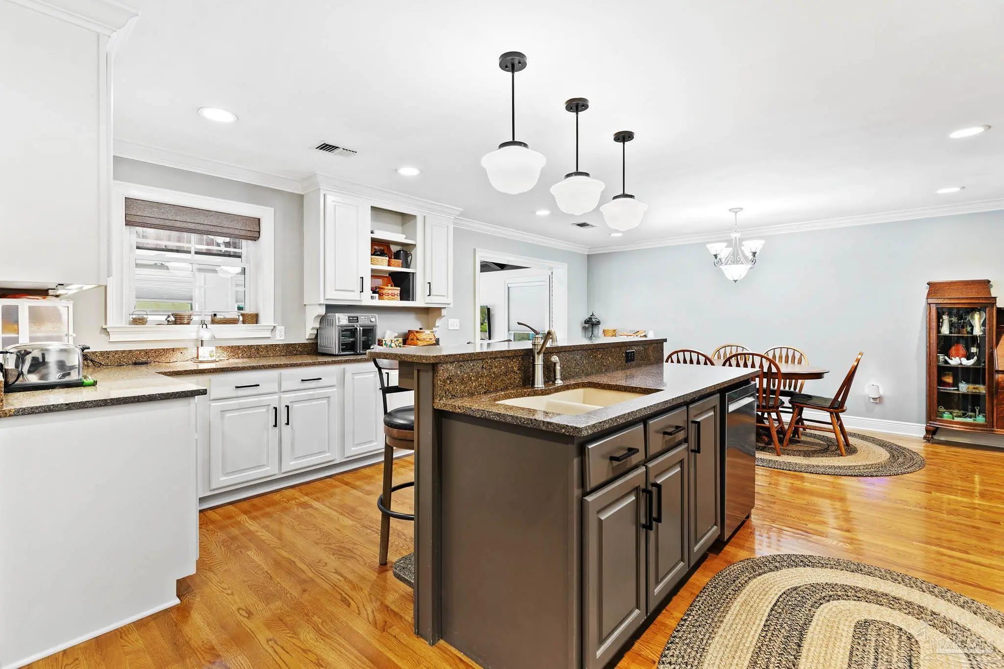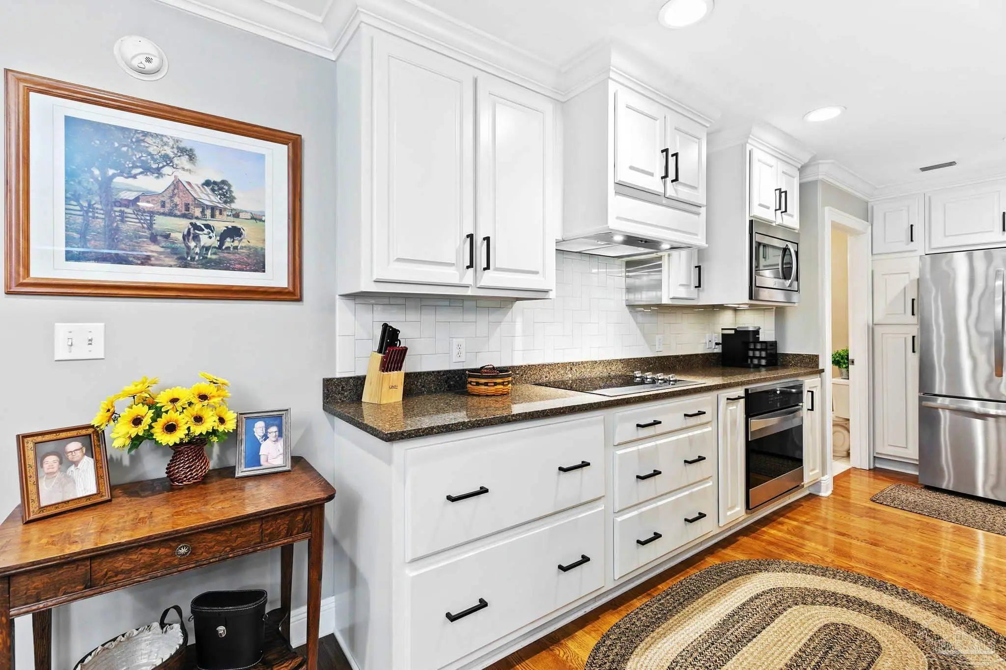 In Monroeville, where life moves a little slower and porches still hold conversations, there’s a home tucked quietly at the end of a treelined drive—private, peaceful, and beautifully kept. A classic brick exterior and 4± acres welcome you in, but it’s what’s behind the front door (and especially behind the house) that makes this one unforgettable. Inside, cathedral ceilings, wood beams, and a brick fireplace create a living room that feels warm the moment you step inside. The bright kitchen and dining area bring everyone together—granite counters, rollout cabinetry, an island with bar seating, and a layout built for everyday living and weekend hosting. Morning coffee in the sun room feels like a slow start to the day, sunlight filtering in with a reminder that life here is meant to be enjoyed. The primary suite offers comfort and a custom walk-in closet, while two additional bedrooms provide flexibility for family, office space, or guests. But step outside—and this property truly shines. A 10’ vinyl in-ground pool sits like the centerpiece of summer, surrounded by a fenced patio with stereo system, can lighting, and covered seating for long afternoons and late-night swims. A separate 300 sq ft covered entertainment space is built for cookouts, crawfish boils, and birthday parties that stretch well past sunset. And then there’s the shop—2,159 sq ft of immaculate purpose. Updated in 2024 with finished interiors, office space, epoxy floors, water, and 200-amp service, it’s the place for projects, storage, business vehicles, or every hobby you’ve ever dreamed of starting. Meticulous doesn’t begin to describe it. Homes like this—with land, updates, a private pool, and a shop of this caliber—rarely come along. When they do, they don’t last. Come see it for yourself.