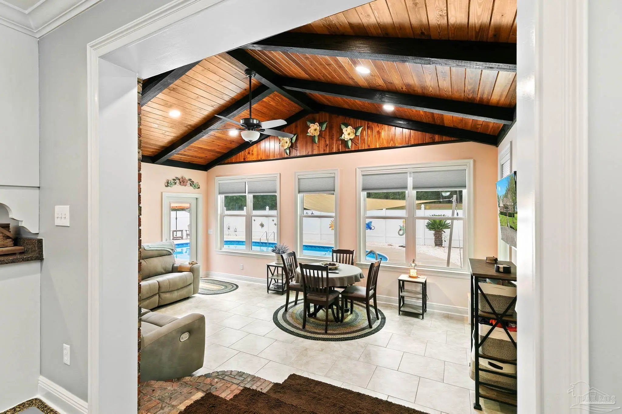 - Baseboards, Bookcases, Cathedral Ceiling(s), Ceiling Fan(s), Crown Molding, High Ceilings, Recessed Lighting, Sun Room