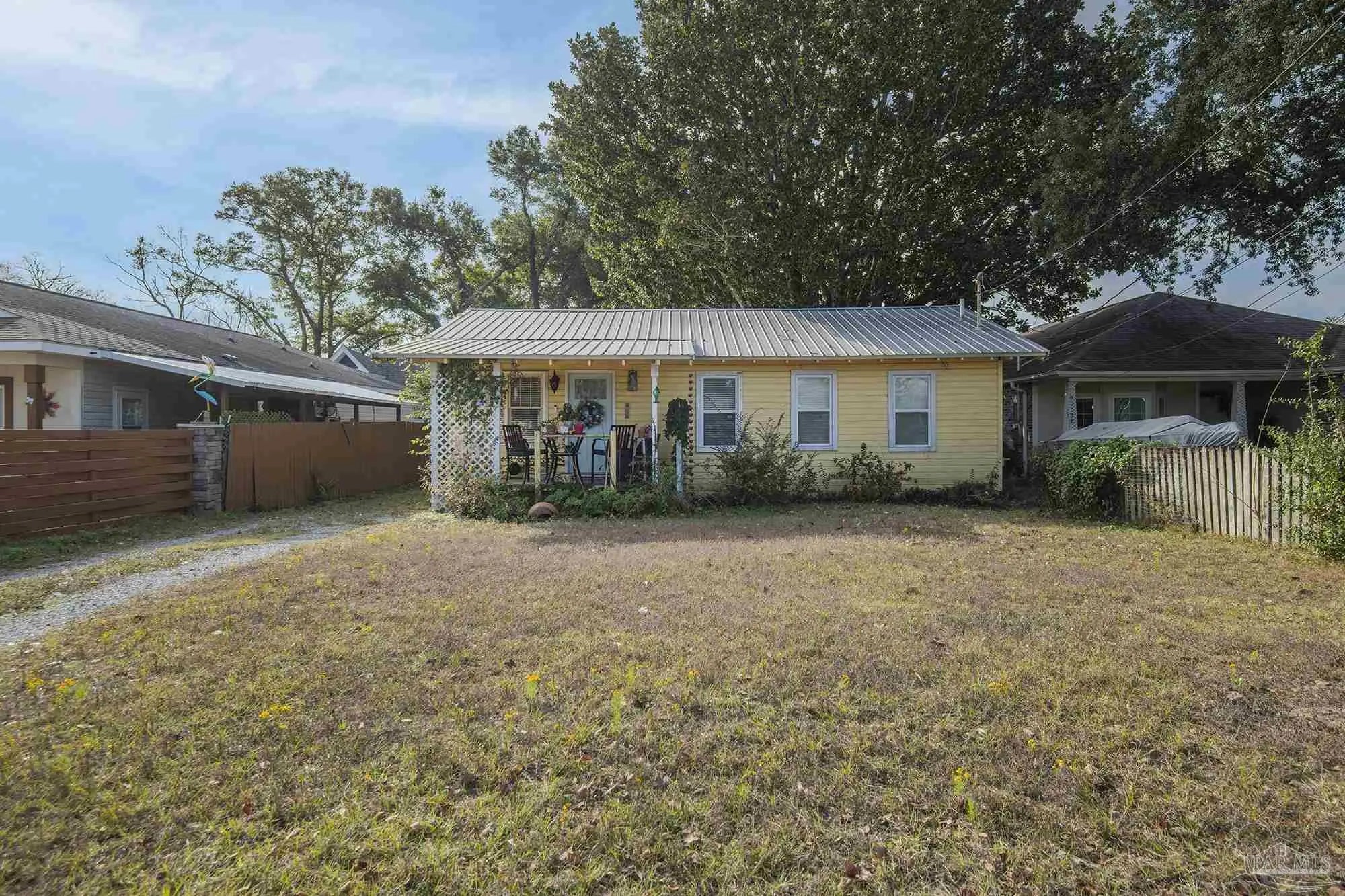 This little cottage in East Pensacola Heights is a very affordable way to get in the neighborhood. The owner has gutted and remodeled both the kitchen and masterbath. The kitchen got new cabinets, a hanging stove vent, a double stainless steel sink, stainless steel appliances, granite countertops and subway tile backsplash. The living room is open to the dining kitchen combo. The master was reconfigure to be a master suite with a small room that is being used as a closet. There is a second bedroom in the orginal part of the home just off the living room. The back portion of the home steps down into a Laundry room / mud room and just off of it is a room without a closet that the owner used as a third bedroom at one time. This room is heated and cooled by a window unit. A metal roof was put on the home in 2016. The protion of the home that was upgreaded in 2016 was rewired . There were a few windows replaced at that time and some of the plumbing was reworked whenthe bath and kitchen were redone. This home sits on a 50' x 150' lot which is desirable for this neighborhood. There is still work to be done , some of the door jambs were finished and sone of the new sheetrock need to be finished out and textured. There is a small front sitting porch and in the backyard there is an outside shower with hot / cold water. You can clean up before coming in. East Pensacola Heights is three sides water , one side rich with elevation. Close to everything that matters it is super convenient. There are plenty of reasons East Pensacola Heights is booming. All this on a shoe string budget!