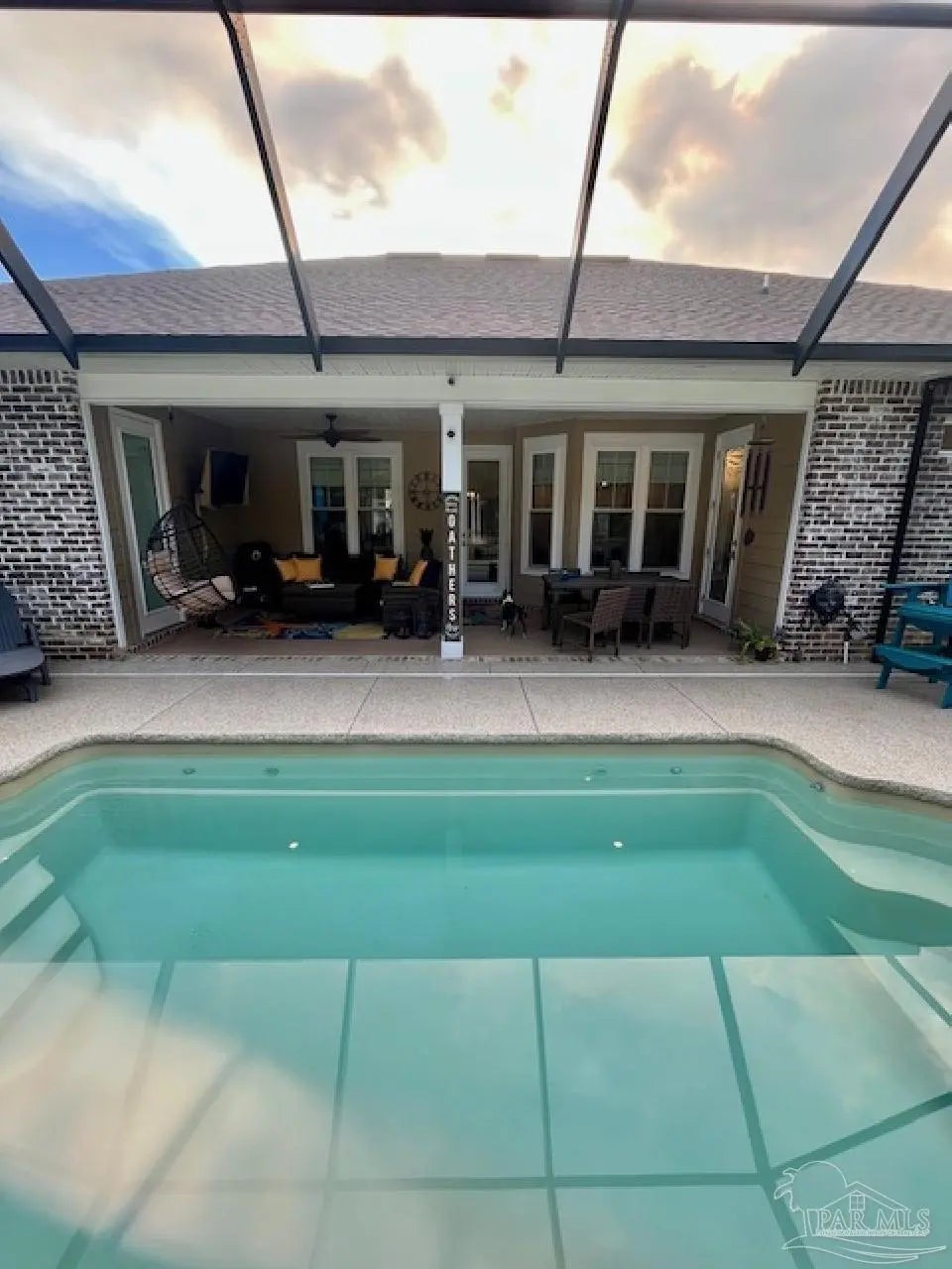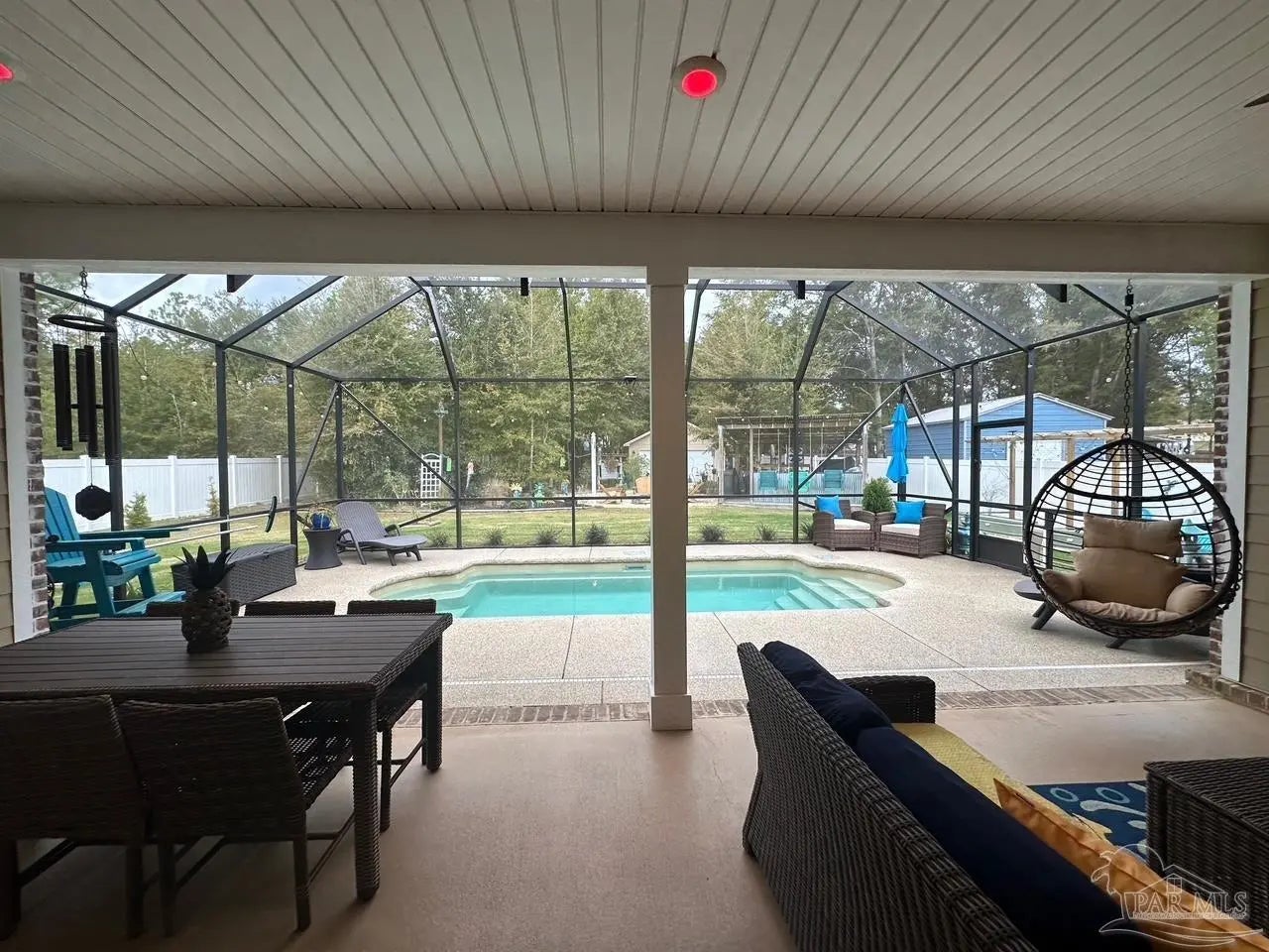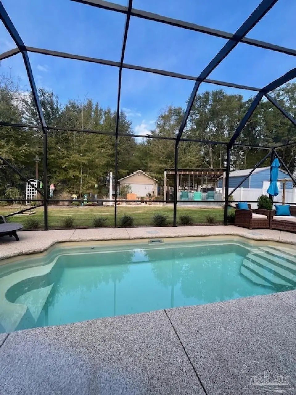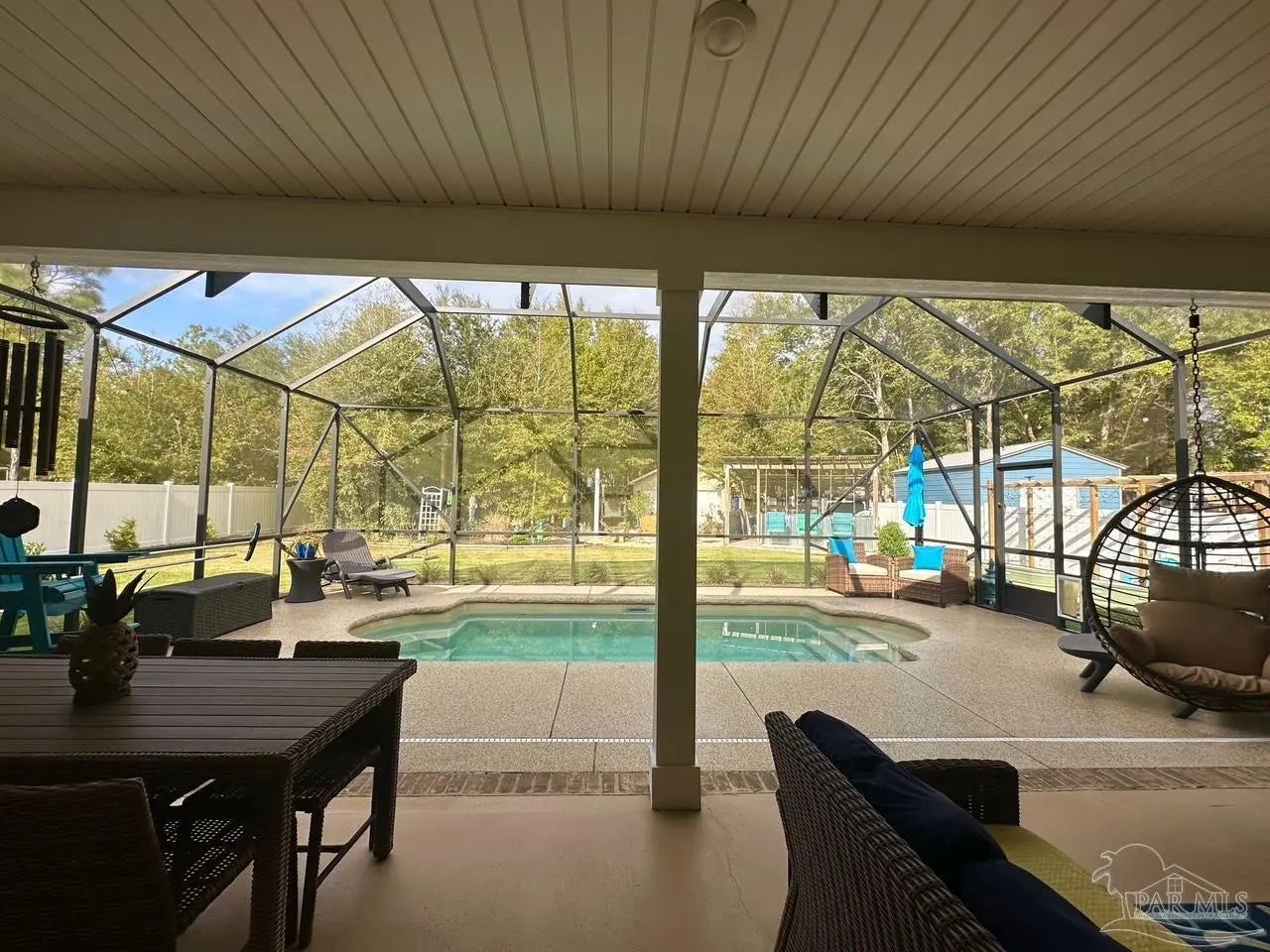 Creme de la Creme home at The Preserve. Besides its obvious established landscaping and curb appeal, this home boasts impact resistant glass windows, lanai, inground fiberglass pool, covered 12x16 cooking area, firepit, grape arbor, and a detached 20x20 workshop/garage behind the home. (Pool comes with cleaning robot.) Being covered with pool cleaner makes Florida life The workshop is in addition to the attached 3 car garage! Inside, the versatile split floor plan (True 4 bedroom plus flex room and formal dining area) there are 12' ceilings, with knock down finish, rounded sheetrock corners, several nested tray ceilings. Fixtures are upgraded ~ not typical builder grade. Privacy fence is vinyl and the established lawn is Bermuda in the front and Zoysia in the deep rear yard. Epoxy finish surrounds pool. Wonderfully planned private lanai affords a private bath and also an entry into the primary suite. WDO bond and remaining structural warranty convey. Immaculately clean. This property is planned and manicured down to the last detail making this home better than new because of all of its amenities ~ these are amenities you won't find on any of the competition! And The Preserve itself features underground utilities, street lamps and cluster mailbox units.