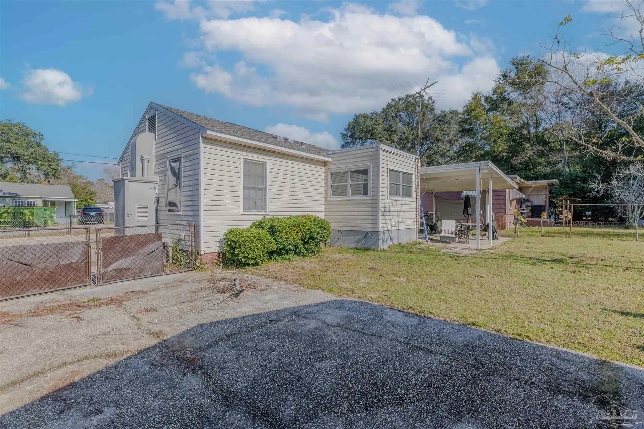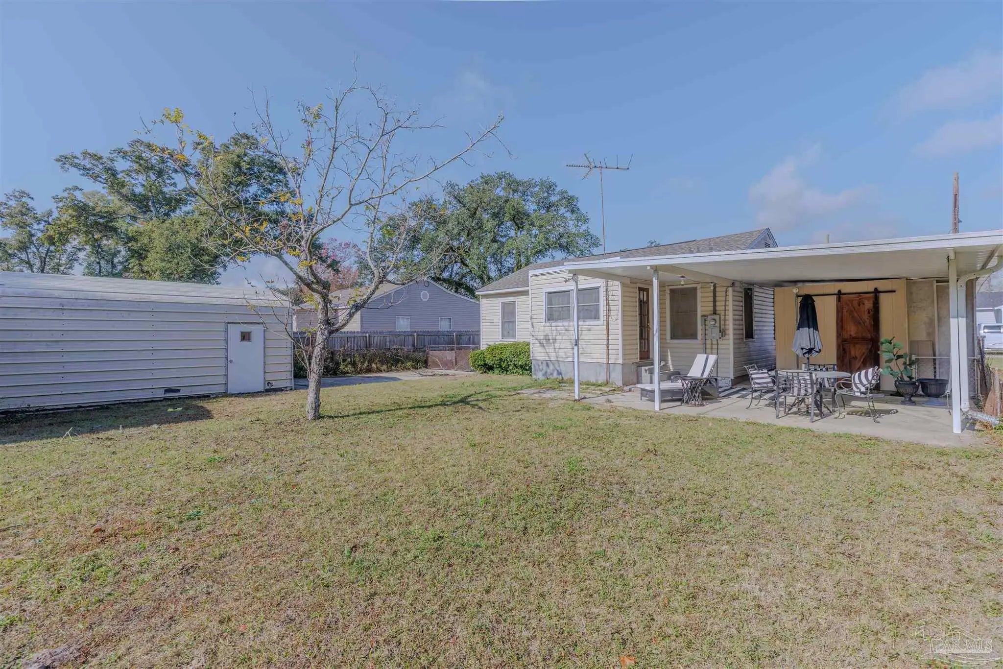 This cute homey bungalow has modern updates yet still retains some of it's original charm! The EXPANSIVE front driveway and parking area invites you into the property. There is a COVERED PARKING AREA and space to maneuver several vehicles or a large trailer. The COVERED FRONT PORCH invites you to come relax and spend time on your custom rocking chair and/or show off your beautiful plants. As you enter the front door, you immediately notice the ORIGINAL HARDWOOD FLOORS, STORM DOOR, and SPACIOUS FAMILY ROOM! The DINING area is just off the family room and perfectly placed near the KITCHEN. Galley style cabinets and counters offer plenty of prep space. The GRANITE COUNTERTOPS and STAINLESS STEEL appliances give you the updated feel. Plenty of WINDOWS to bring lots of natural light in as well. The Hallway leads you to the FULL BATHROOM to be shared by guests and family with a TUB/SHOWER combination and a nice VANITY. The MASTER BEDROOM is tucked off the right side of the hall and has plenty of room for relaxing and sleeping. The additional bedroom is conveniently at the end of the hall as well for both guests or maybe a nursery... The BACK DOOR off the kitchen leads you to the COVERED BACK PORCH with plenty of room for your lounge chairs and tables. You have room for a grill as well! This is also the path to the LAUNDRY ROOM so you always have a roof overhead and will not need to worry about the outside weather. This room has extra space for storage as well. The BACK YARD is very usable with plenty of green grass, fence, dog run, and TWO YARD BUILDINGS! One is perfect for the MAN CAVE or SHE SHED at 10 x 12 and one is a Large METAL BUILDING ON A CONCRETE SLAB can easily be your DETACHED GARAGE. There is a drive into the back yard which provides access to the large building so an RV, yard toy, or large boat and trailer could be driven right in! Schedule your showing today.
