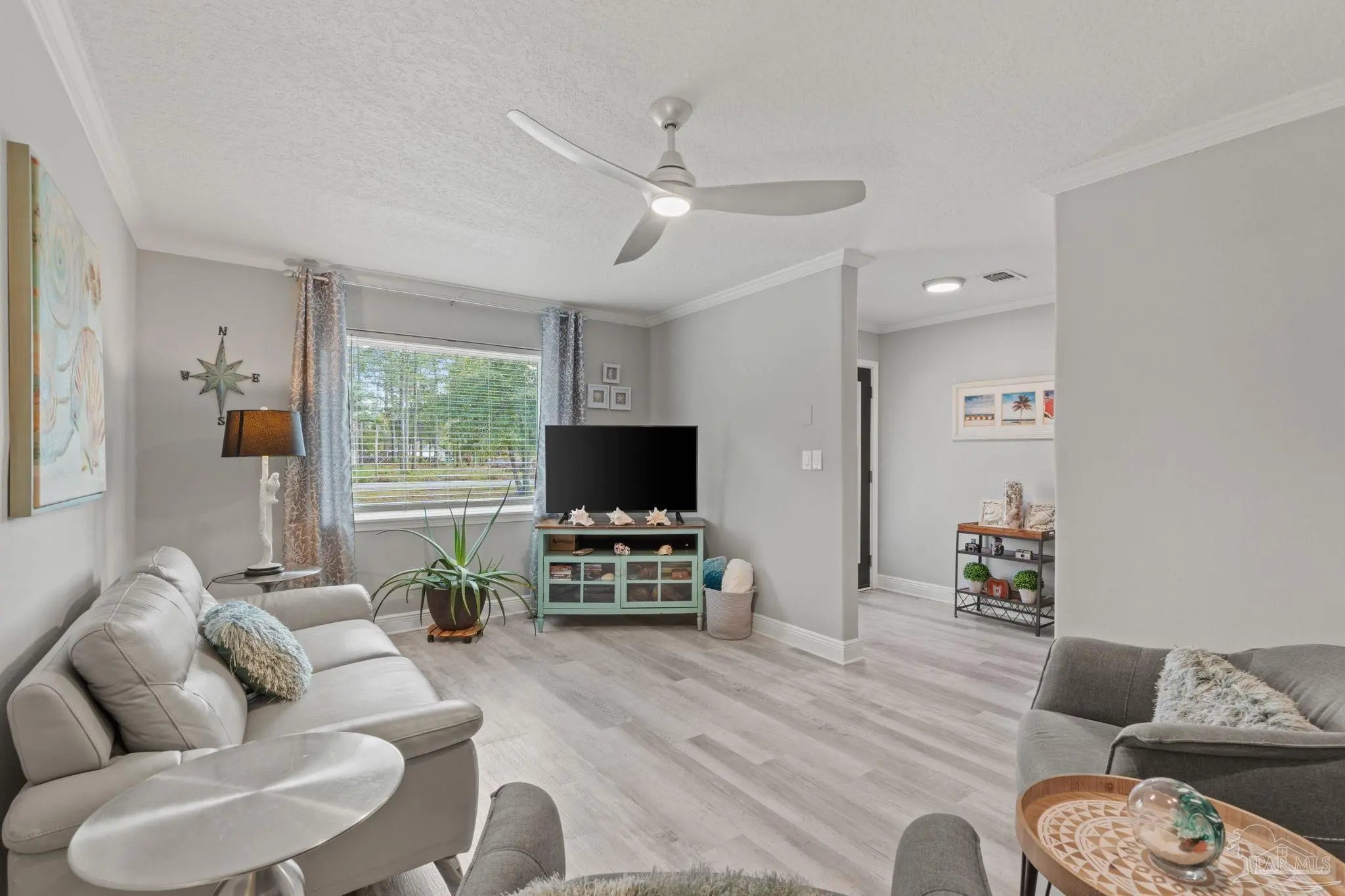 - Baseboards, Ceiling Fan(s), Crown Molding, High Speed Internet