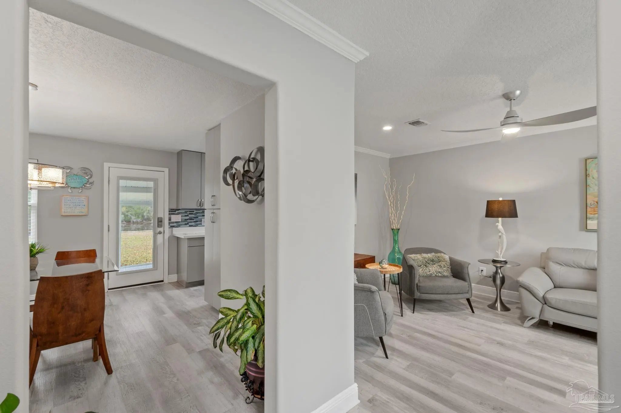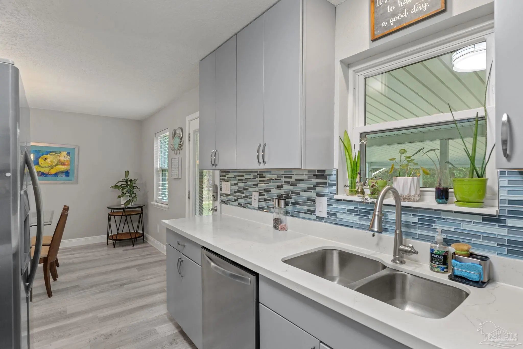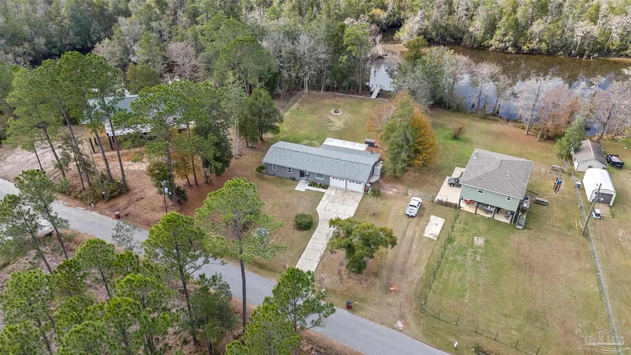 Immaculate waterfront coastal cottage with boat dock, numerous upgrades over the past 5 years, and even an artesian spring well! This storybook 3 bedroom, 2 bath brick home sits on 0.63 acres and boasts 99 feet of water frontage on a peaceful bayou that leads to the Blackwater River and out to Blackwater Bay - an ideal setting for kayaking, fishing, or navigating a mid-size boat out to open water. A 2023 dock installation includes a comfortable seating area, perfect for relaxing by the water. Outdoor living is elevated with over 500 sq. ft. of screened, covered patio space, offering beautiful sunset views. Extensive improvements were made throughout the home in 2021, including: Updated kitchen with new cabinets, quartz countertops, and stainless steel appliances; Updated bathroom vanities and mirrors; New windows; Hard-surface flooring; Modern lighting fixtures; New entry doors. Roof was new in 2019 and, in 2022, the crawl space was fully encapsulated for humidity and climate control, and quiet-close, hurricane-rated garage doors were installed. Additional upgrades include a new HVAC system with an Air Scrubber air purification unit, as well as a new well pump, and a new pump house to keep that artesian spring water flowing. The property offers exceptional privacy and recreation, while still providing the convenience of in-town living, with quick access to I-10 and close proximity to Hwy 90 and downtown Milton, Walmart, Publix, Aldi, restaurants, and more. Nature lovers will enjoy easy access to the 8.1 mile Blackwater Heritage State trail for walking, biking and jogging. Additional features include: A workshop and storage area under the same roof as the oversized two-car garage; A natural, ever-flowing artesian well providing fresh, great-tasting water; RV hookups with parking area beside the home; Transferable hurricane shutters. This distinctive waterfront home combines comfort, privacy, and modern upgrades for peace of mind—a true waterfront retreat.