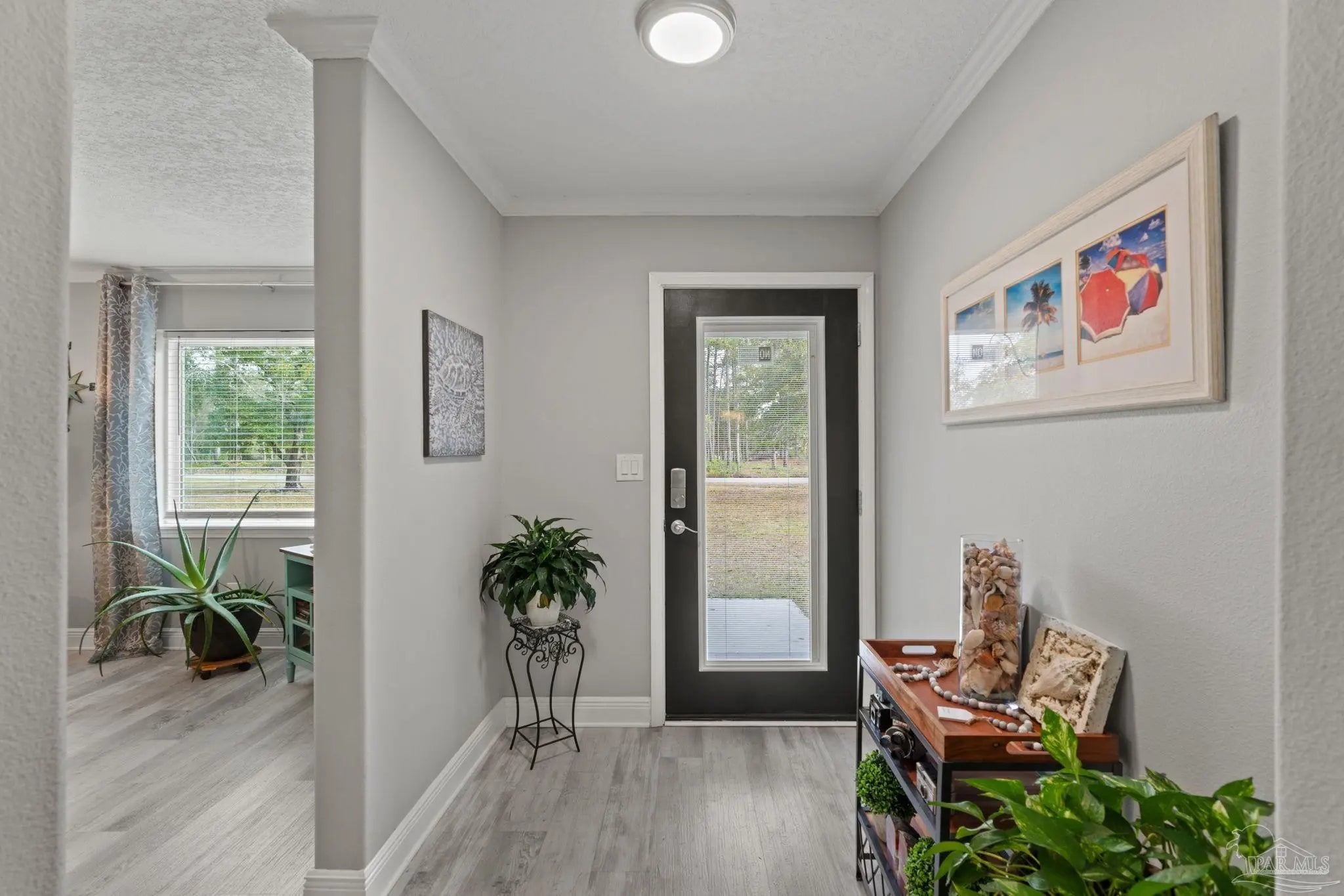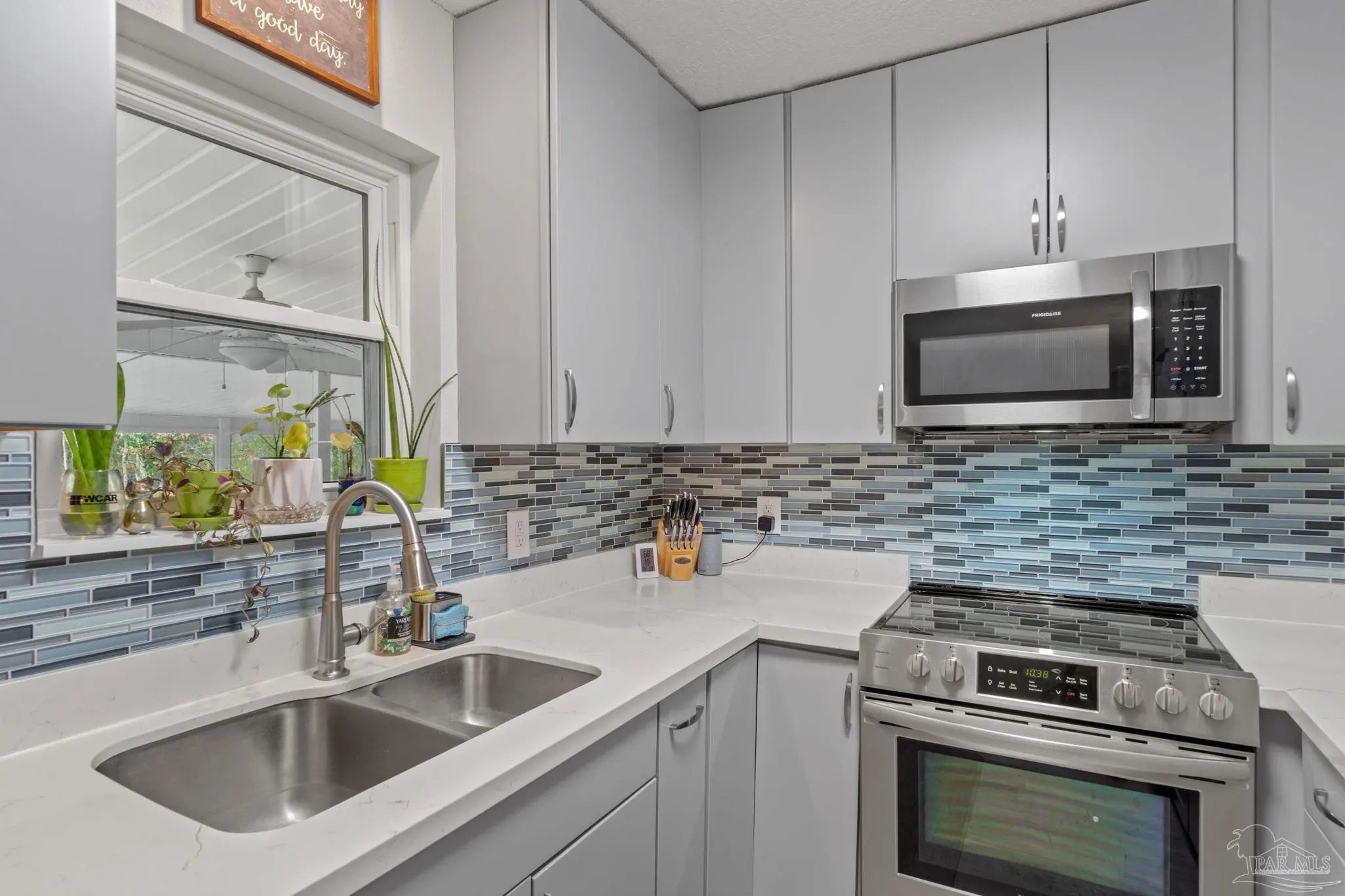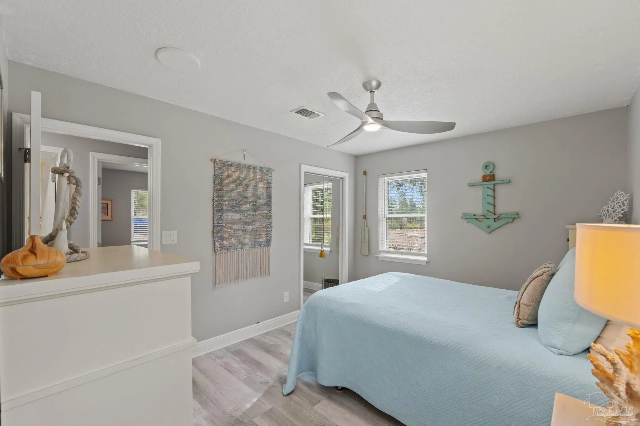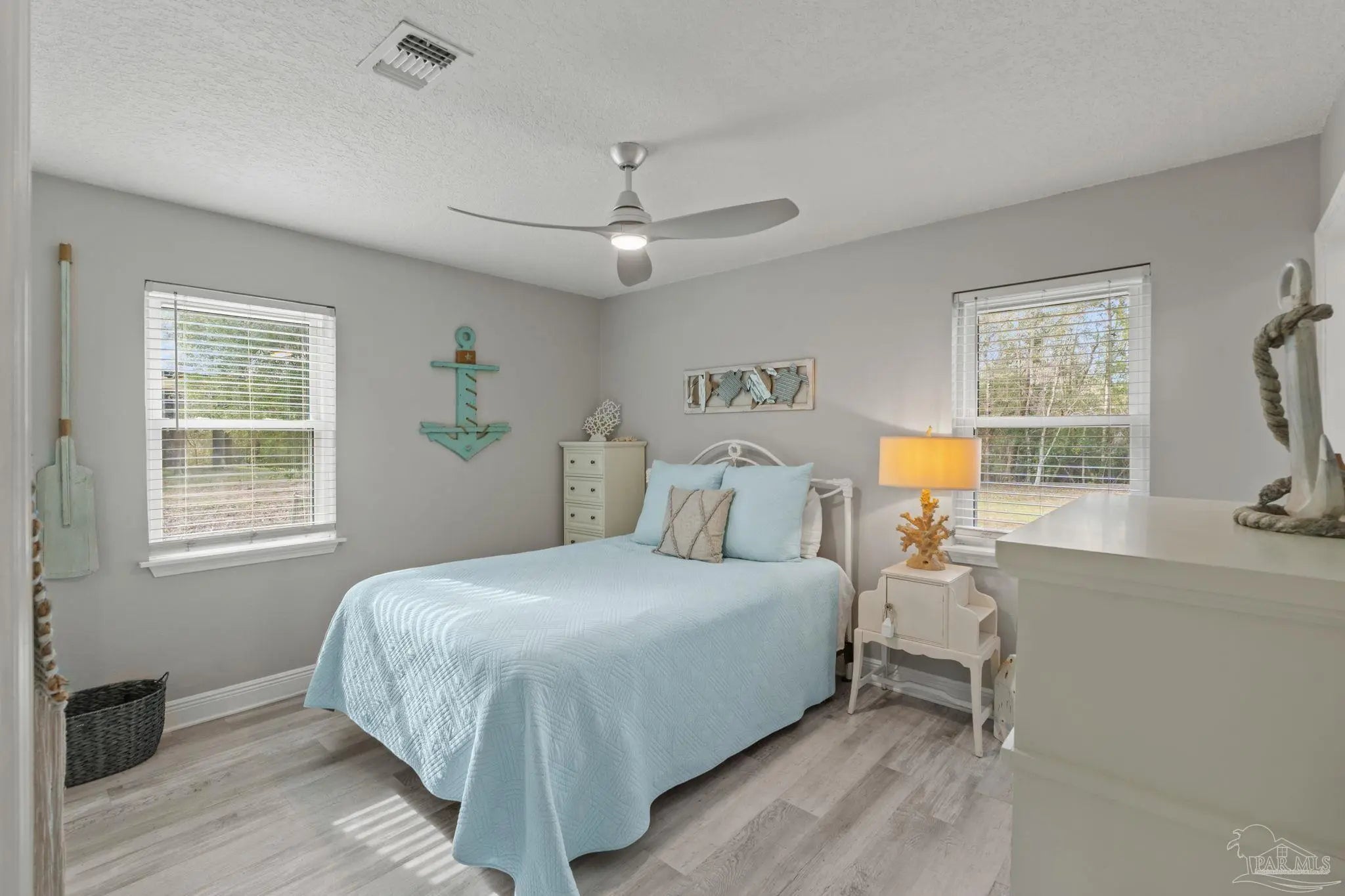 Immaculate waterfront coastal cottage with boat dock, numerous upgrades over the past 5 years, and even an artesian spring well! This storybook 3 bedroom, 2 bath brick home sits on 0.63 acres and boasts 99 feet of water frontage on a peaceful bayou that leads to the Blackwater River and out to Blackwater Bay - an ideal setting for kayaking, fishing, or navigating a mid-size boat out to open water. A 2023 dock installation includes a comfortable seating area, perfect for relaxing by the water. Outdoor living is elevated with over 500 sq. ft. of screened, covered patio space, offering beautiful sunset views. Extensive improvements were made throughout the home in 2021, including: Updated kitchen with new cabinets, quartz countertops, and stainless steel appliances; Updated bathroom vanities and mirrors; New windows; Hard-surface flooring; Modern lighting fixtures; New entry doors. Roof was new in 2019 and, in 2022, the crawl space was fully encapsulated for humidity and climate control, and quiet-close, hurricane-rated garage doors were installed. Additional upgrades include a new HVAC system with an Air Scrubber air purification unit, as well as a new well pump, and a new pump house to keep that artesian spring water flowing. The property offers exceptional privacy and recreation, while still providing the convenience of in-town living, with quick access to I-10 and close proximity to Hwy 90 and downtown Milton, Walmart, Publix, Aldi, restaurants, and more. Nature lovers will enjoy easy access to the 8.1 mile Blackwater Heritage State trail for walking, biking and jogging. Additional features include: A workshop and storage area under the same roof as the oversized two-car garage; A natural, ever-flowing artesian well providing fresh, great-tasting water; RV hookups with parking area beside the home; Transferable hurricane shutters. This distinctive waterfront home combines comfort, privacy, and modern upgrades for peace of mind—a true waterfront retreat.