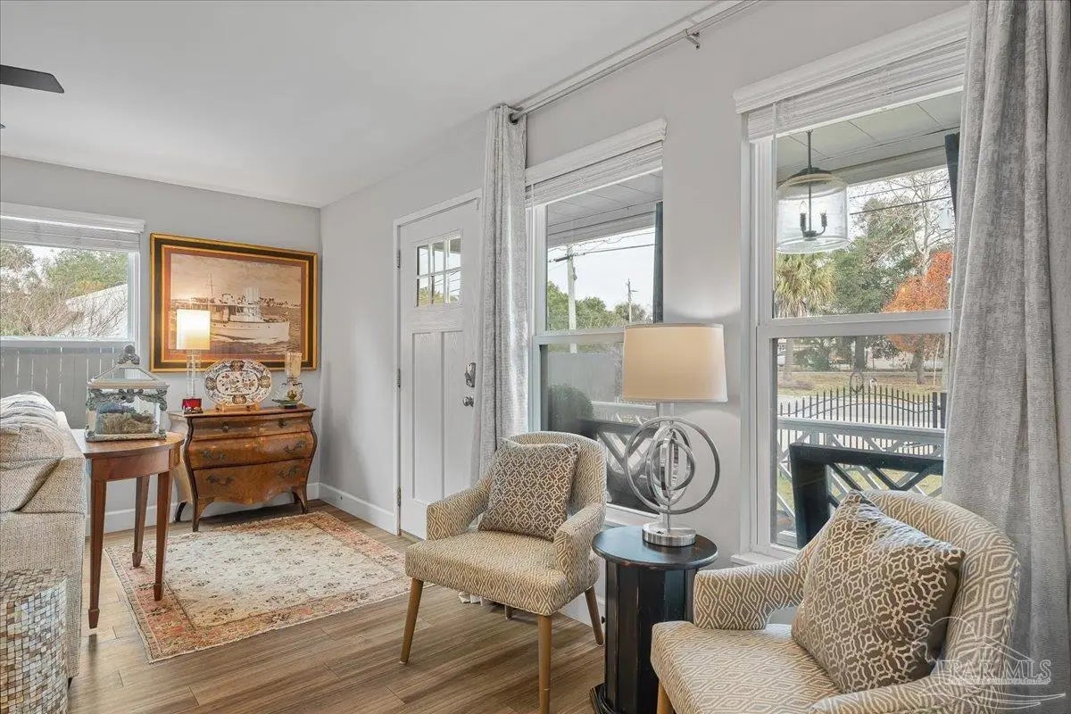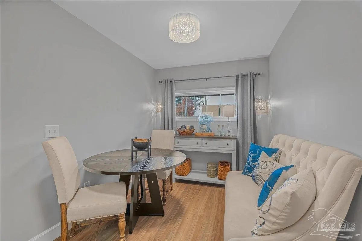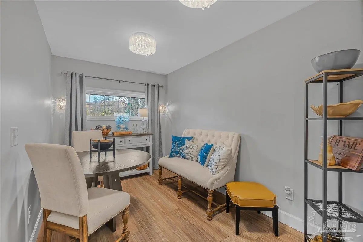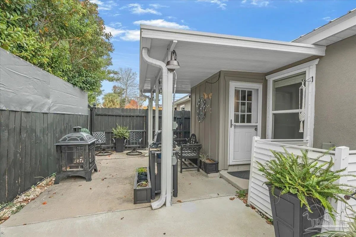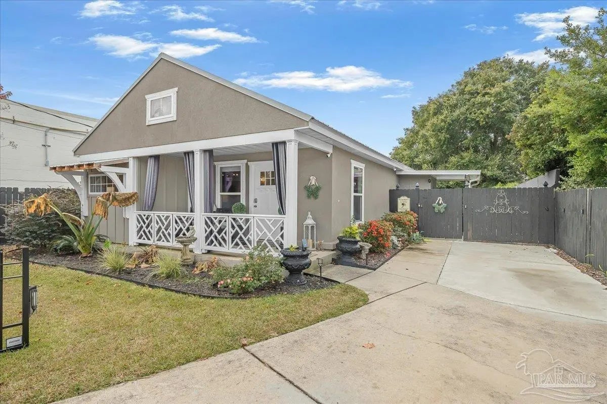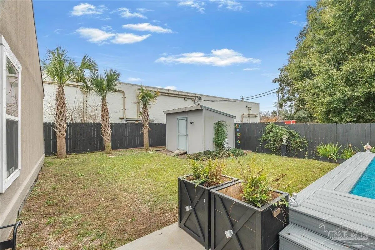 Welcome home to this charming 2BD/2BA steel-framed cottage, ideally located near Pensacola favorites including Bonelli’s, The Coffee Cup, and Maria’s. Just 5 minutes from Downtown Pensacola and 15 minutes from Pensacola Beach, this home offers convenience, durability, and modern comfort. Built with steel framing, foam insulation, and a tankless electric hot water system, the home features luxury vinyl plank flooring and a light, neutral color palette throughout. The recently updated kitchen boasts stainless steel appliances, soft-close cabinetry, a newly added eating nook, and a large walk-in pantry. Both bathrooms have been recently updated with modern finishes. The primary suite includes a walk-in closet and ensuite bath with double vanity and walk-in shower, while the guest bedroom also offers a walk-in closet. Outdoor living shines with a beautifully updated, fully fenced backyard featuring a high-end semi-above-ground pool with surrounding decking—perfect for entertaining. Additional highlights include a gated entry for security, side concrete patio with a 14’x10’ aluminum awning with power and lighting, an additional covered patio for grilling, an 8’x12’ garden shed or workshop, raised garden beds, and an inviting front patio. All appliances convey, including a stackable washer and dryer. A well-appointed primary residence or excellent investment opportunity in the heart of Pensacola.