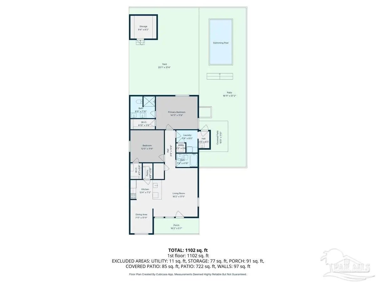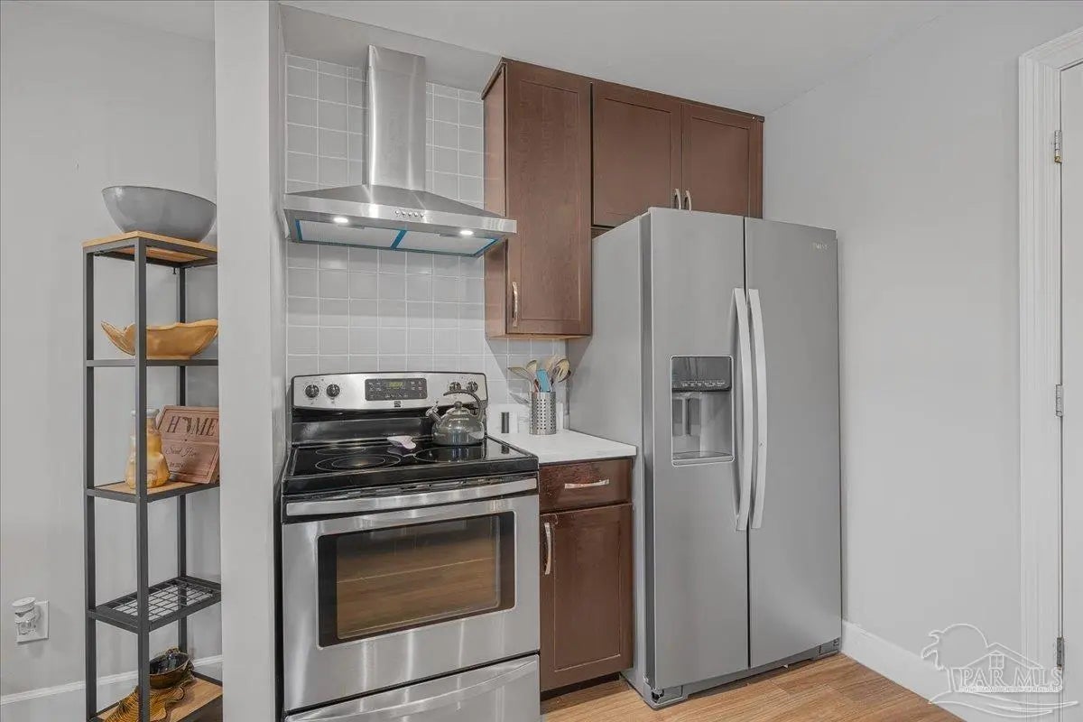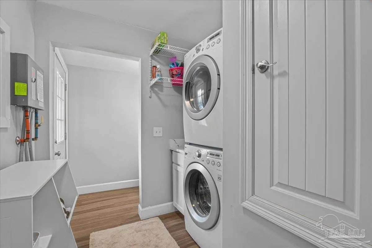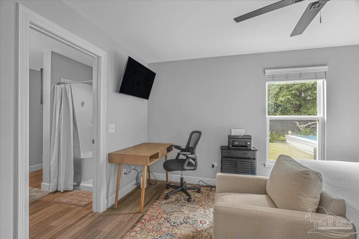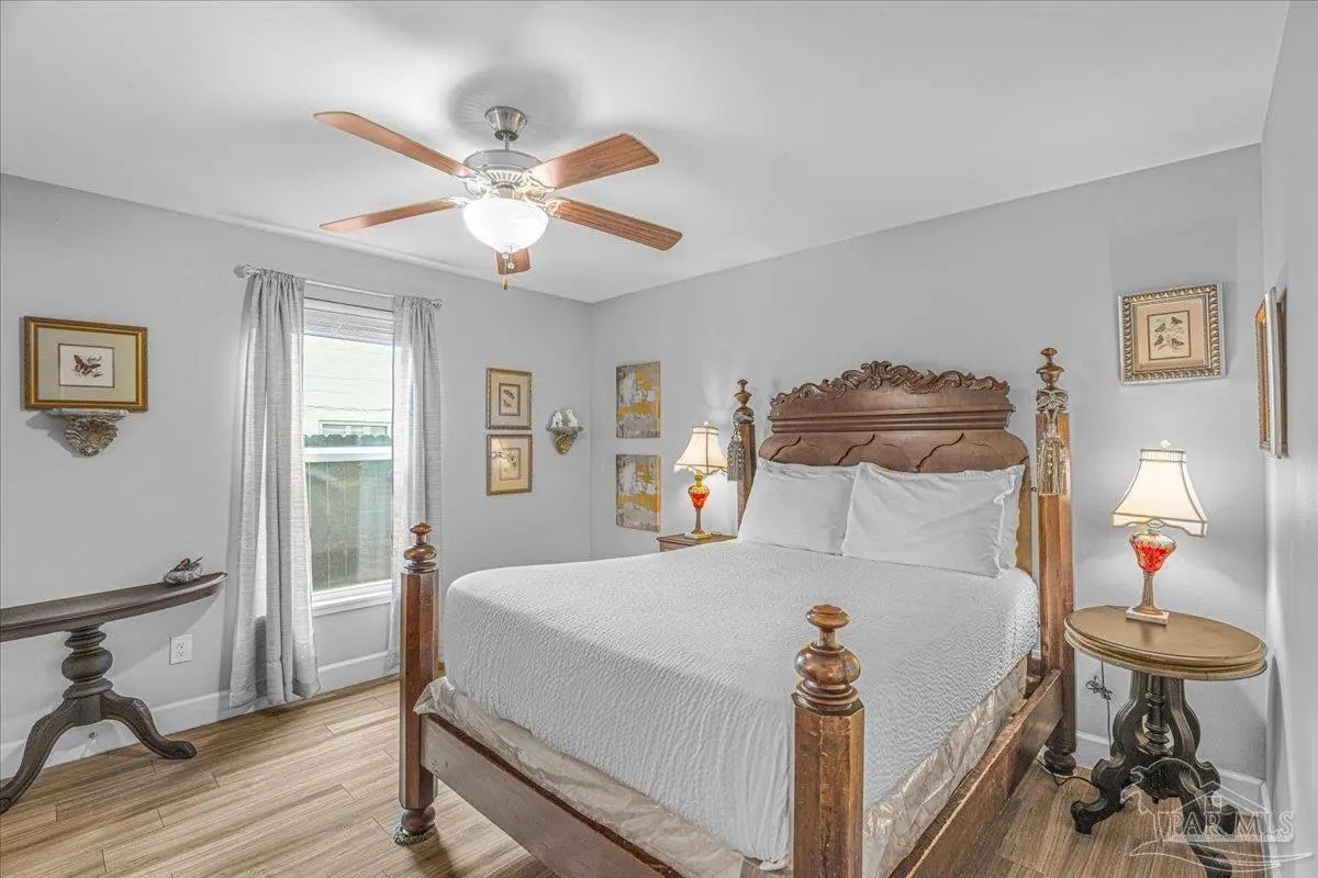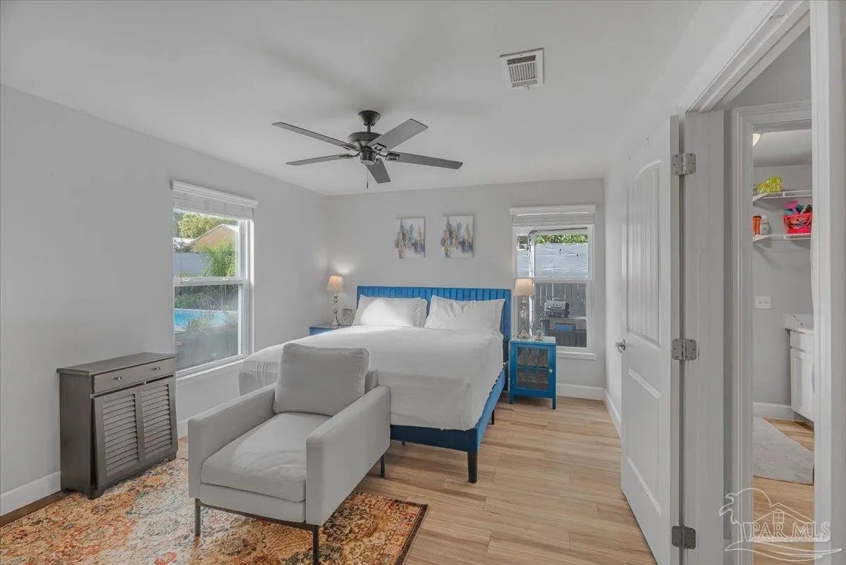 Welcome home to this charming 2BD/2BA steel-framed cottage, ideally located near Pensacola favorites including Bonelli’s, The Coffee Cup, and Maria’s. Just 5 minutes from Downtown Pensacola and 15 minutes from Pensacola Beach, this home offers convenience, durability, and modern comfort. Built with steel framing, foam insulation, and a tankless electric hot water system, the home features luxury vinyl plank flooring and a light, neutral color palette throughout. The recently updated kitchen boasts stainless steel appliances, soft-close cabinetry, a newly added eating nook, and a large walk-in pantry. Both bathrooms have been recently updated with modern finishes. The primary suite includes a walk-in closet and ensuite bath with double vanity and walk-in shower, while the guest bedroom also offers a walk-in closet. Outdoor living shines with a beautifully updated, fully fenced backyard featuring a high-end semi-above-ground pool with surrounding decking—perfect for entertaining. Additional highlights include a gated entry for security, side concrete patio with a 14’x10’ aluminum awning with power and lighting, an additional covered patio for grilling, an 8’x12’ garden shed or workshop, raised garden beds, and an inviting front patio. All appliances convey, including a stackable washer and dryer. A well-appointed primary residence or excellent investment opportunity in the heart of Pensacola.