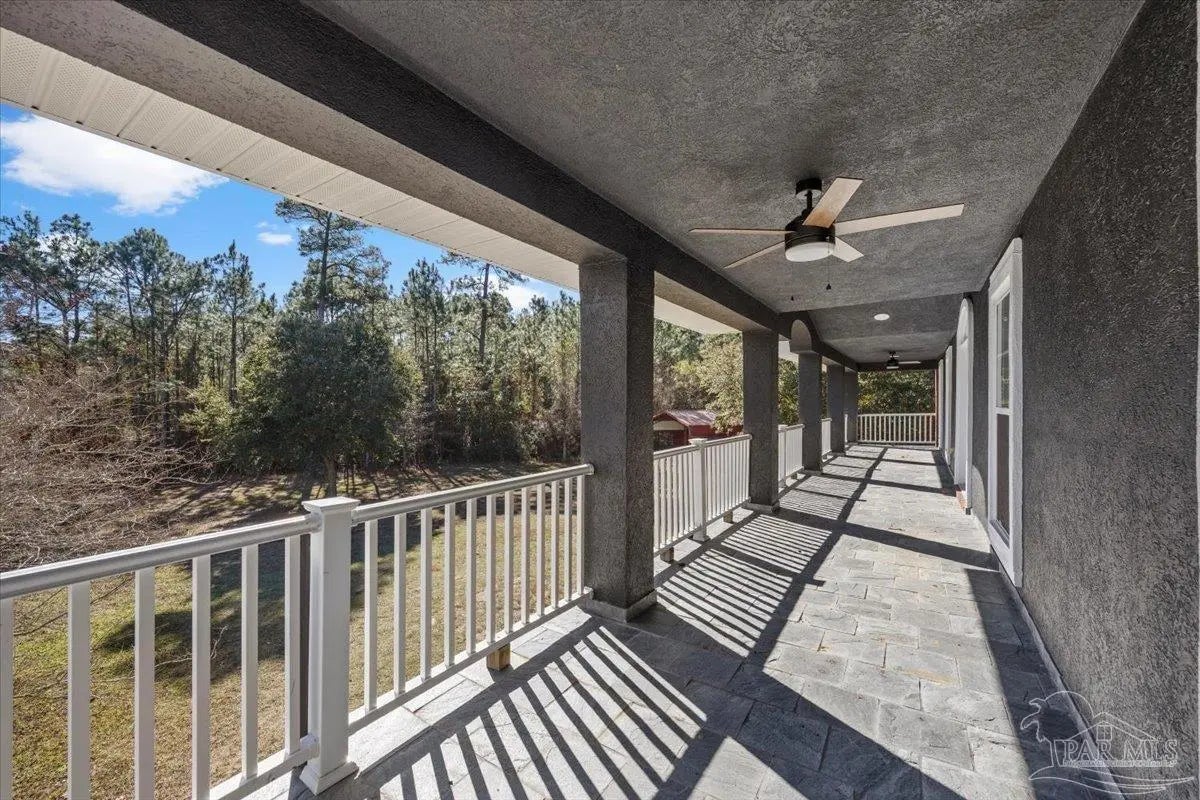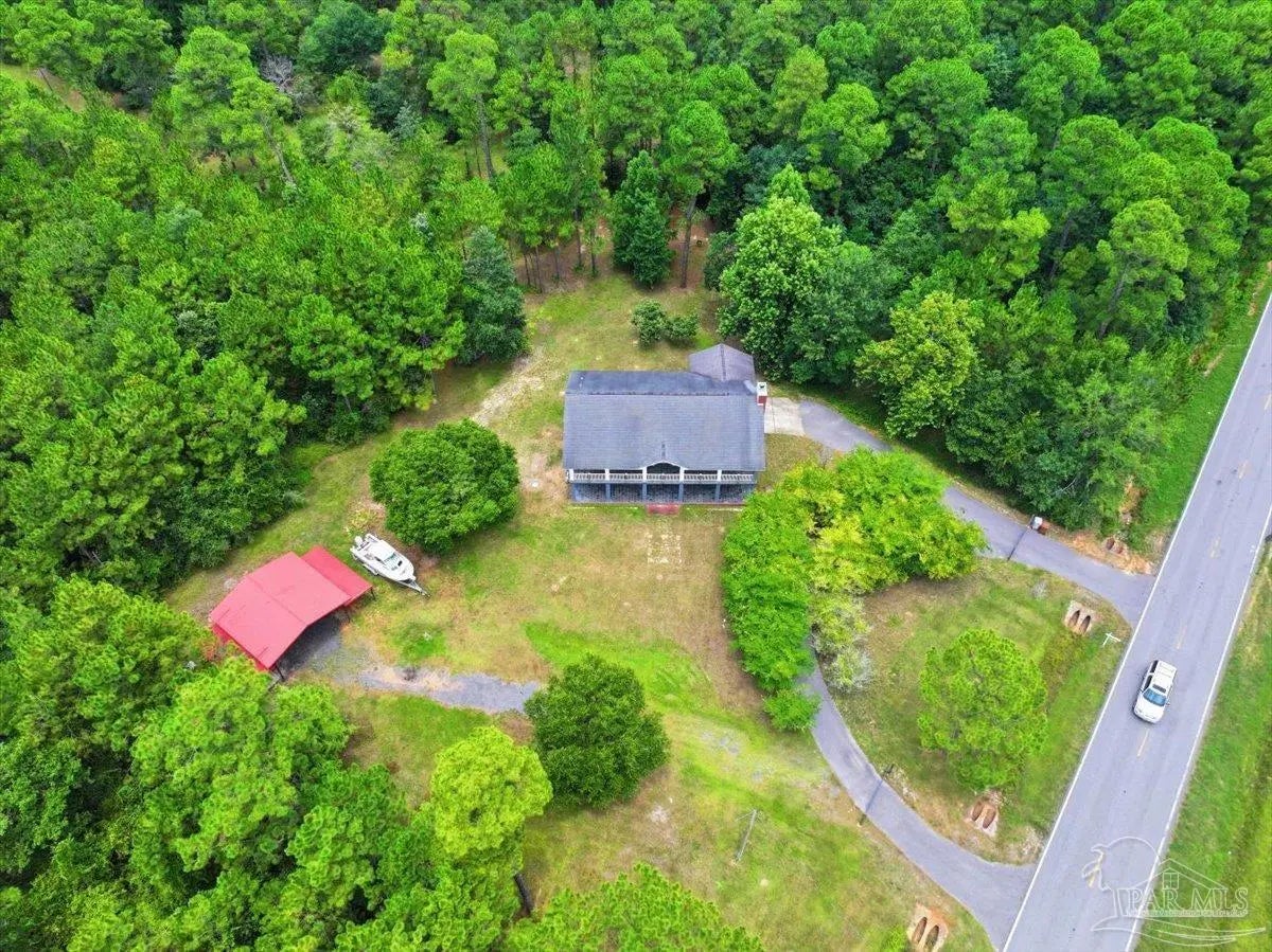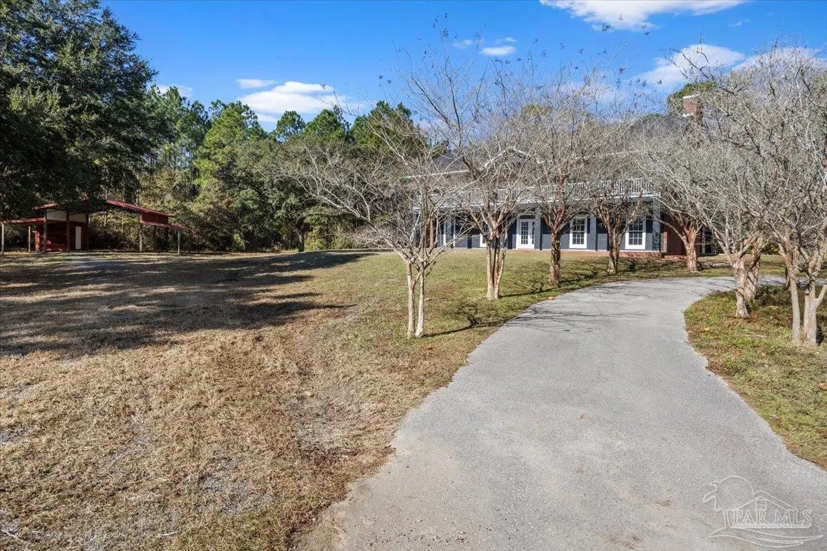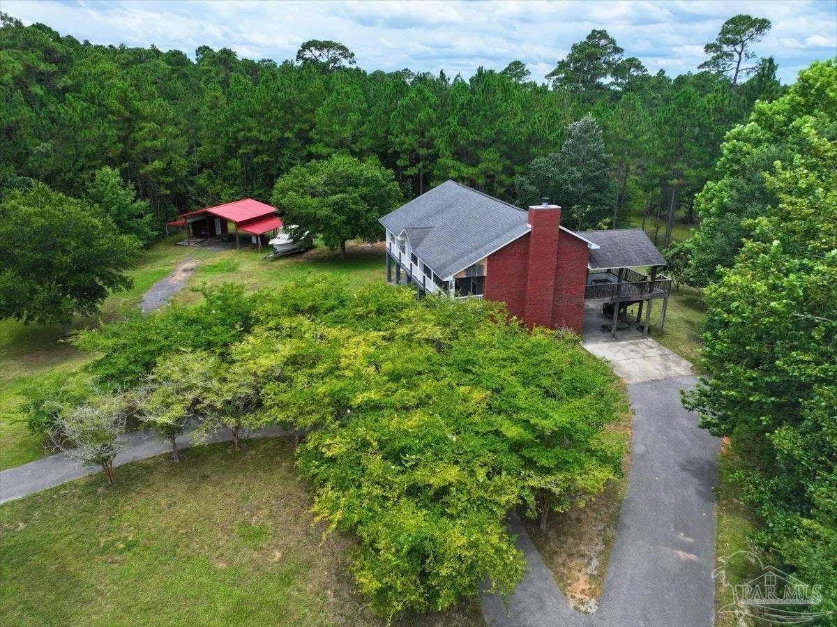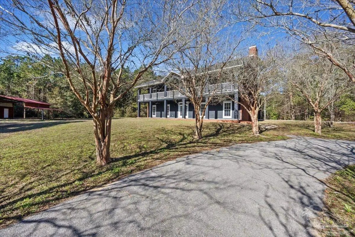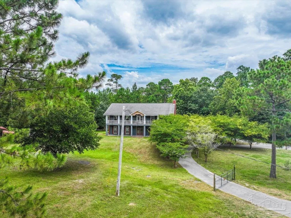Beautiful custom two-story home on 20 private acres! Finding this level of peace and privacy so conveniently located near the beaches, I-10, Milton, Pace and Pensacola is a rare opportunity. This 4 bedroom, 2 bath home has seen recent updates, allowing you to move right in and enjoy. Designed for both comfort and entertaining, the property features multiple covered decks and patios perfect for gatherings or quiet relaxation. Enjoy fishing from the bank of a stocked pond with well, surrounded by nature and serene views. Inside, the great room offers soaring ceilings and a wood-burning fireplace, creating a warm and inviting atmosphere. The kitchen includes updated lighting, stainless steel appliances, a built-in microwave, a hop-up bar, granite countertops, and crown molding throughout the home. The upstairs primary suite is a true retreat, featuring a sitting area, office, or flex space with direct access to a covered deck or balcony, an ideal spot to unwind and take in the natural surroundings. Recent improvements include a new roof (November 2025), new upstairs A/C (2025), second A/C unit (2014), and a new water heater. A workshop with power adds additional functionality and storage. This exceptional property offers privacy, space, and move-in convenience.