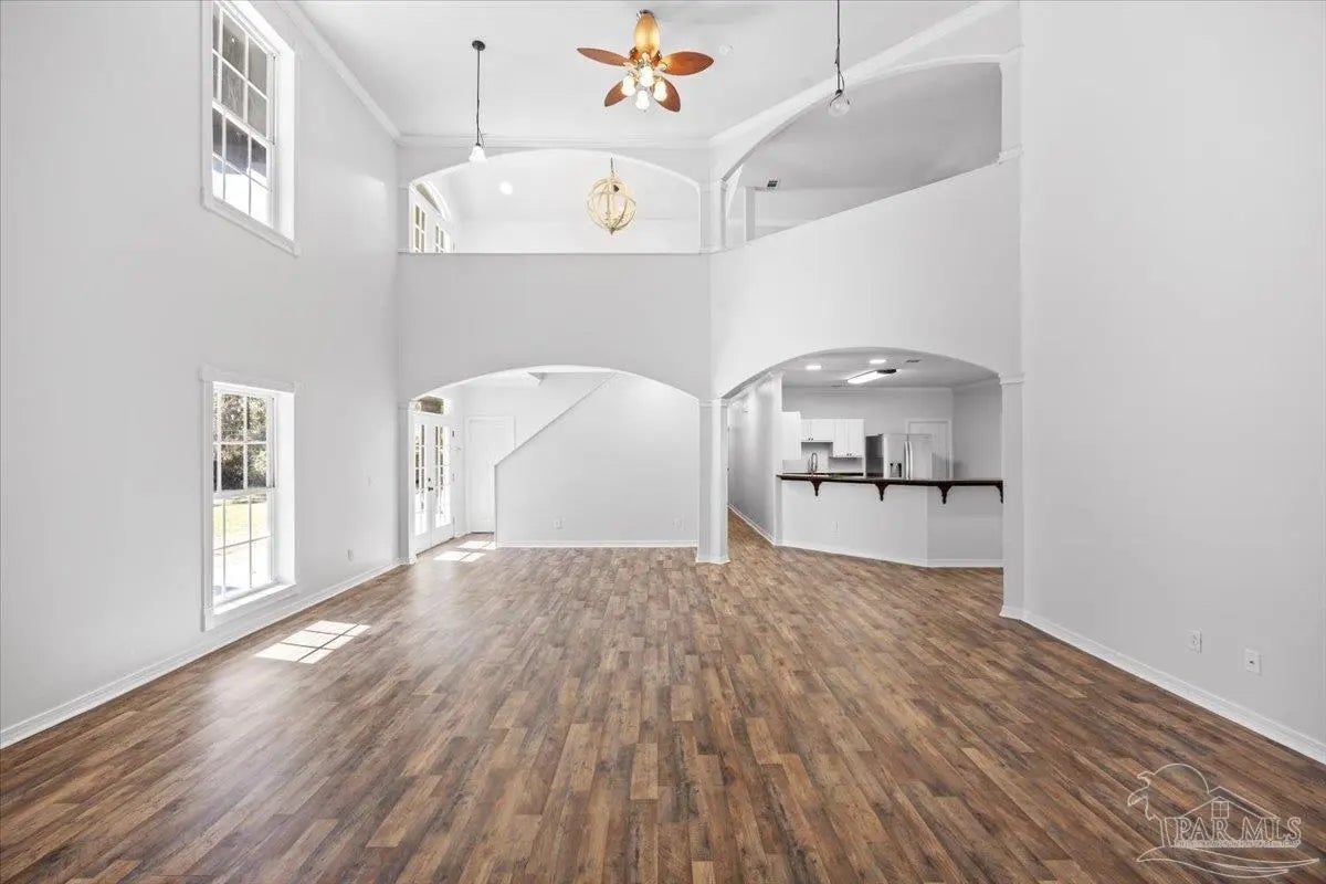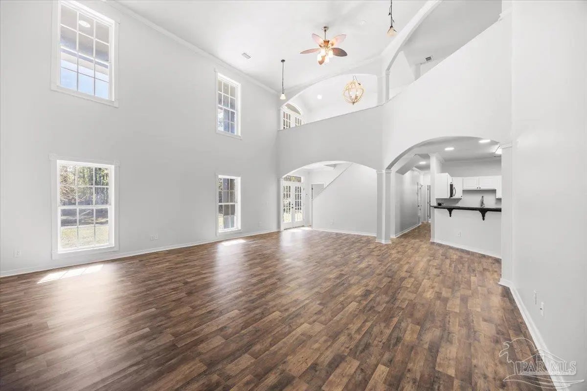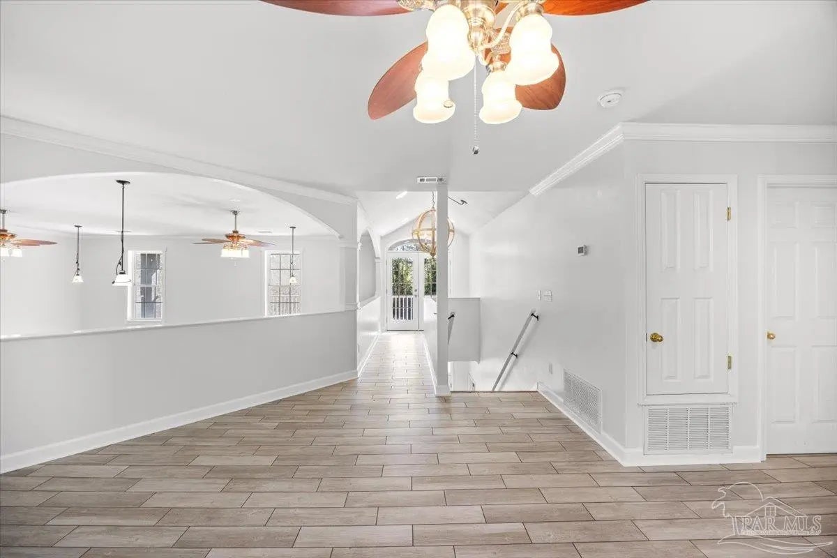 - Baseboards, Ceiling Fan(s), Crown Molding, High Ceilings