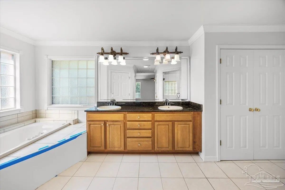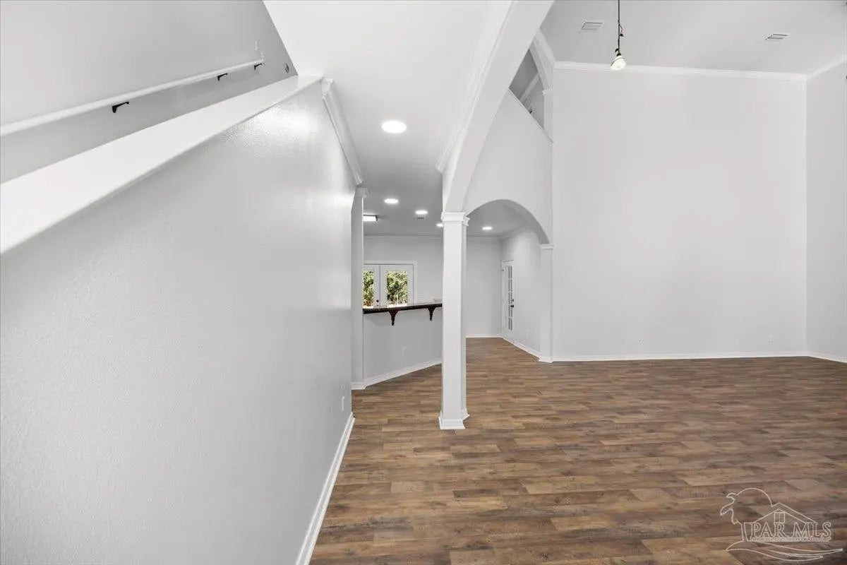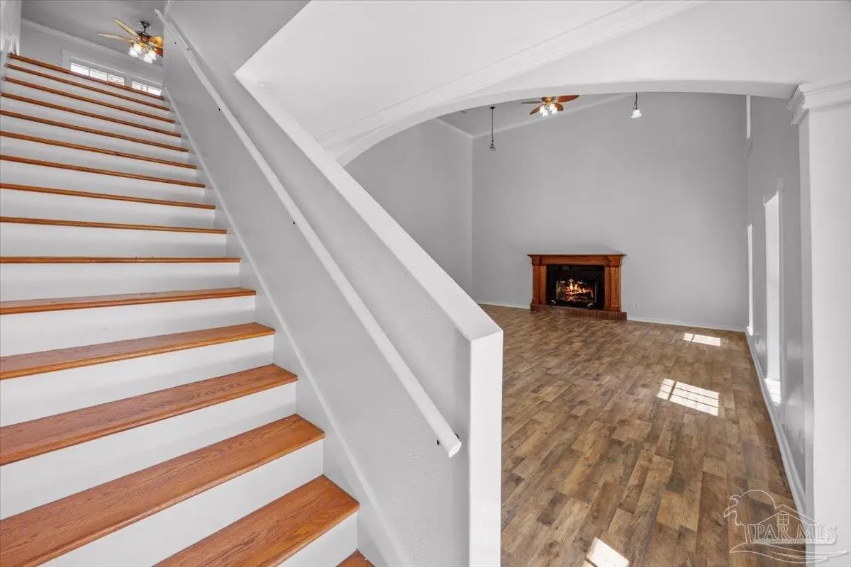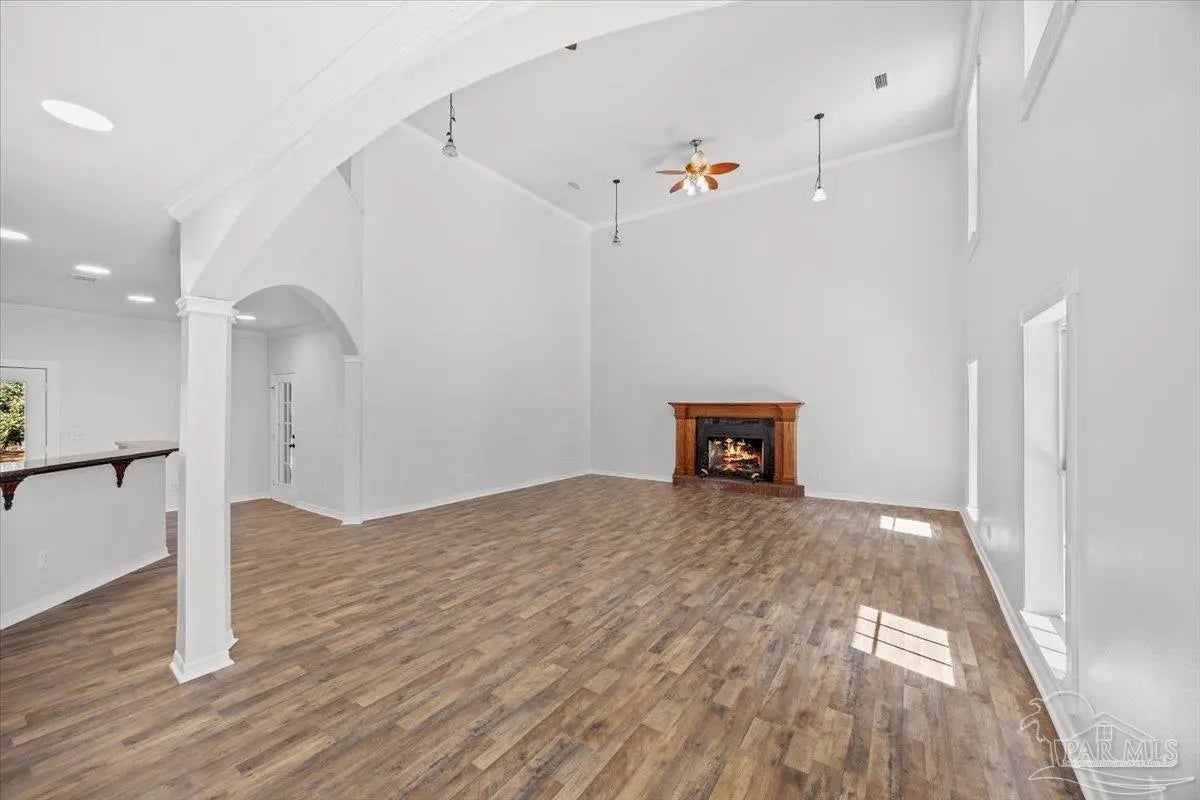 - Baseboards, Ceiling Fan(s), Crown Molding, High Ceilings