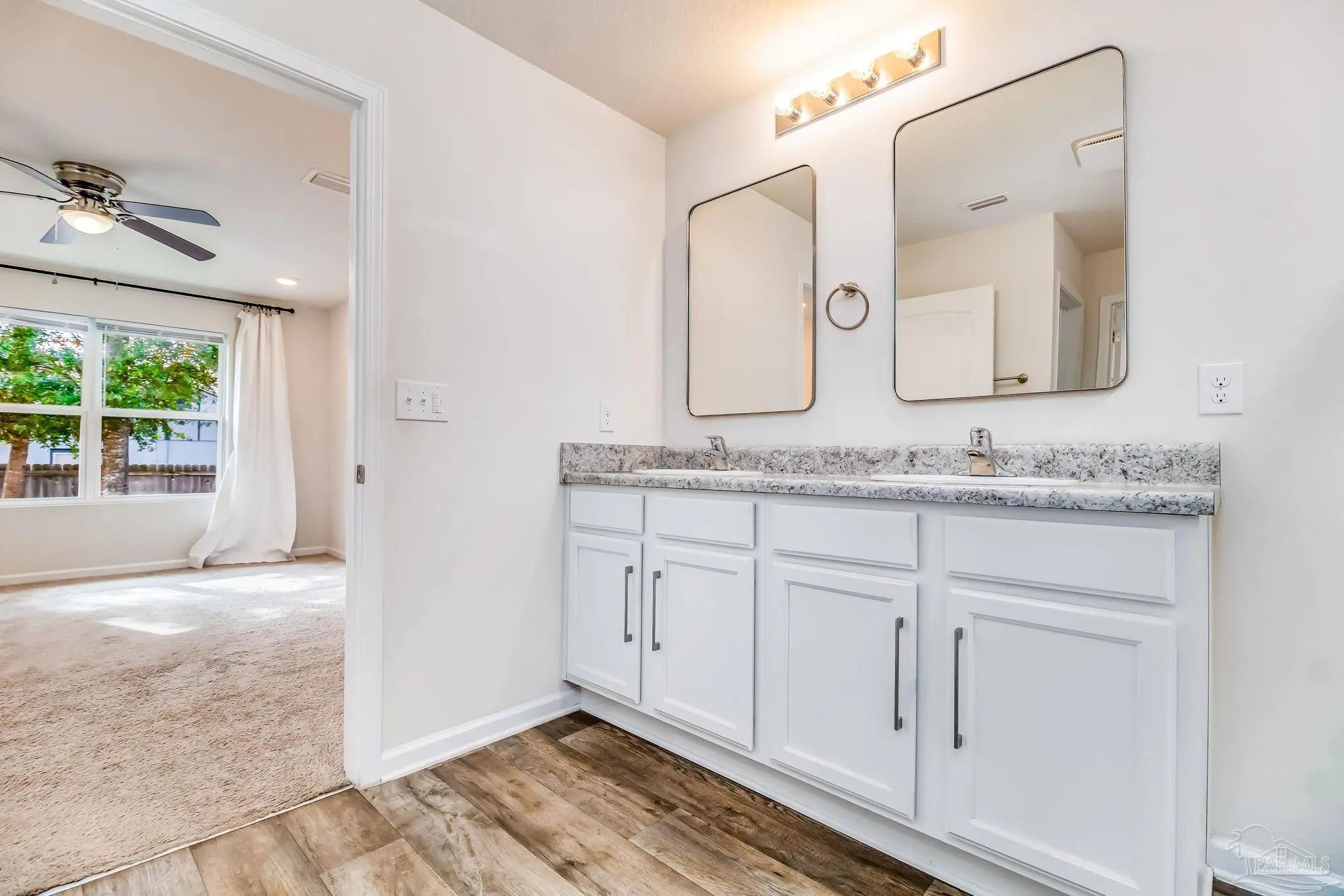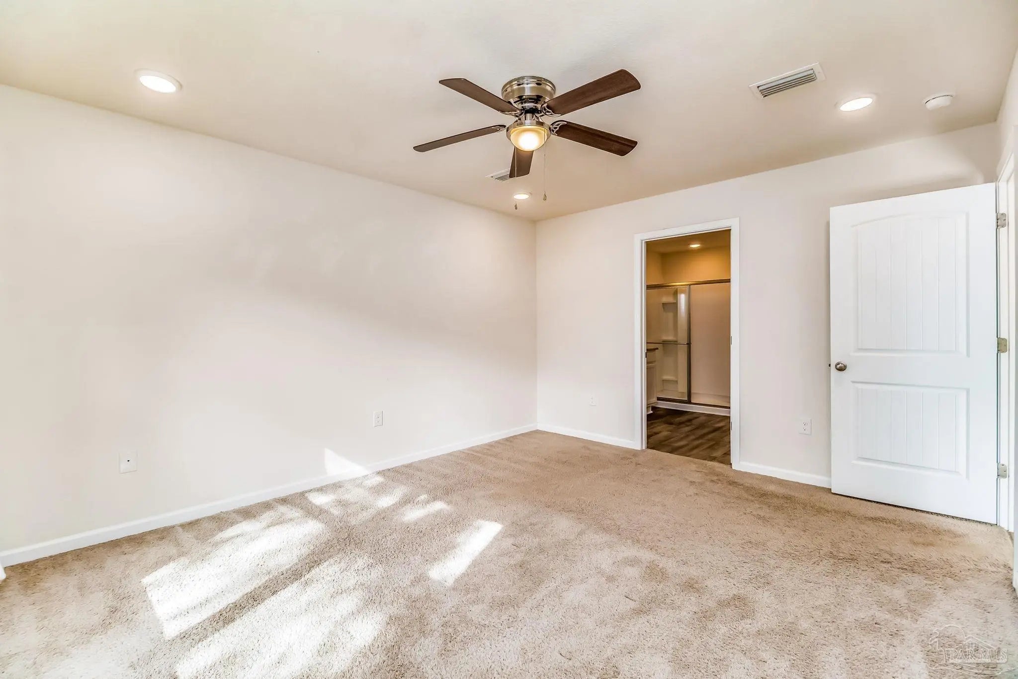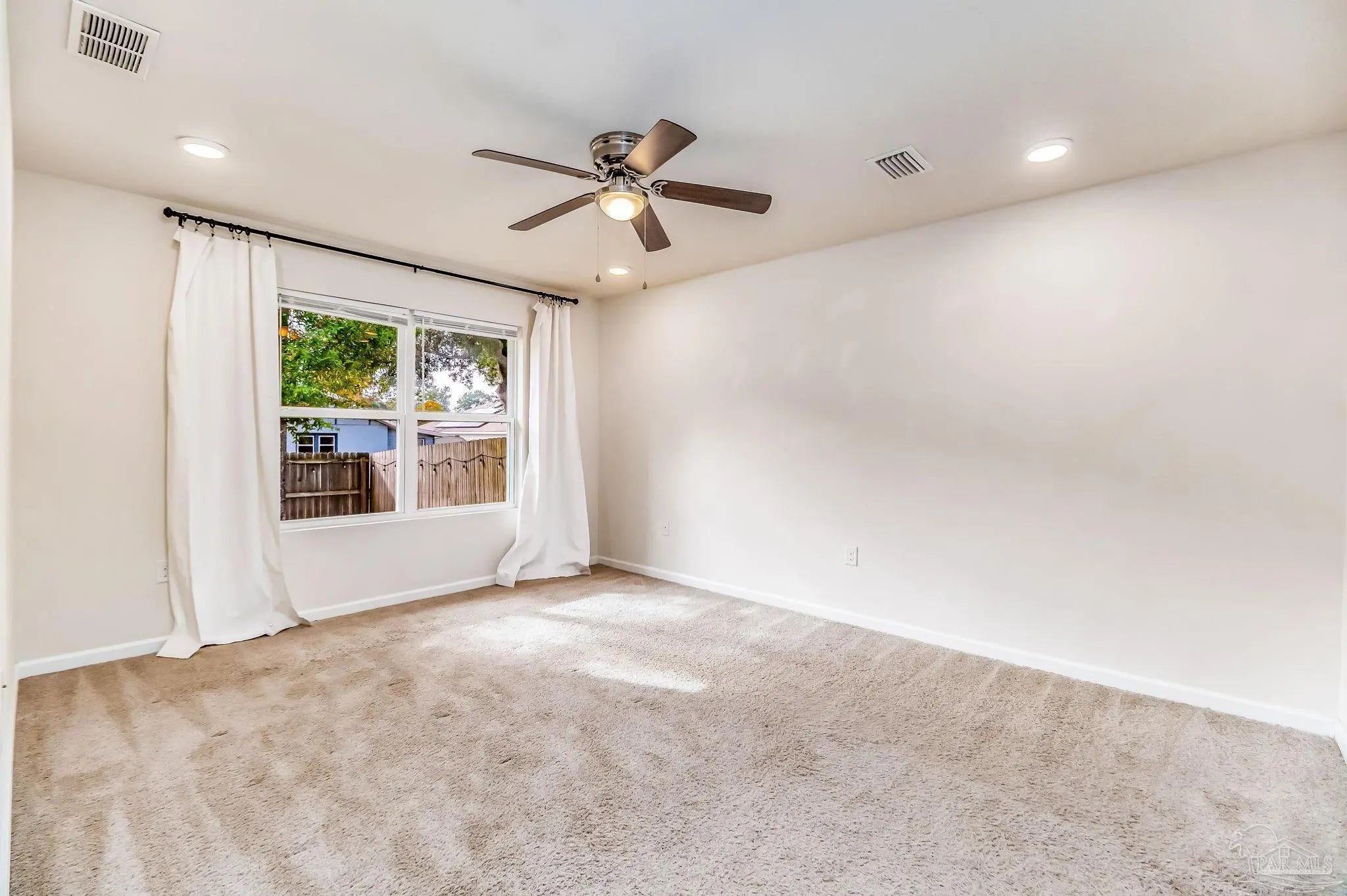Welcome to this IMMACULATE 4-bedroom, 2-bath floorplan in desirable Ashland Heights! From the moment you step inside, you’ll notice the beautiful wood-look vinyl flooring throughout the main living areas, complemented by plush wall-to-wall carpet in the bedrooms for added comfort. Two generously sized bedrooms are thoughtfully positioned on one side of the home with a full bathroom conveniently located between them. On the opposite side, you’ll find a third bedroom and a dedicated laundry room, offering privacy and functionality for today’s lifestyle. The heart of the home features a bright, open-concept layout where the kitchen seamlessly flows into the dining and living areas—perfect for entertaining or everyday living. The kitchen is sure to impress with white shaker cabinets, stainless steel appliances, abundant cabinet space, a pantry, and a large island ideal for meal prep and gatherings. Tucked just off the living area, the spacious primary suite easily accommodates a king-size bed and additional furniture. The ensuite bath boasts double vanities, a walk-in shower, and a HUGE walk-in closet. Additional highlights include upgraded lighting in the garage, providing enhanced visibility and functionality. This home has been meticulously maintained and is truly move-in ready.