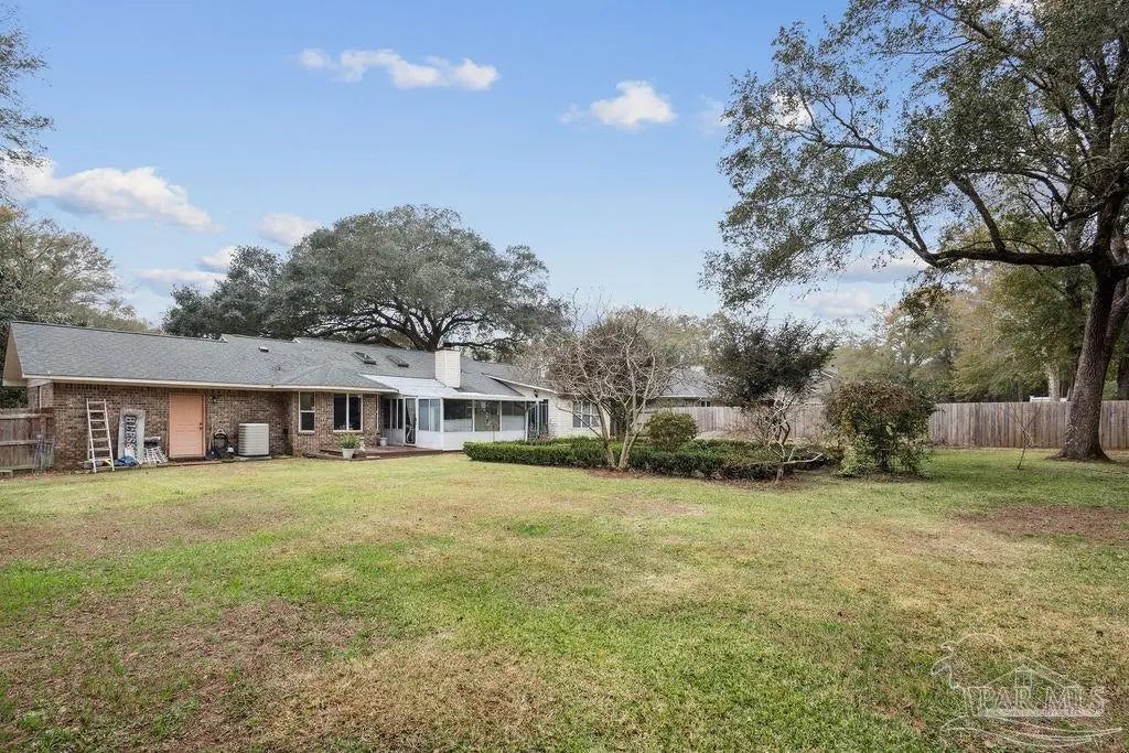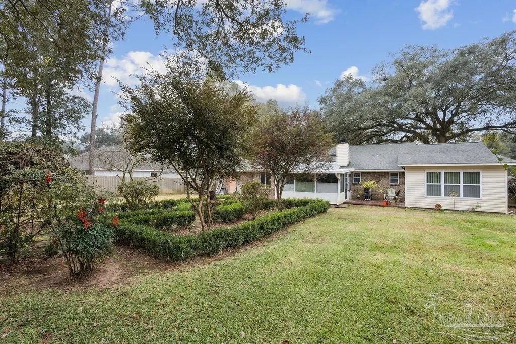 Welcome home to this charming and inviting 3-bedroom, 2-bath residence nestled in the highly desirable Woodbine Springs Plantation community of Pace, FL. Filled with warmth and character, this well-maintained home features beautiful wood accents throughout, including a detailed wood-burning fireplace and skylights in the great room that bring in natural light while enhancing the cozy atmosphere. Saltillo tile flooring flows through the kitchen, formal dining area, and great room, creating a welcoming and timeless main living space. The kitchen, updated in 2018, offers a delightful breakfast nook with built-in window seating and storage—perfect for quiet mornings or casual meals. A dedicated office or flex space and a bright sunroom provide comfortable flexibility for everyday living. Built in 1989, the home has been thoughtfully updated with energy-efficient windows replaced in 2025, hurricane shutters, a roof replaced in 2006, and hurricane clips for added peace of mind. The front entry includes a coat closet, and a hallway linen closet adds convenient storage. Outside, well-maintained landscaping enhances both the front and backyard, offering inviting outdoor areas to relax or entertain. A 2-car garage provides everyday convenience. Residents of Woodbine Springs Plantation enjoy homeowner-only amenities, including private fishing lakes, a playground, and community common areas. Ideally located near schools, shopping, and dining, this home blends cozy charm, natural character, and a sought-after neighborhood setting.