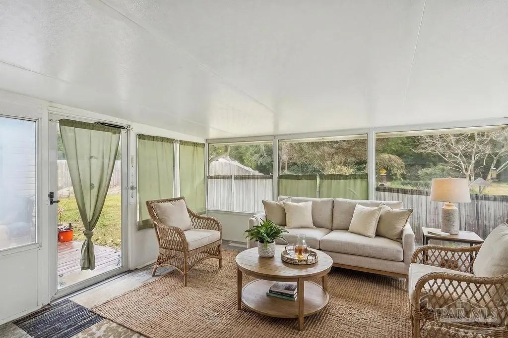 *NEW ROOF & NEW HVAC* Welcome to this well-maintained 3-bedroom, 2-bath home located in the desirable Woodbine Springs Plantation community of Pace. Built in 1989, this inviting residence offers a comfortable layout with timeless features and thoughtful updates throughout. The great room features a wood-burning fireplace with detailed wood accents and skylights that provide abundant natural light. Saltillo tile flooring flows through the main living areas, including the kitchen and formal dining space, creating a warm and cohesive feel. The kitchen was updated in 2018 and includes a breakfast nook with built-in window seating and storage. A dedicated office or flex space, along with a bright sunroom, offers added versatility for a variety of lifestyle needs. Recent improvements include energy-efficient windows (2025), a new HVAC system (May 2026), and a roof replacement (April 2026), providing enhanced comfort, efficiency, and peace of mind. Additional features include hurricane shutters and hurricane clips. Interior storage is well planned with a coat closet at the entry and a hallway linen closet. Exterior highlights include established landscaping in both the front and backyard, as well as a 2-car garage for convenience. Residents of Woodbine Springs Plantation enjoy access to private fishing lakes, a playground, and community common areas. Conveniently located near local schools, shopping, and dining, this property presents an excellent opportunity to own a well-maintained home in a sought-after Pace community.