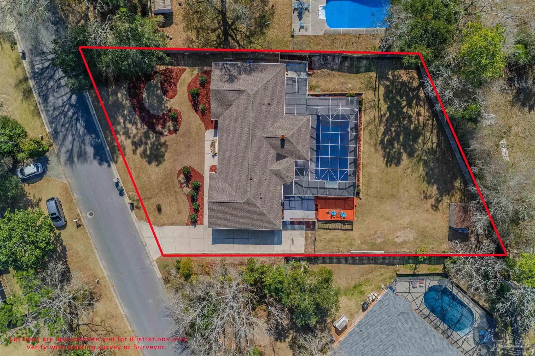 Magnificent 4-bedroom, 3 full-bath home with a gorgeous screened-in pool! It’s professionally landscaped, manicured front yard offers exquisite curb appeal, while the property is tucked back in a wonderful neighborhood that's quiet and peaceful, yet convenient to amenities. As you enter the home, you’ll find a generously sized office to the left of the foyer and a dining room to the right. Walking straight ahead, you'll find a beautiful and enormous central living area with built-in bookshelves and a beautiful electric high-tech fireplace. The kitchen features a nice breakfast nook tucked away in a bay window that overlooks the backyard and pool area. New appliances and plenty of counter space will please the chef of the house. The 4 bedrooms are split, with 1 bedroom complete with built in cabinetry and two closets, an adjoining hall bath, and laundry area. This side would be perfect for an in-law/guest bedroom suite. The other three bedrooms are on the opposite end of the floor plan. The master bedroom features a master bath, and access to the screened in pool and a private sitting area – already set-up/hard-wired for a hot tub! All bedrooms have plenty of storage. Not included in square footage is a large three-season Florida room; perfect for relaxing on lazy summer afternoons. The reinforced screened-in pool enclosure has plenty of space for lounge chairs, plants, and with a new liner and filter, you'll have many years of carefree outdoor fun. Convenient location to retail shops and businesses on the up-and-coming 9-Mile corridor, 15 minutes to I-10 and 30 minutes to our beaches, this property is one you'll want to see for yourself! Updated with a new 26 kilowatt, whole-house generator, new 10x12 Tuff Shed, new Leaf-Guard gutters, and all new Pex plumbing with whole-house water filtration system, you’ll find this to be a long-term, low-maintenance dream home.