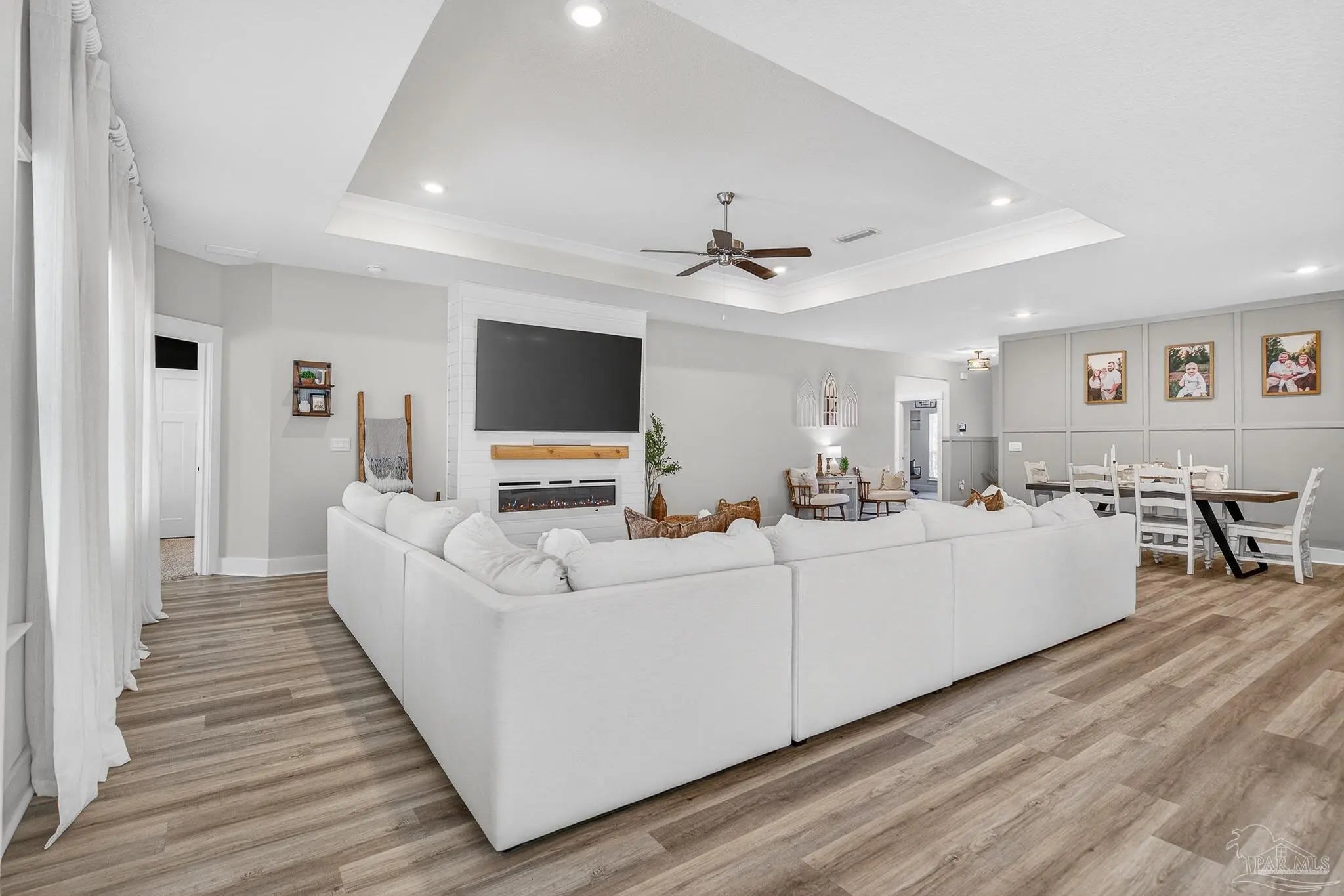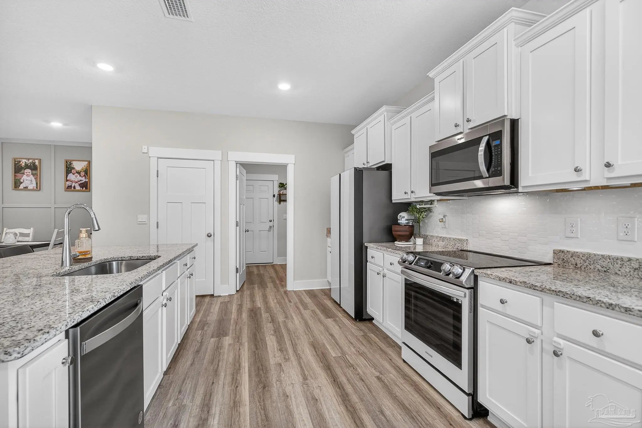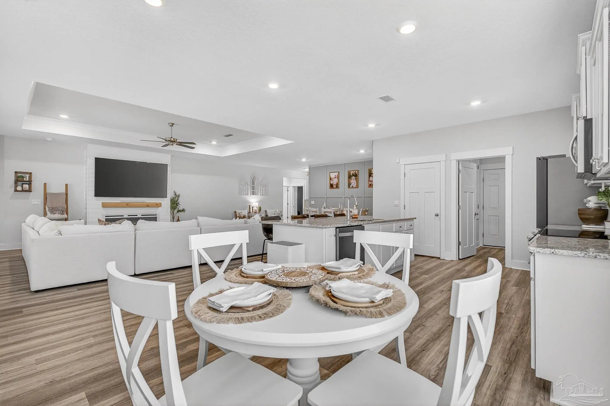 Welcome to Kaheeley Ridge in Beulah! This beautifully designed Destin Plan has been upgraded in all the right places This spacious 4-bedroom, 3-bath home with a THREE car garage offers an open, inviting layout ideal for both everyday living and entertaining. Soaring 9-foot ceilings with select areas vaulted to 10 feet create a bright and open feel throughout the main living area. The heart of the home features a stunning electric fireplace with a custom accent wall and mantle, complemented by custom board-and-batten accent walls throughout, adding architectural character and warmth. The kitchen is designed to impress with upgraded appliances, granite countertops, stainless steel finishes, a large island bar, and a corner pantry, flowing seamlessly into the breakfast nook and separate dining area. The private primary suite offers a relaxing retreat with a walk-in closet, double vanity, garden tub, and separate walk-in shower. Durable Engineered Vinyl Plank flooring runs through the main living areas, kitchen and bathrooms, while bedrooms feature plush carpet for added comfort. Upgraded light fixtures and ceiling fans enhance both style and functionality throughout the home. Enjoy outdoor living on the covered patio, and take advantage of the Smart Home Technology package included for modern convenience and peace of mind. This home combines thoughtful design, quality finishes, and everyday comfort—