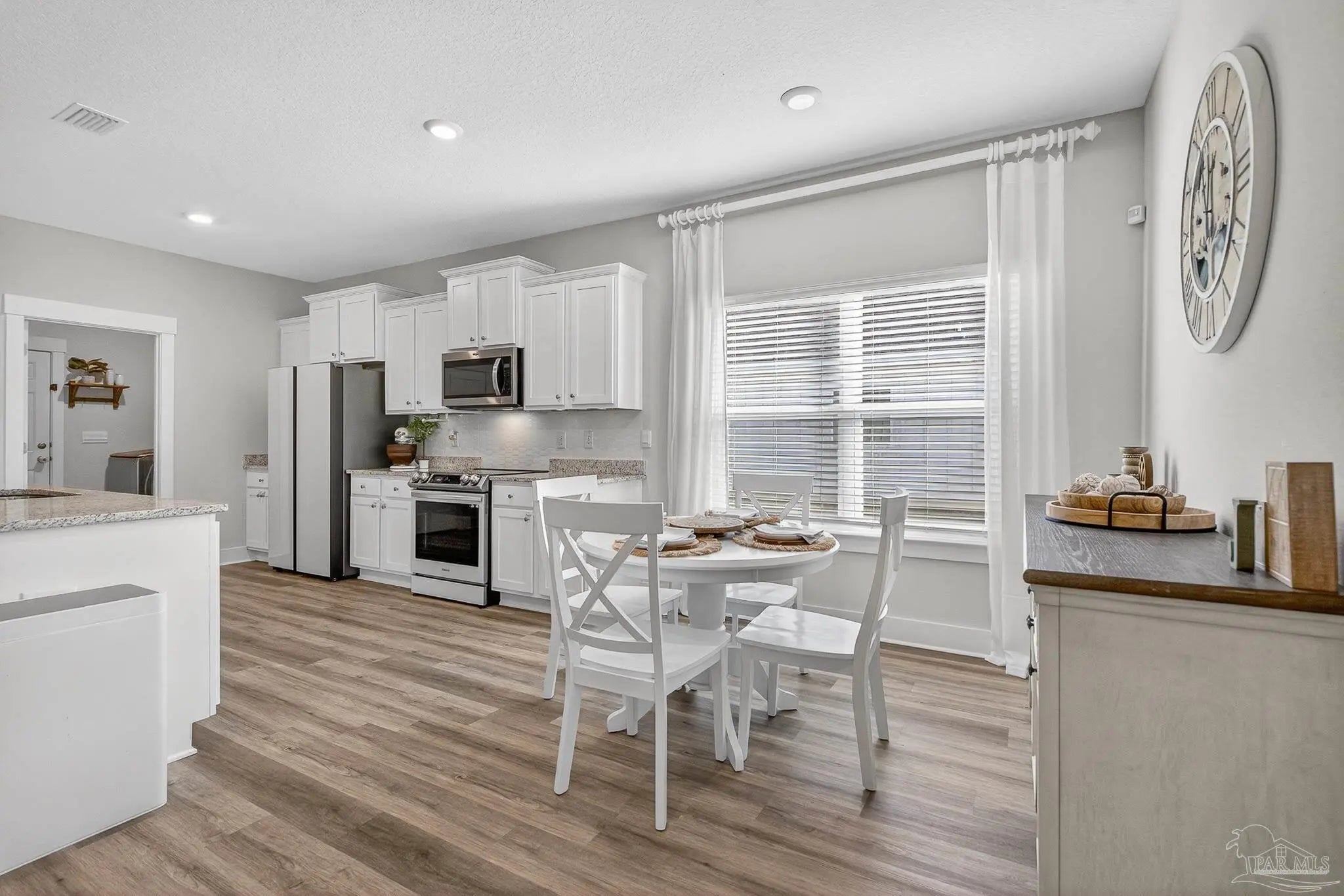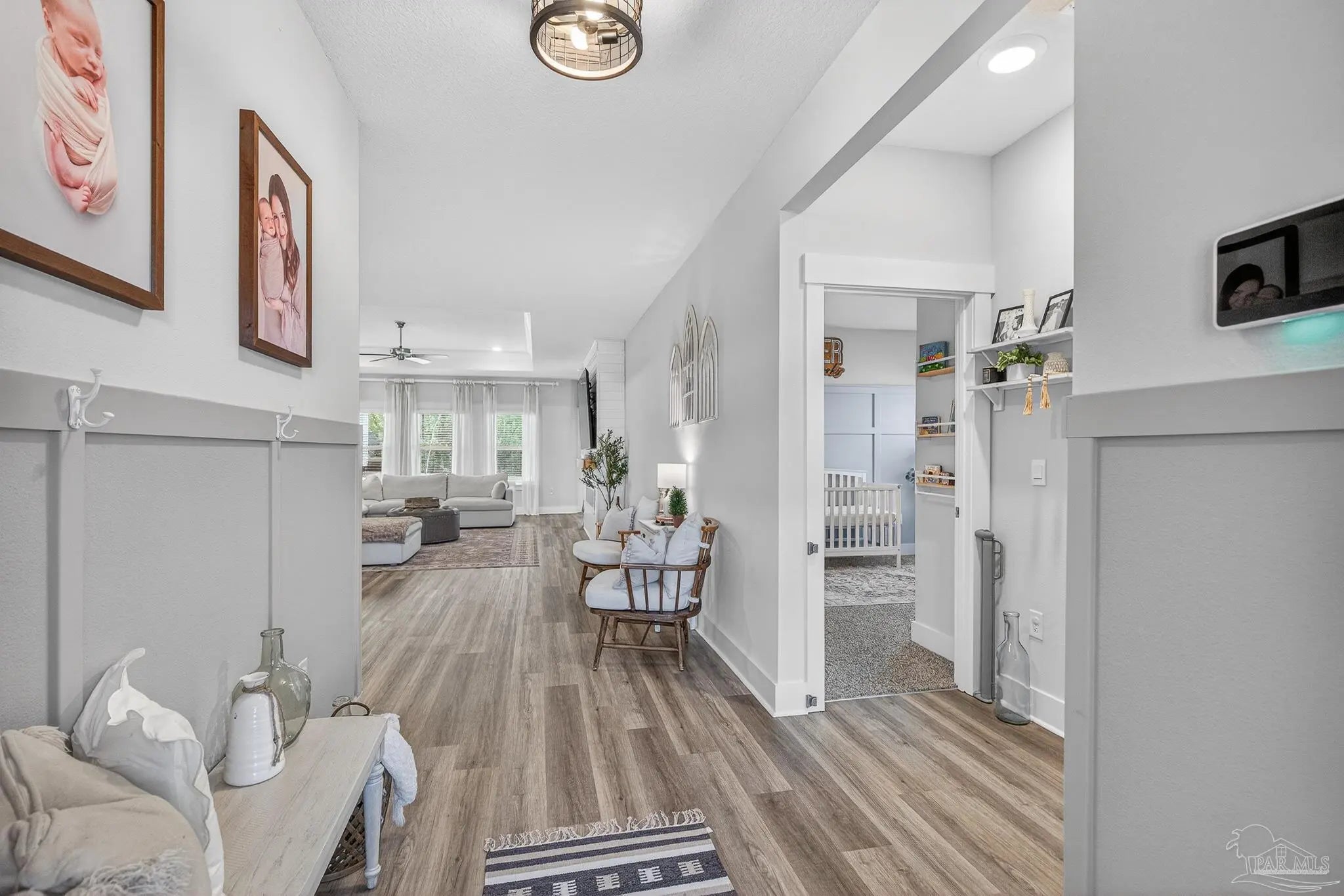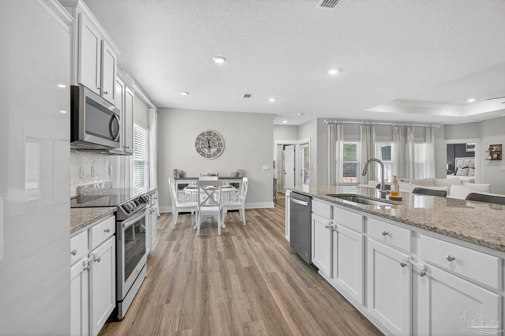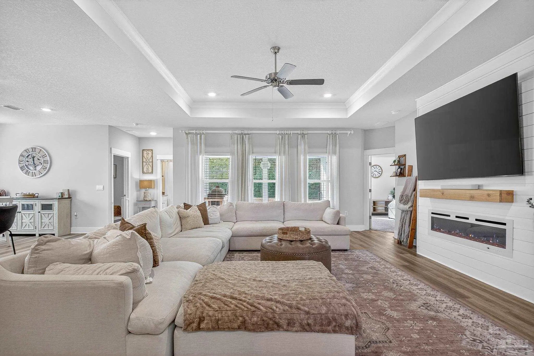 Welcome to Kaheeley Ridge in Beulah! This beautifully designed Destin Plan has been upgraded in all the right places This spacious 4-bedroom, 3-bath home with a THREE car garage offers an open, inviting layout ideal for both everyday living and entertaining. Soaring 9-foot ceilings with select areas vaulted to 10 feet create a bright and open feel throughout the main living area. The heart of the home features a stunning electric fireplace with a custom accent wall and mantle, complemented by custom board-and-batten accent walls throughout, adding architectural character and warmth. The kitchen is designed to impress with upgraded appliances, granite countertops, stainless steel finishes, a large island bar, and a corner pantry, flowing seamlessly into the breakfast nook and separate dining area. The private primary suite offers a relaxing retreat with a walk-in closet, double vanity, garden tub, and separate walk-in shower. Durable Engineered Vinyl Plank flooring runs through the main living areas, kitchen and bathrooms, while bedrooms feature plush carpet for added comfort. Upgraded light fixtures and ceiling fans enhance both style and functionality throughout the home. Enjoy outdoor living on the covered patio, and take advantage of the Smart Home Technology package included for modern convenience and peace of mind. This home combines thoughtful design, quality finishes, and everyday comfort—